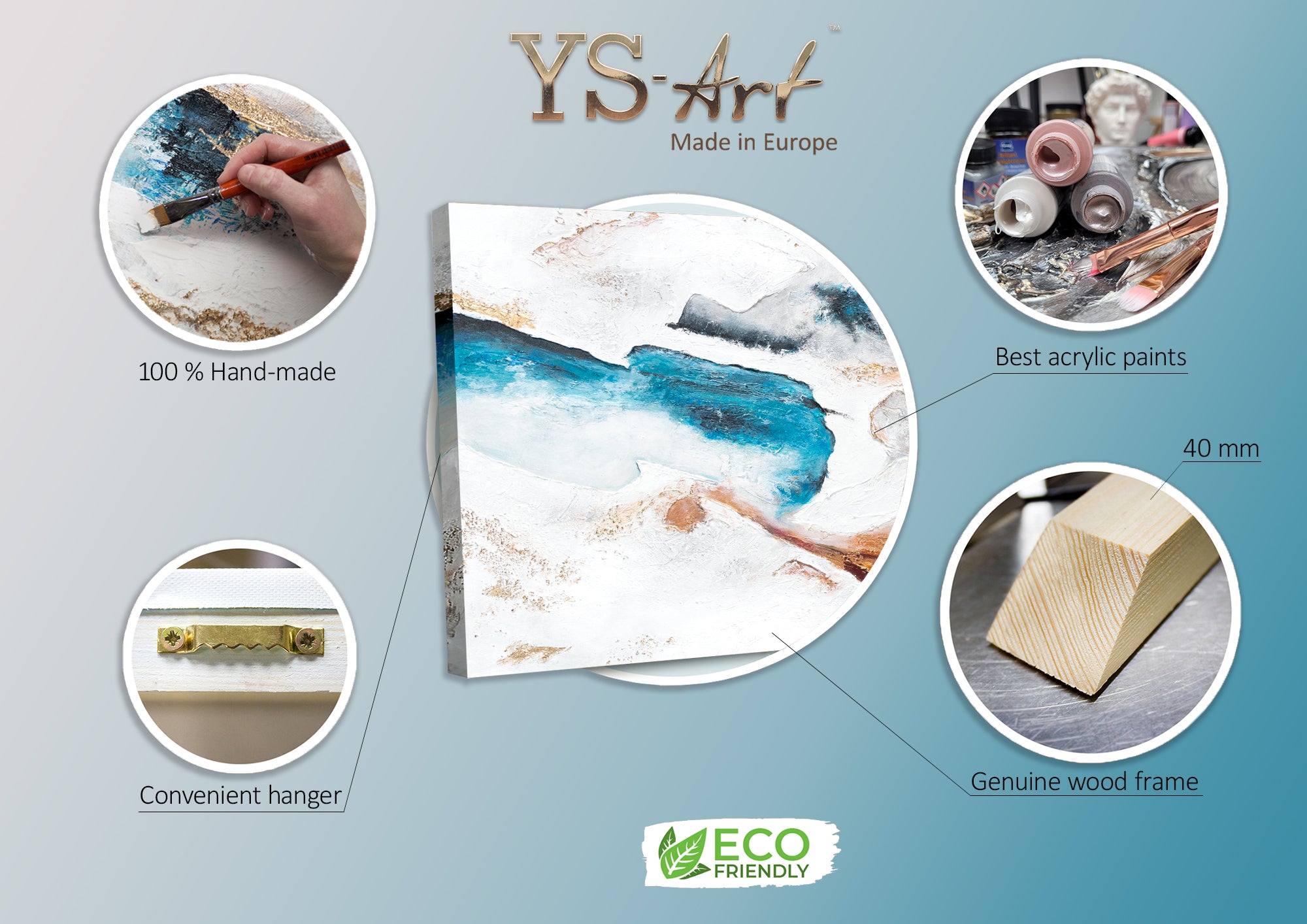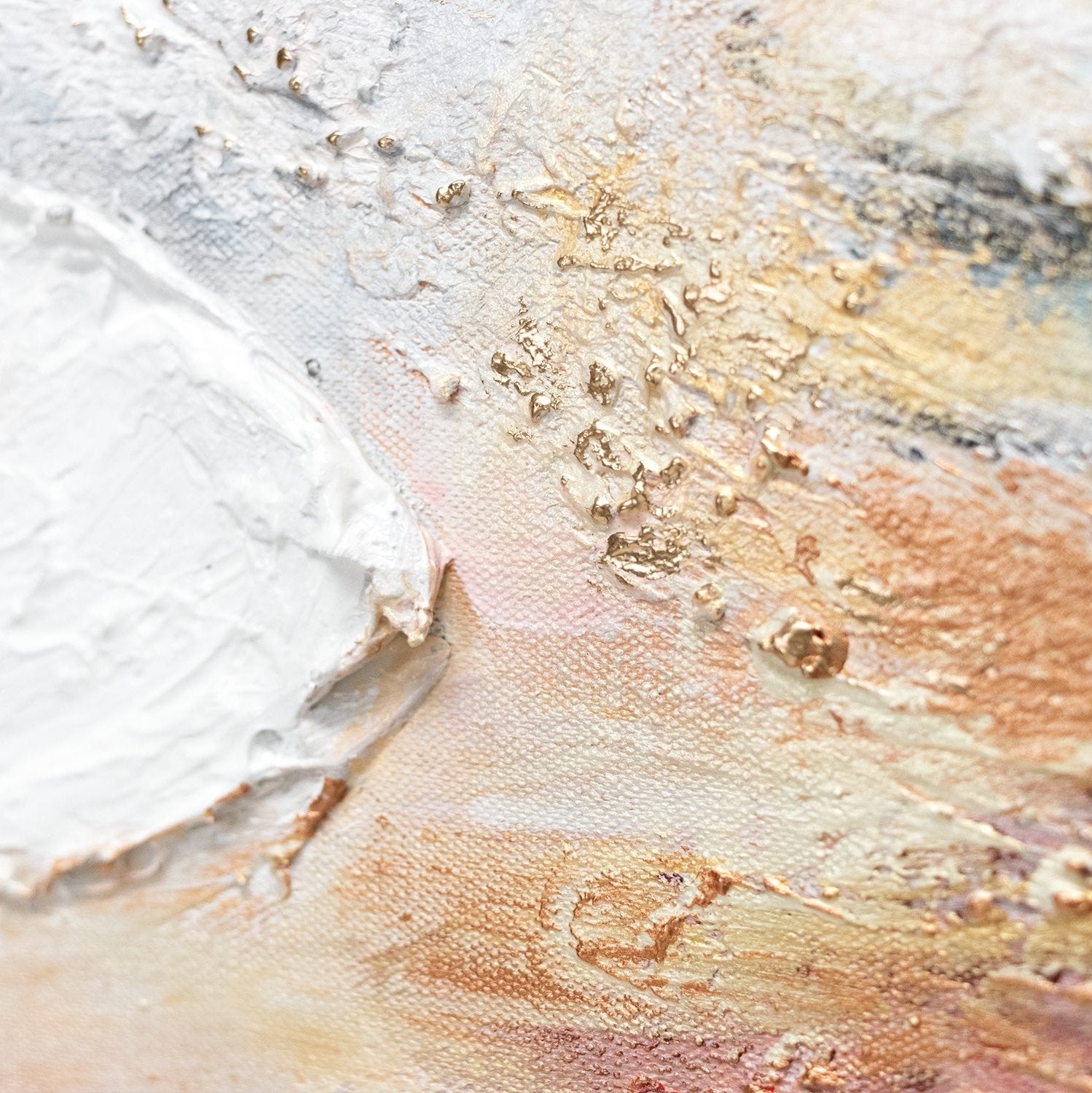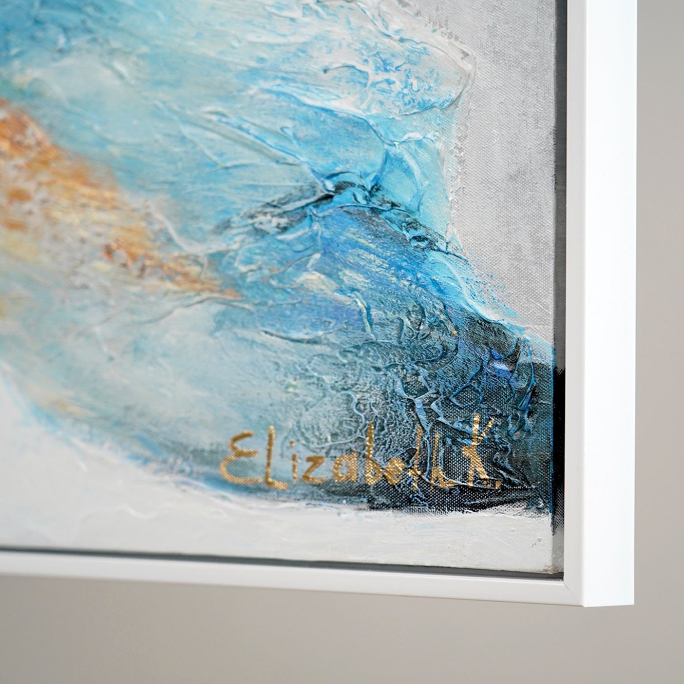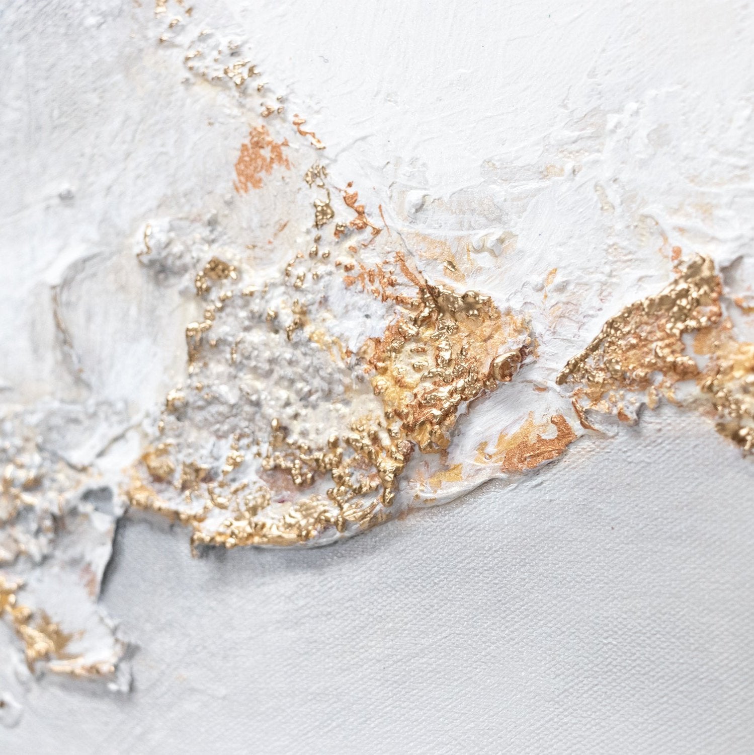 Sumérgete en el fascinante mundo del arte abstracto moderno con esta pintura acrílica sobre lienzo. La armoniosa combinación de tonos azules, blancos y dorados crea una atmósfera única y relajante que aporta elegancia y serenidad a cualquier espacio.