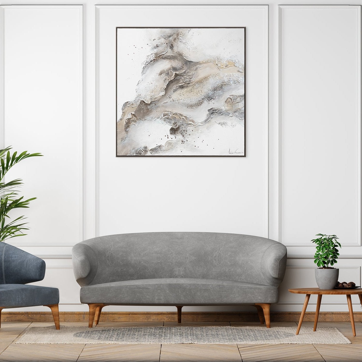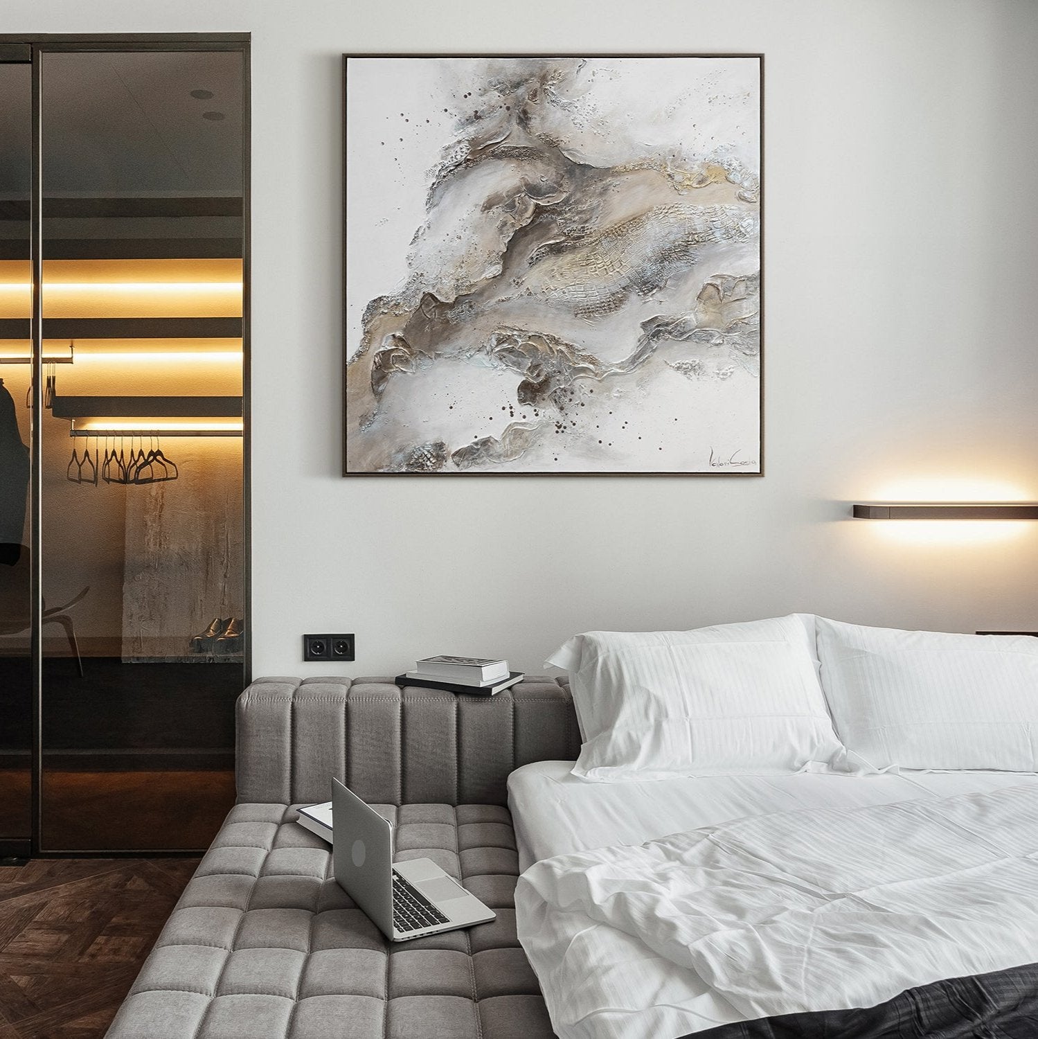 • Arte abstracto moderno sobre lienzo – Cuadro pintado a mano en tonos neutros