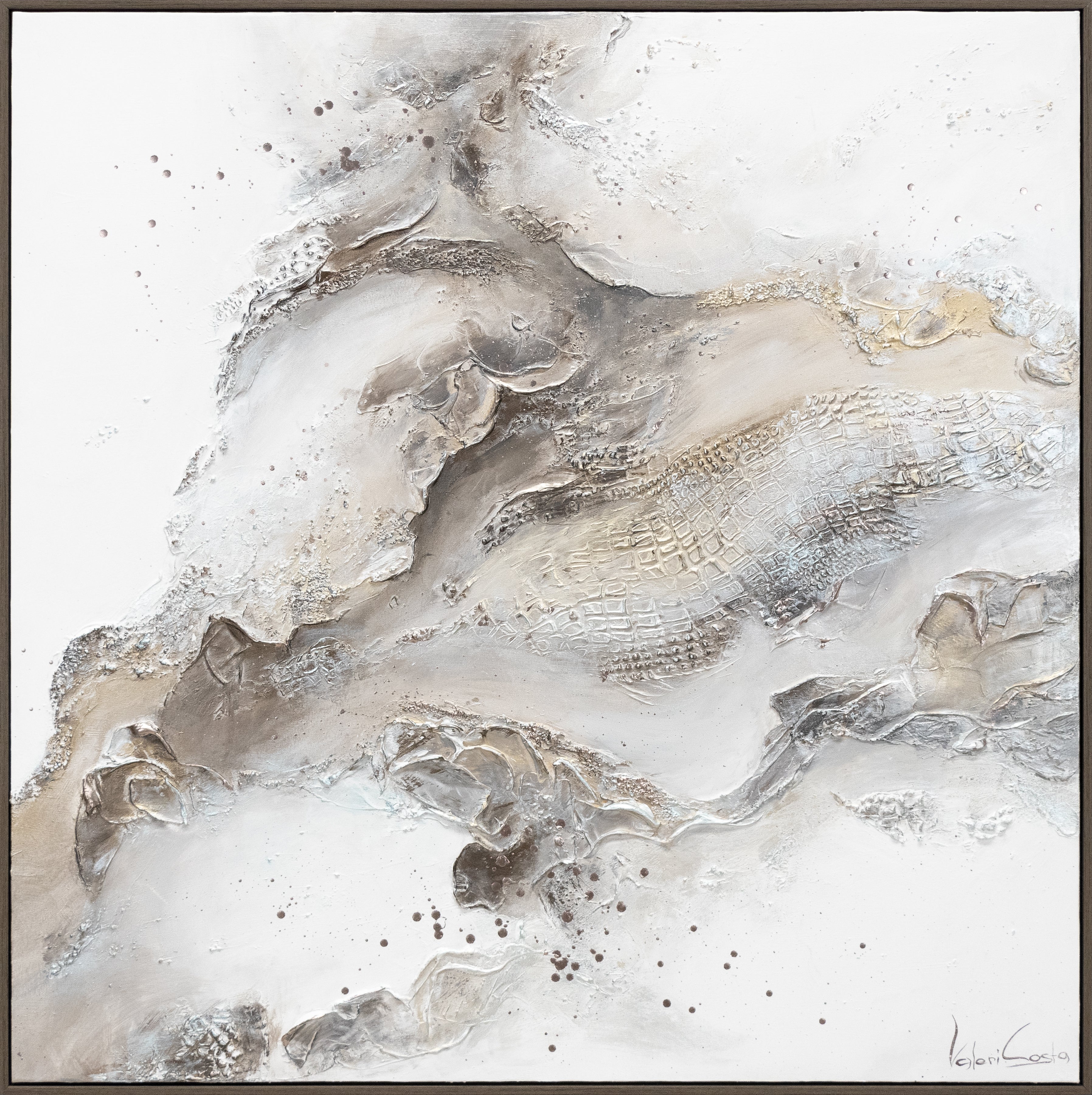 Descubre la belleza del arte moderno con esta impresionante obra abstracta pintada a mano sobre lienzo. La armoniosa combinación de tonos neutros, elementos con textura y movimientos dinámicos crea una experiencia visual única. Esta composición captura la esencia del arte abstracto y aporta a cualquier espacio una atmósfera elegante y contemporánea. Ideal para salones, oficinas o interiores que buscan un toque de sofisticación.