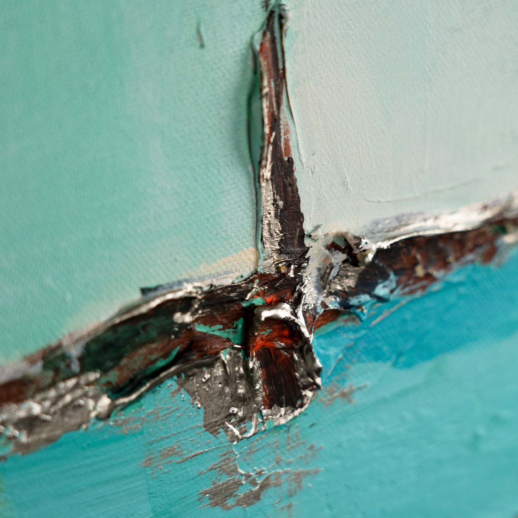 Cada obra pintada a mano es única, elaborada con especial dedicación al detalle y calidad, presentando el arte estructurado en una nueva dimensión. El diseño abstracto de esta obra esmeralda y el arte de pared dorado invita a la interpretación y, sin duda, será el centro de atención de cualquier colección, ya sea como parte de una exhibición de galería o como pieza única en tu decoración.