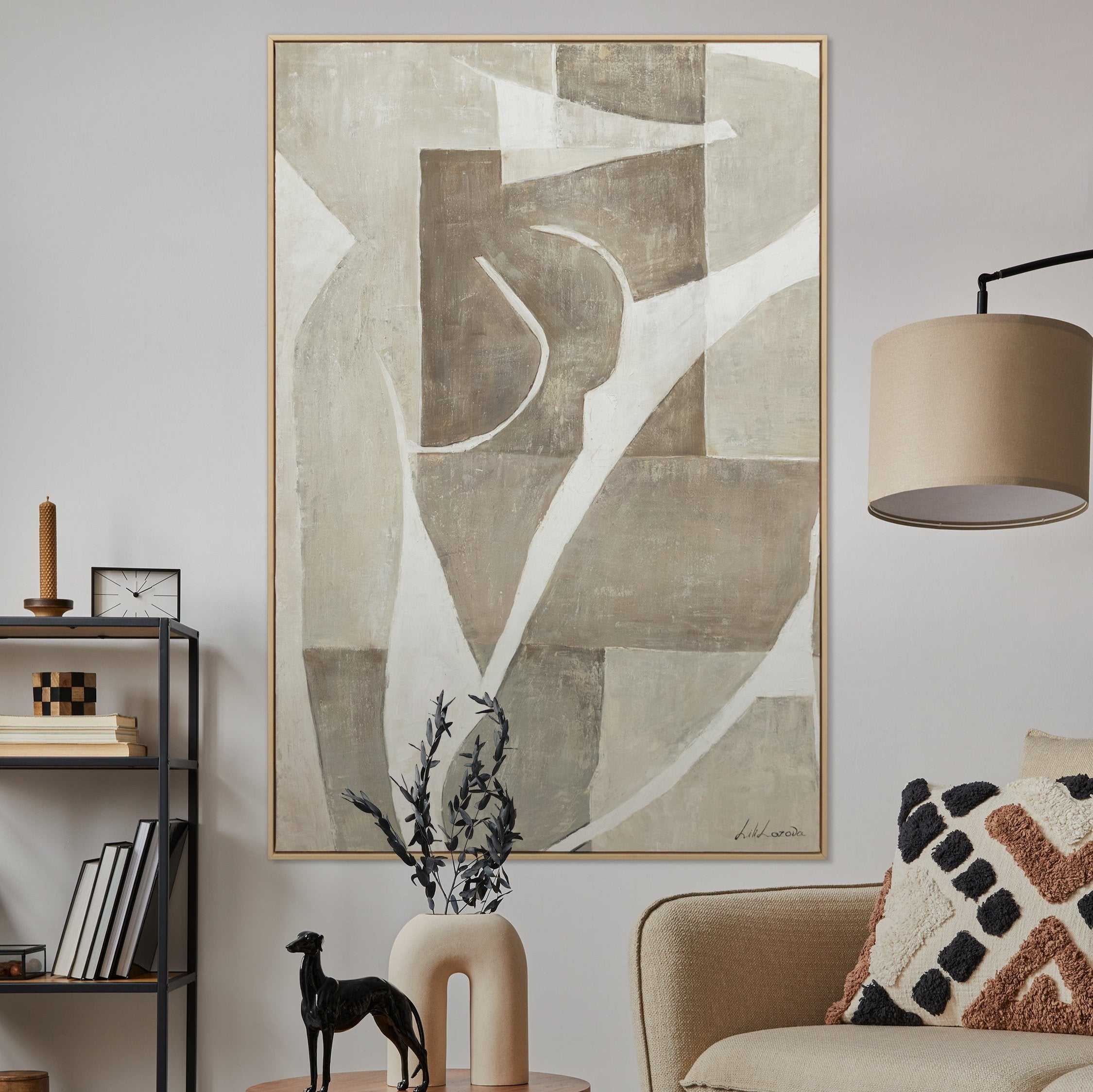 Esta pintura acrílica hecha a mano atrae todas las miradas con su elegante uso de los tonos beige y sus formas minimalistas, ideal para los amantes del arte moderno que aprecian la elegancia y la sencillez.
