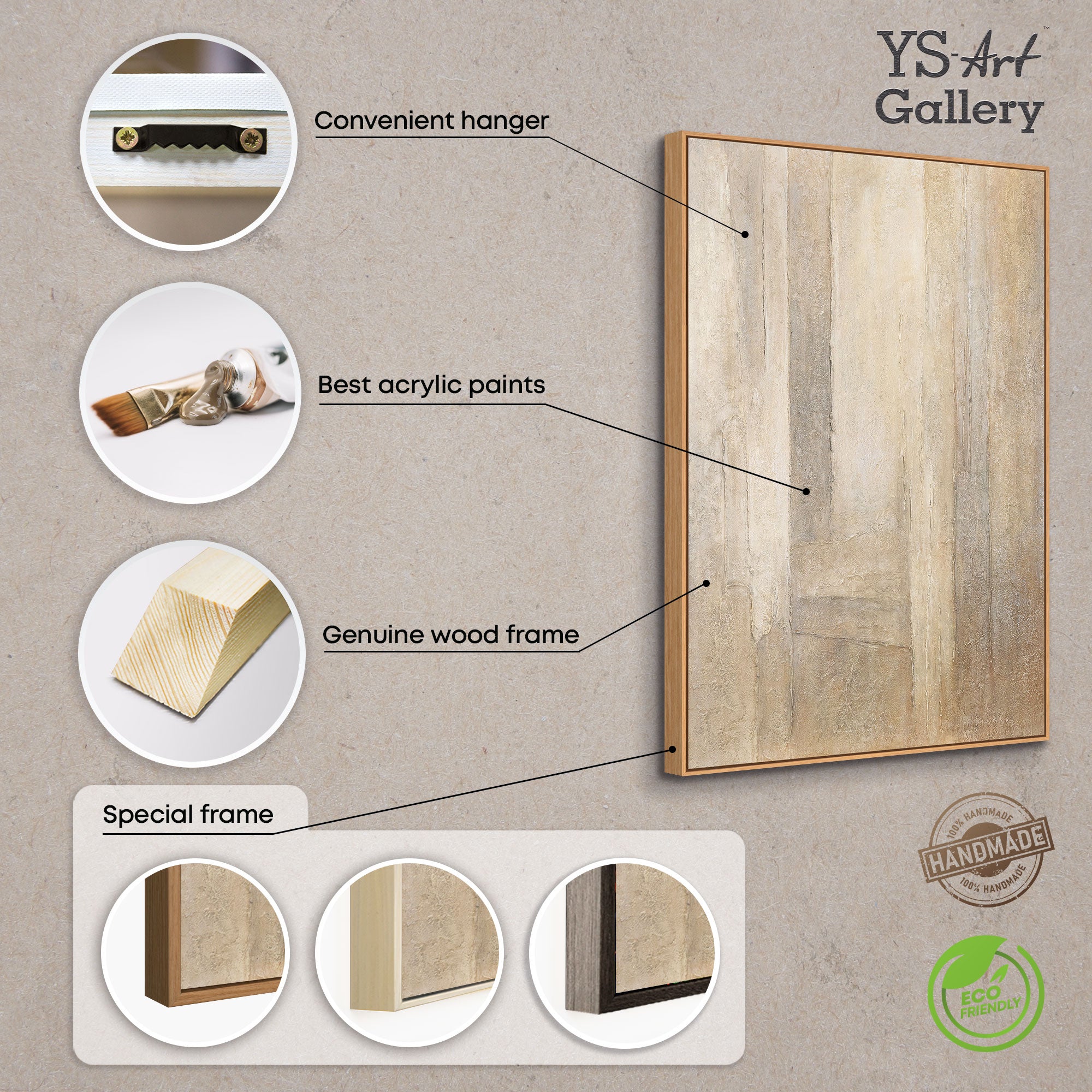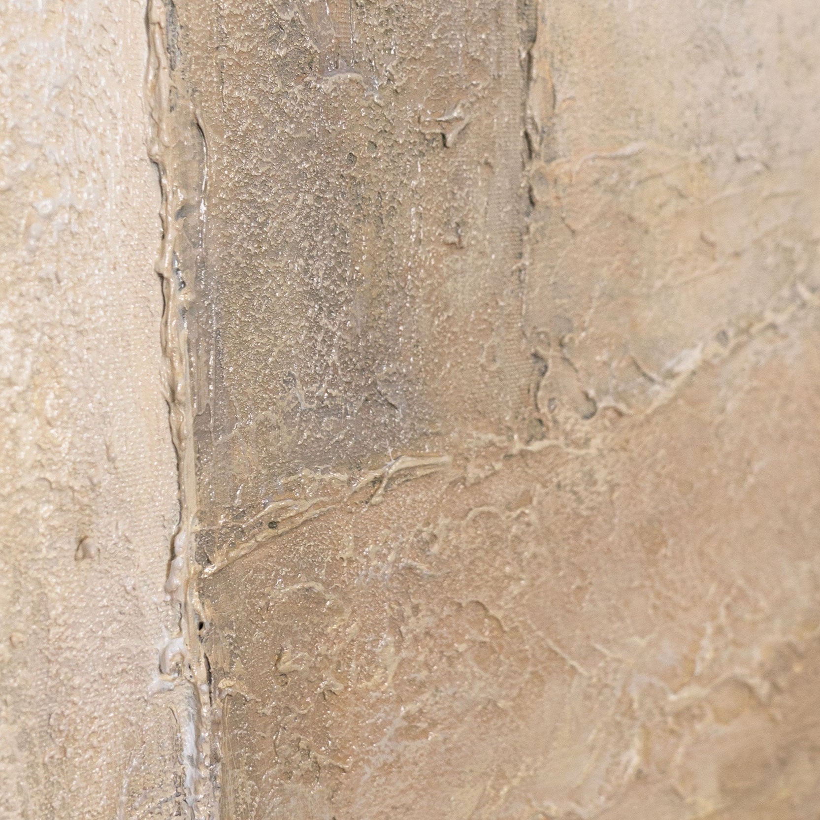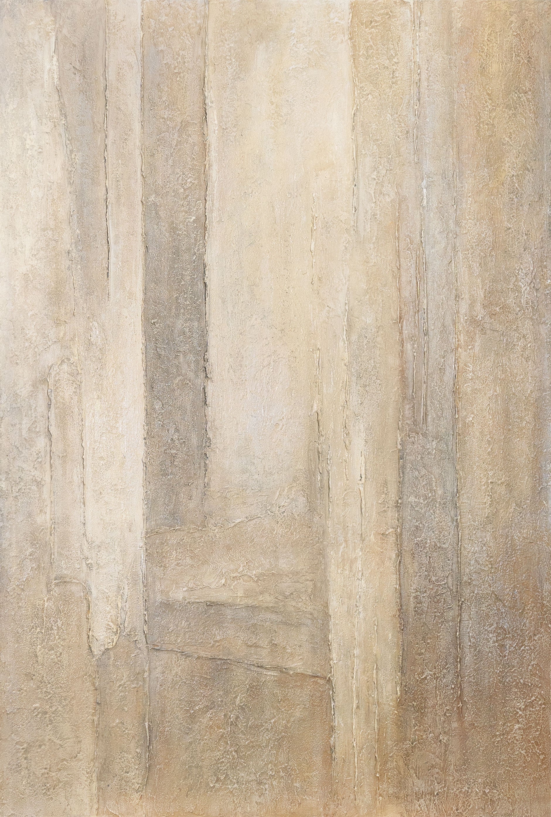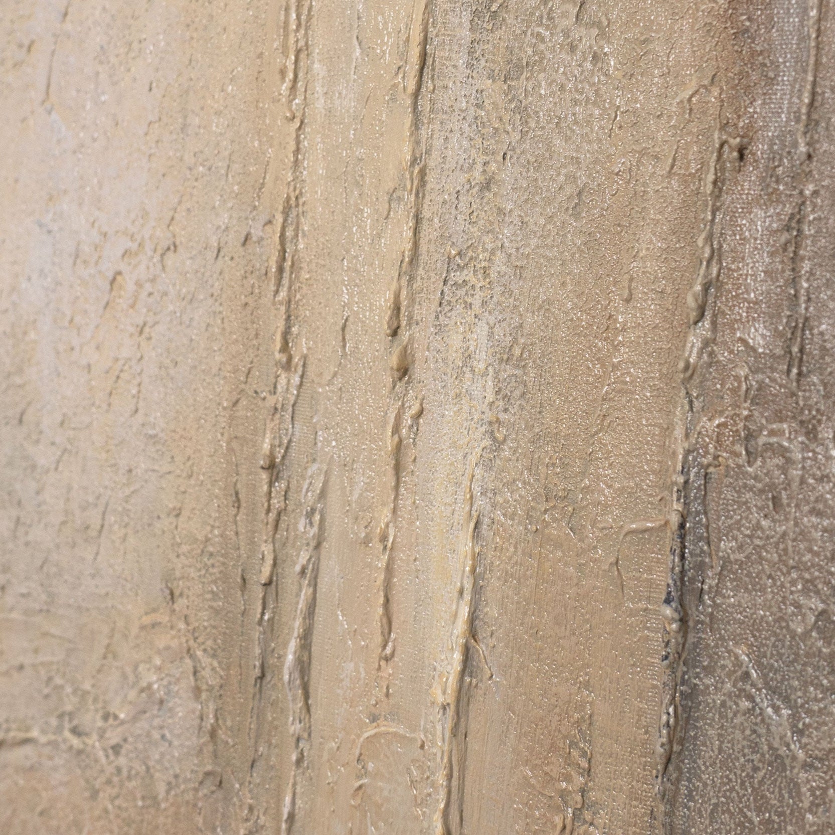 Esta pintura pintada a mano destaca por su tranquila composición vertical y su elección armoniosa de colores en tonos beige, arena y suaves grises. Con su estructura en relieve, transmite profundidad y naturalidad, invitando a una contemplación profunda.