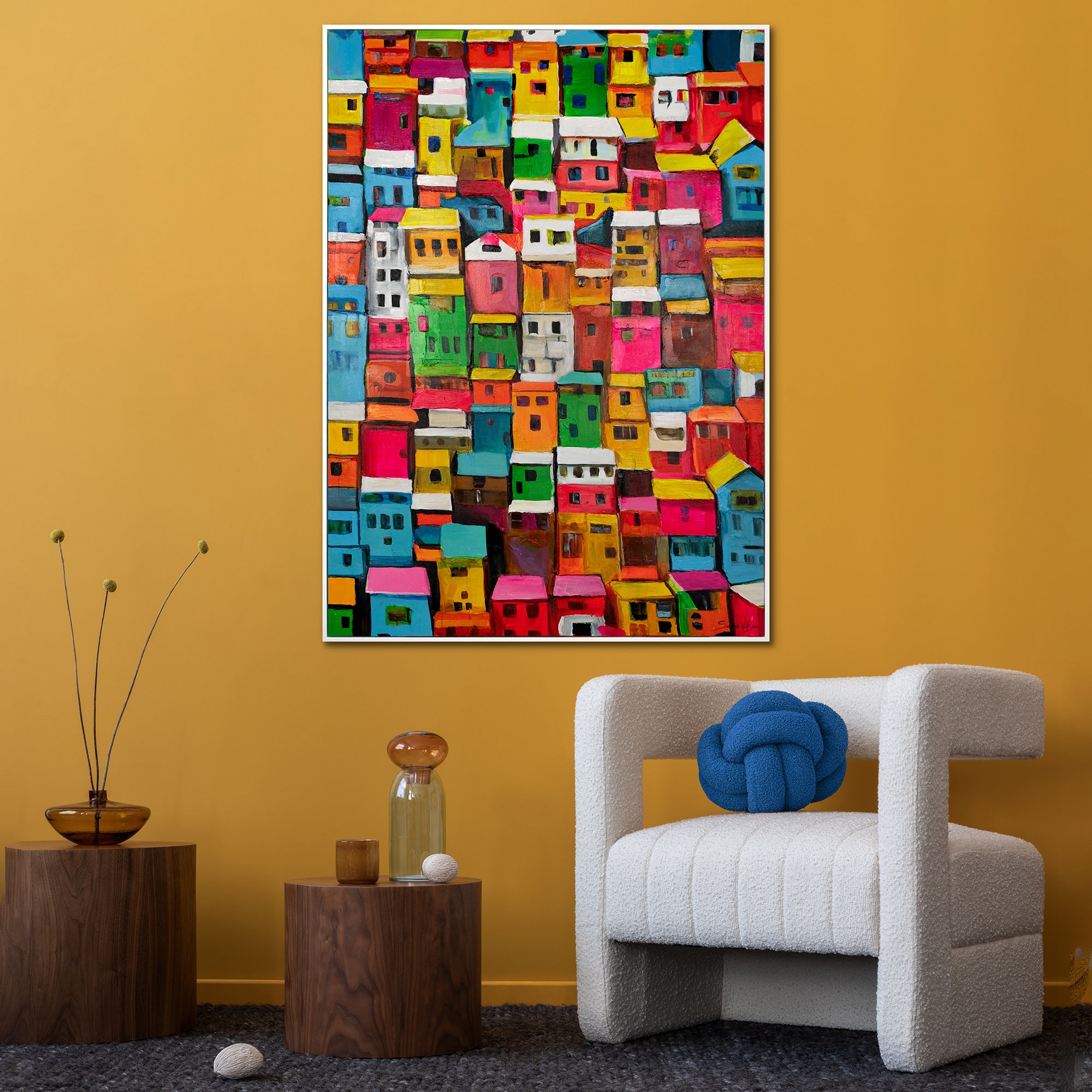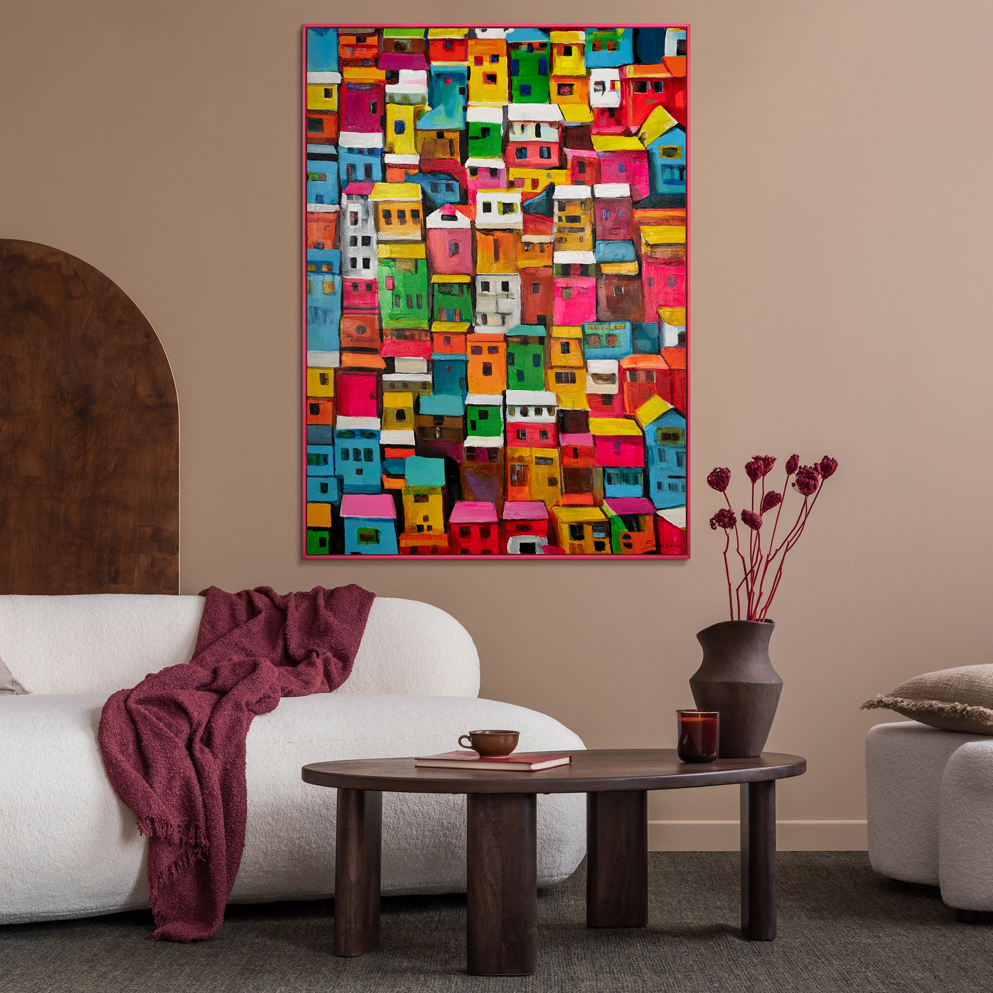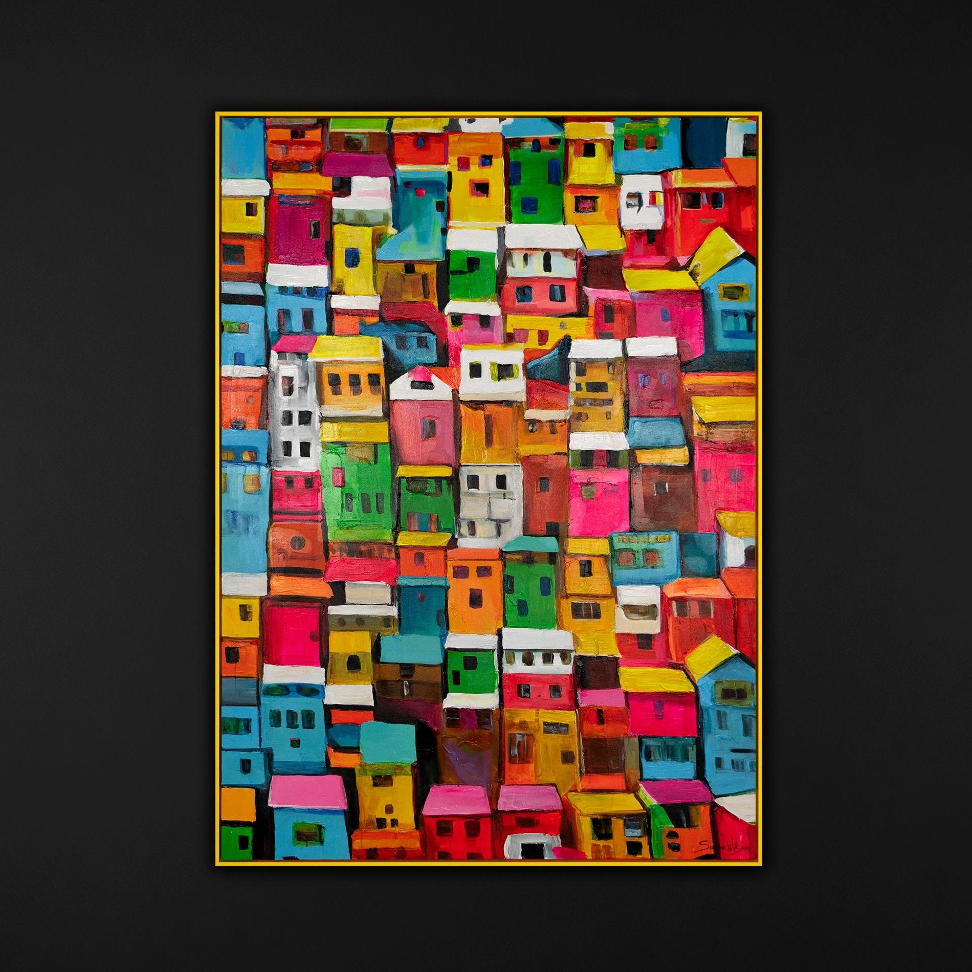 Jedes Haus erzählt seine eigene Geschichte und lädt den Betrachter zum Träumen ein. Dieses handgemalte Bild auf Leinwand ist perfekt für moderne Wohnräume und verleiht Ihrer Einrichtung einen auffälligen, kreativen Touch.
