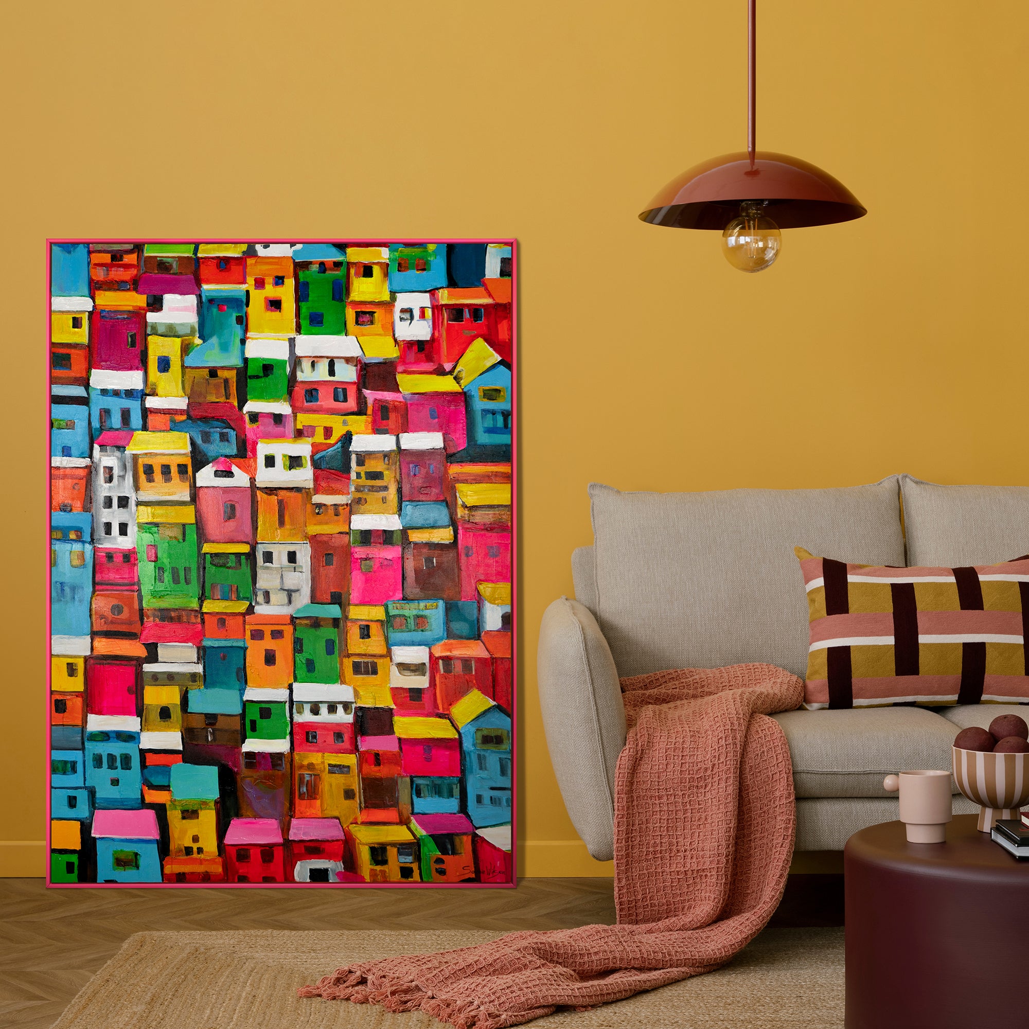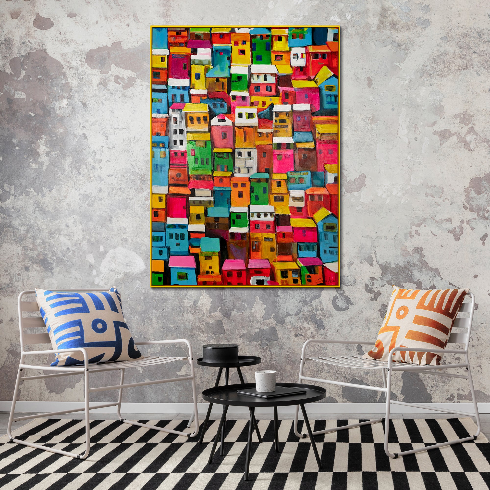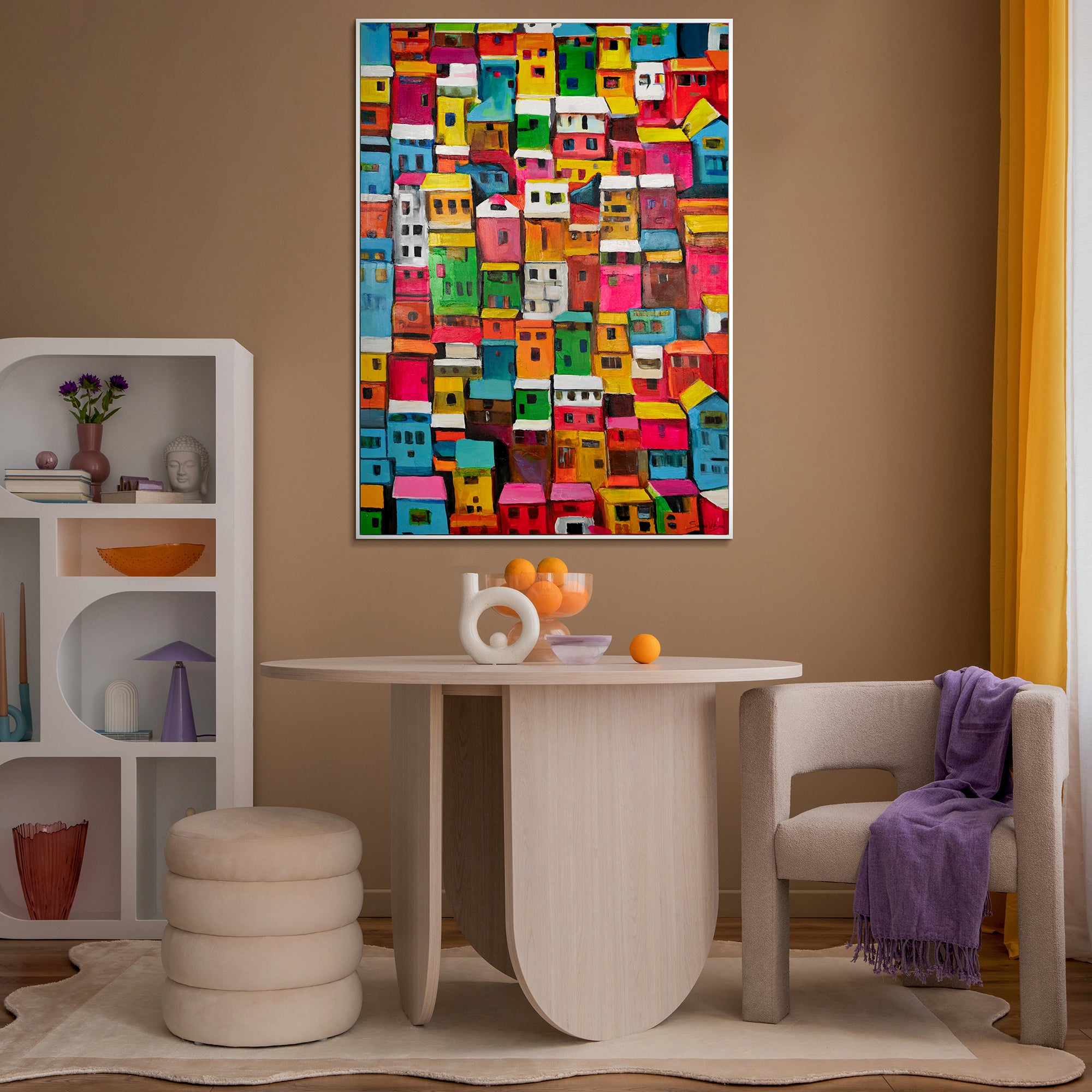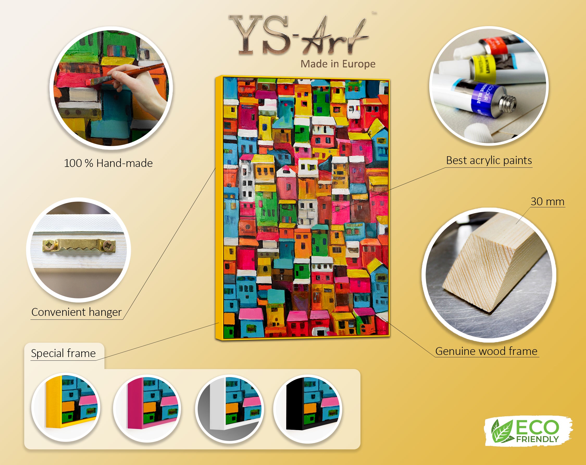 Jedes Haus erzählt seine eigene Geschichte und lädt den Betrachter zum Träumen ein. Dieses handgemalte Bild auf Leinwand ist perfekt für moderne Wohnräume und verleiht Ihrer Einrichtung einen auffälligen, kreativen Touch.
