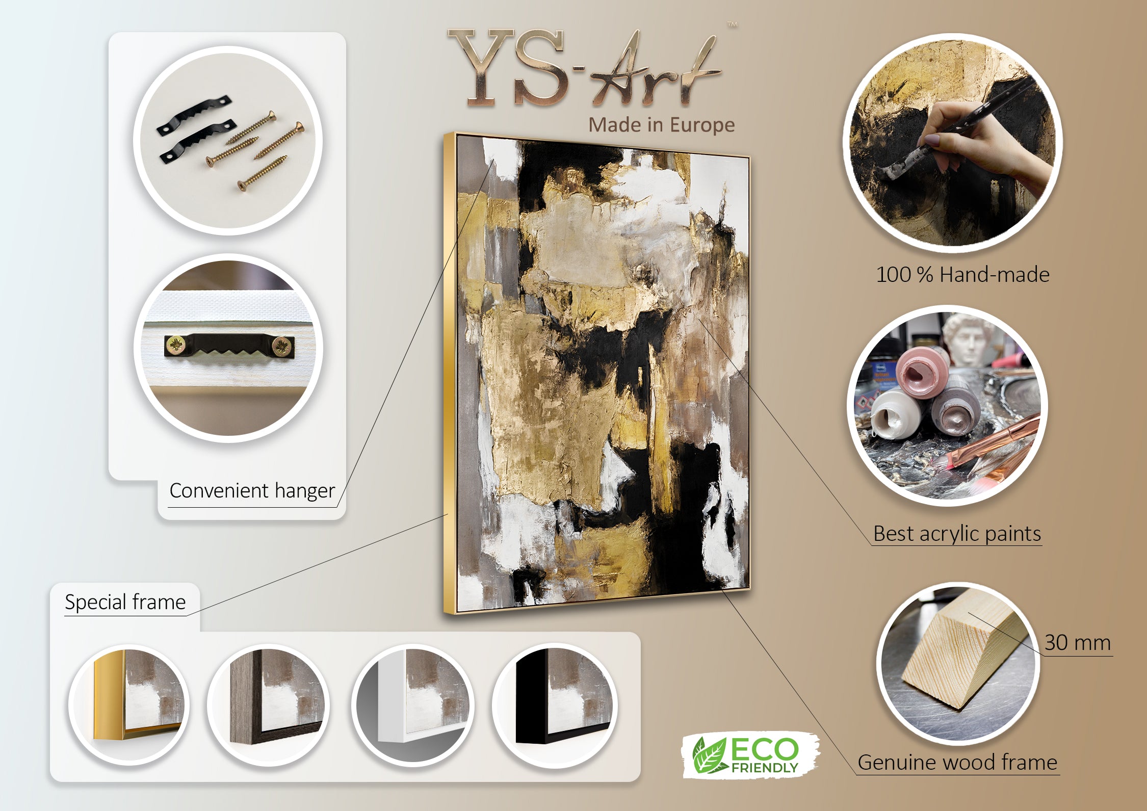 • Tema: Composición dinámica, tonos dorados y negros
