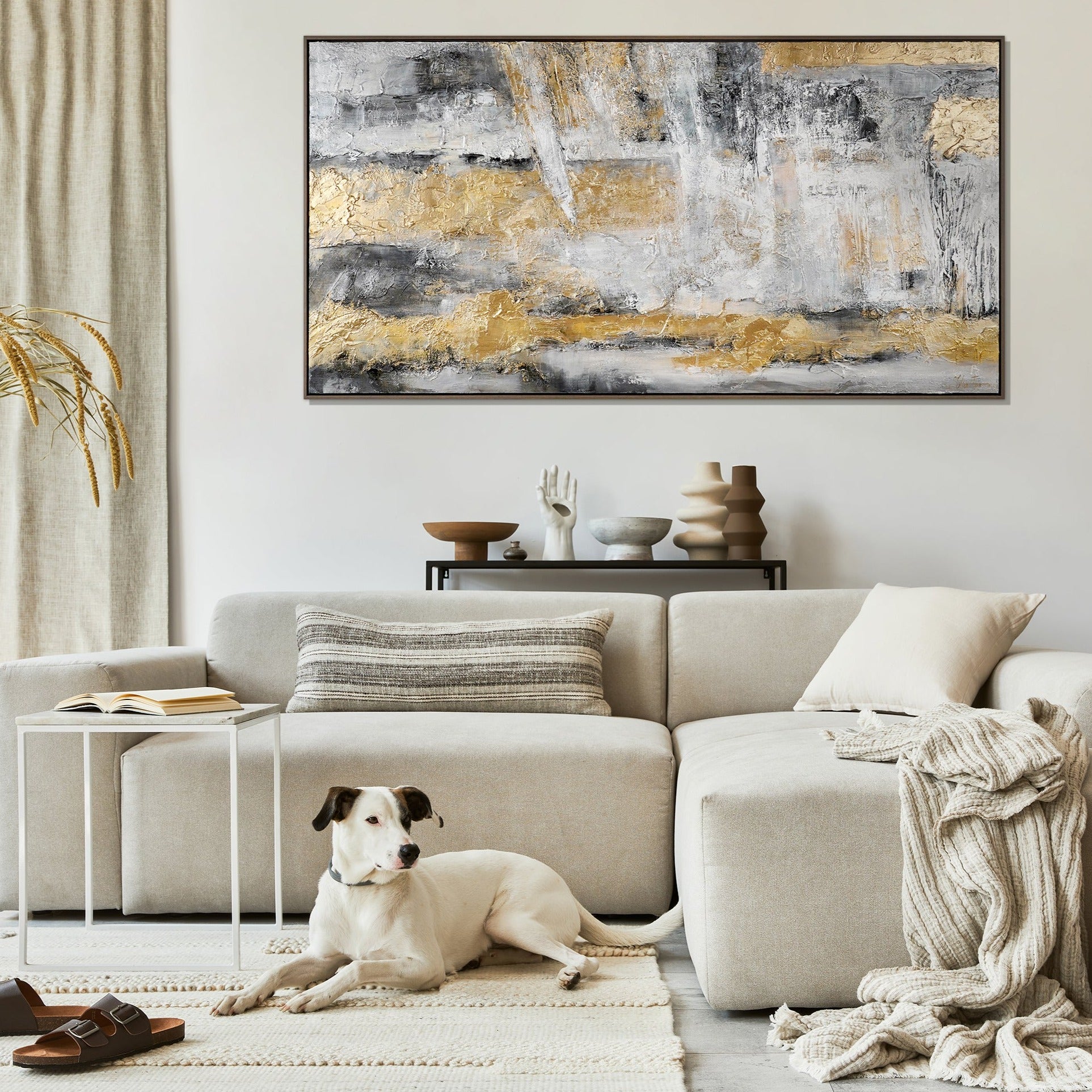 Aporta un toque especial a tu hogar con este impresionante cuadro pintado a mano. La armoniosa combinación de tonos dorados y plateados le otorga un aire de lujo y lo convierte en el centro de todas las miradas. Cada detalle de esta obra ha sido cuidadosamente realizado a mano, lo que la convierte en una pieza única. Disfruta del envío gratuito directamente a tu domicilio.