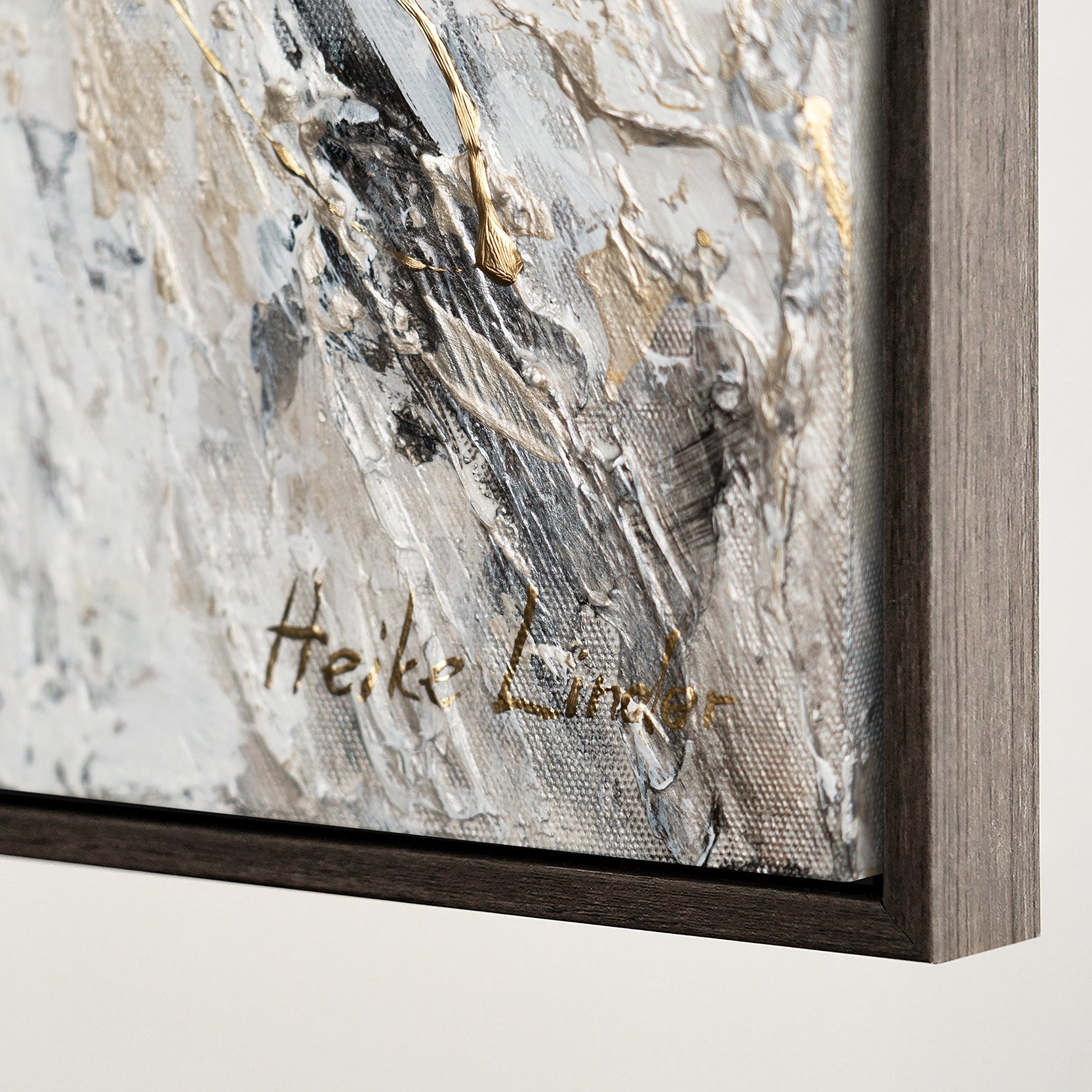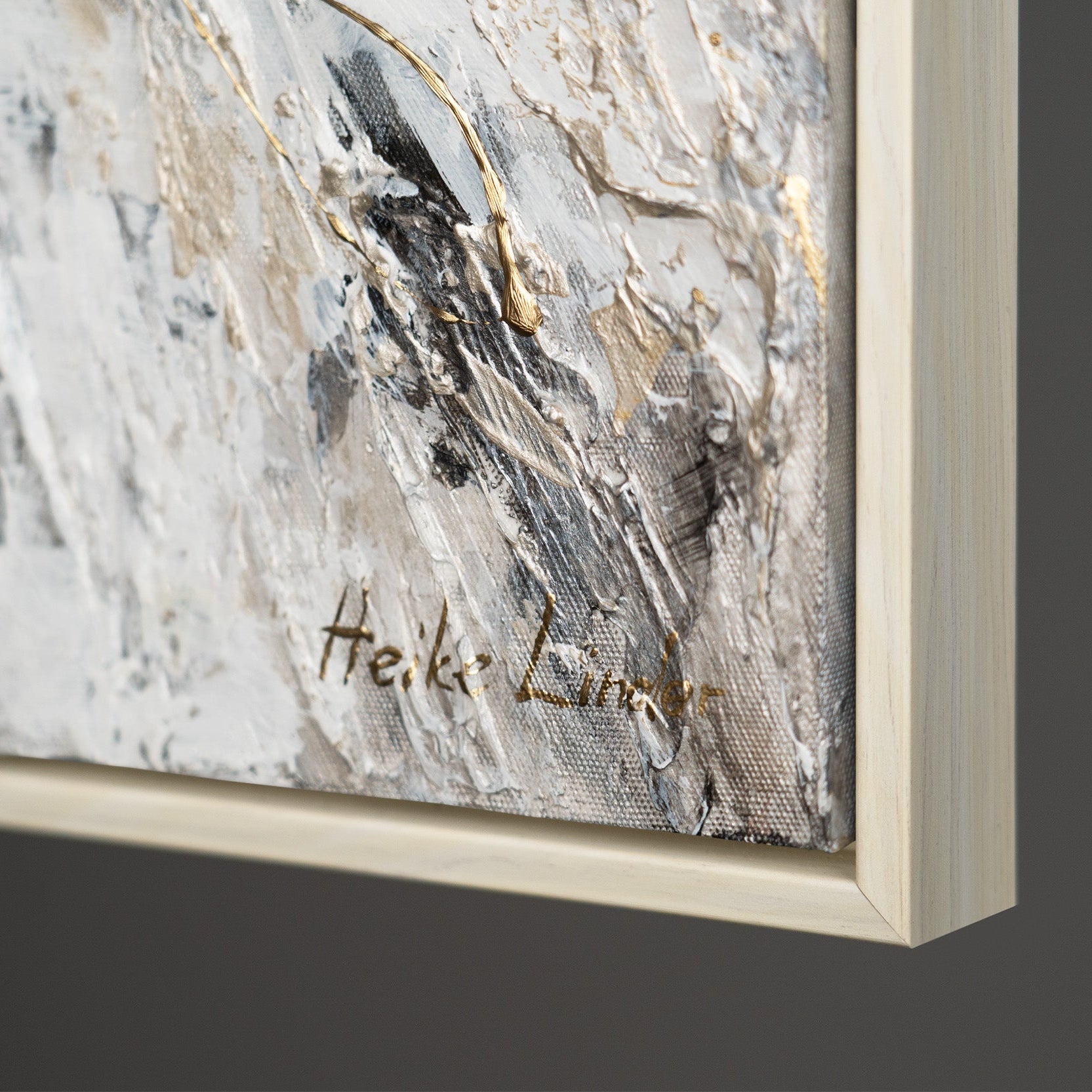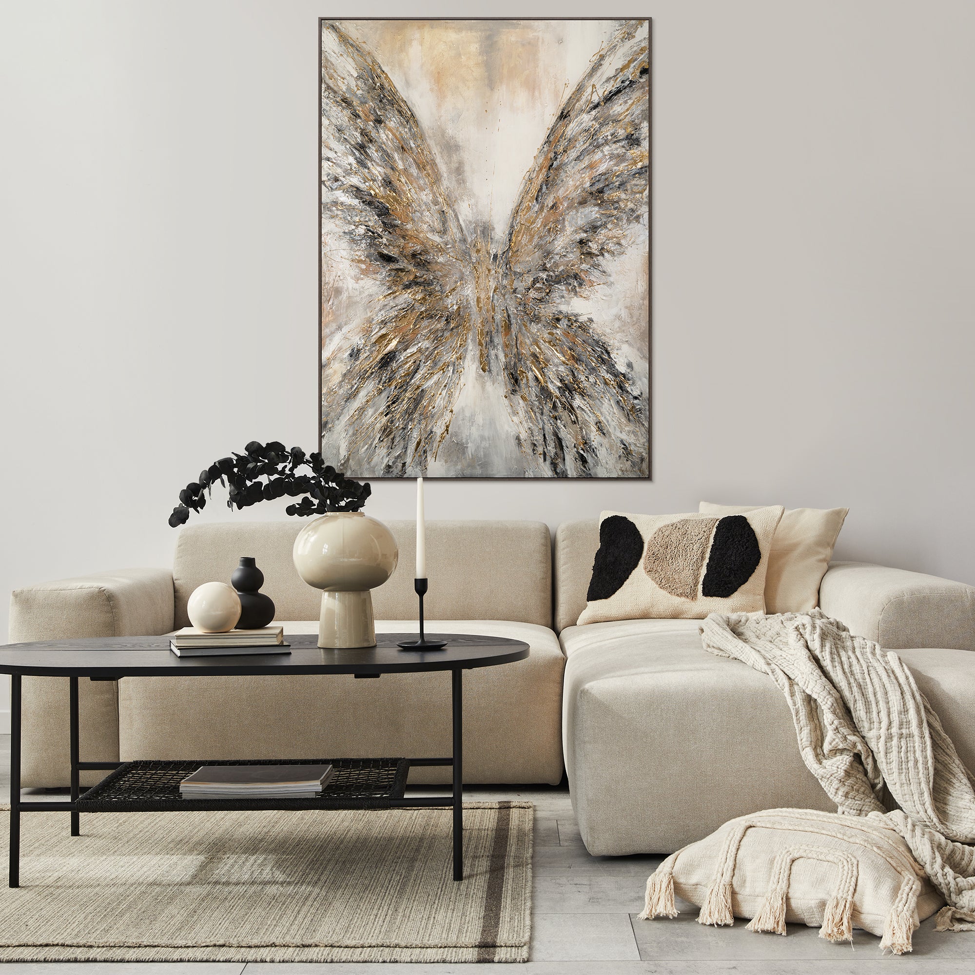¡Añade un toque de elegancia única a tu espacio con esta impresionante obra de arte pintada a mano! La representación abstracta de un ala de mariposa con elegantes detalles dorados crea una cautivadora sensación de profundidad. La lujosa combinación de tonos negro, blanco y dorado le da a la pintura una exquisita luminosidad que impresionará en cualquier interior moderno.