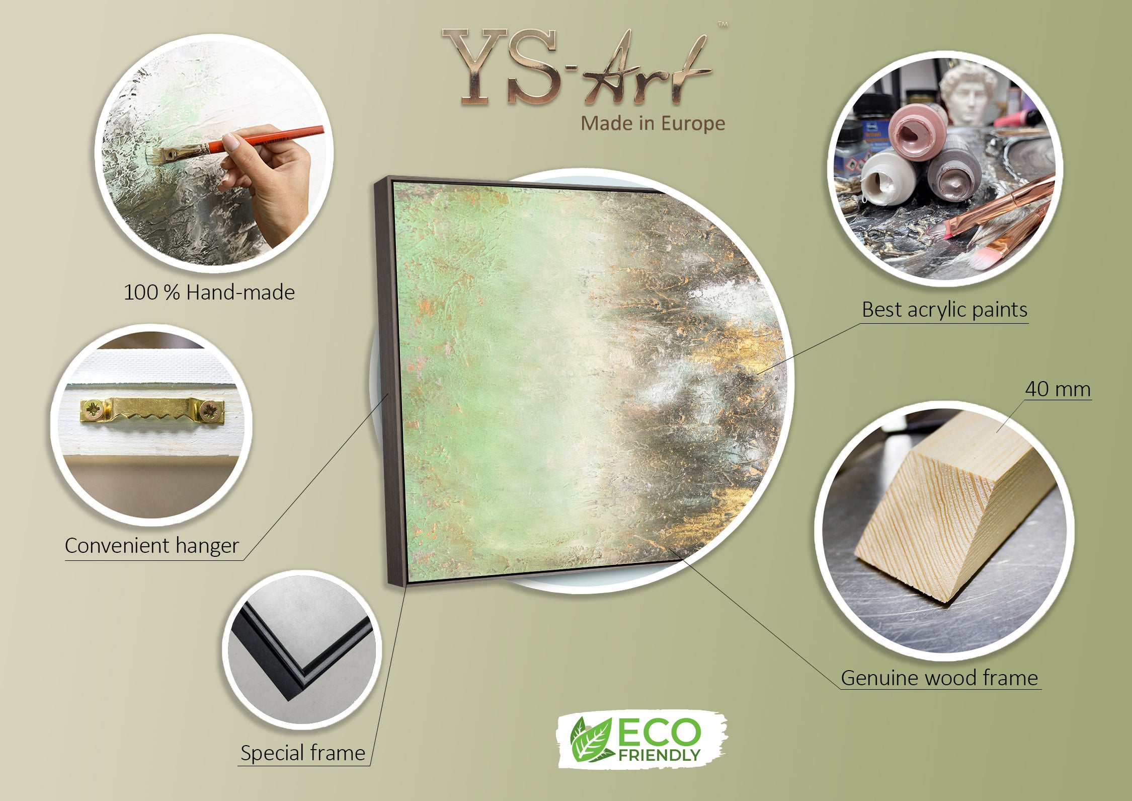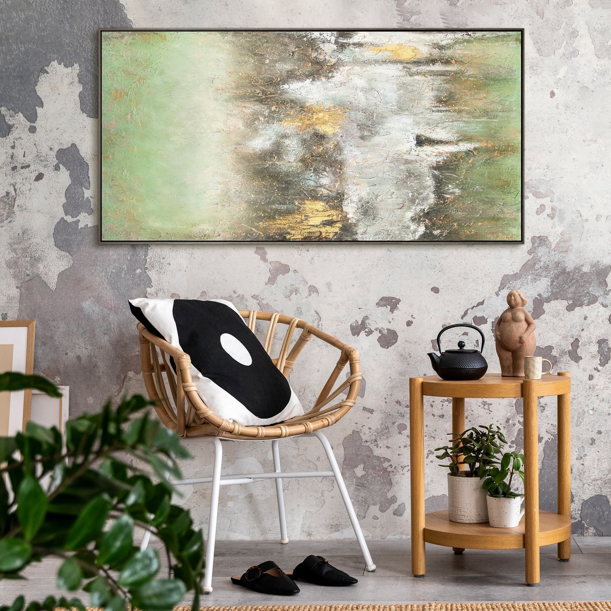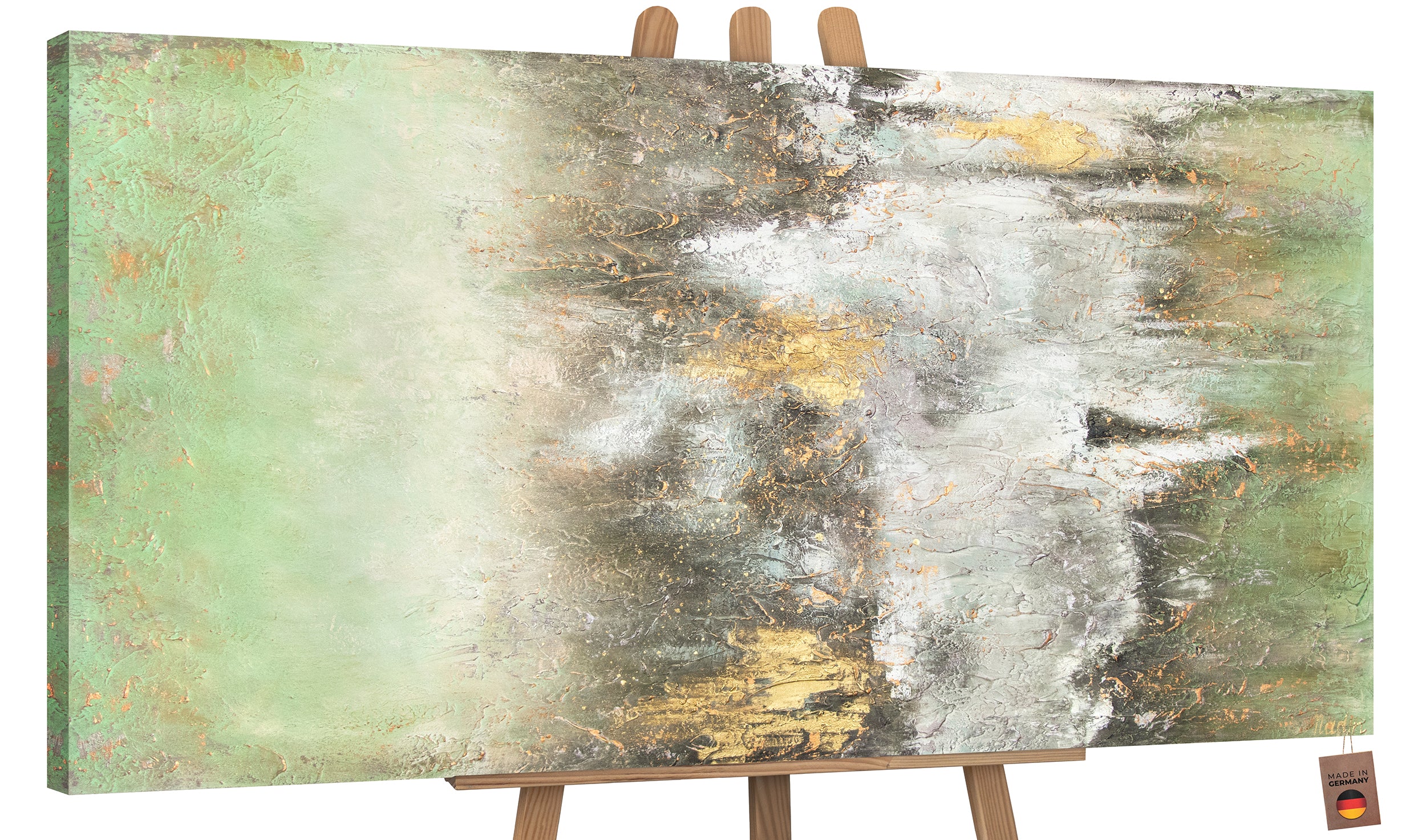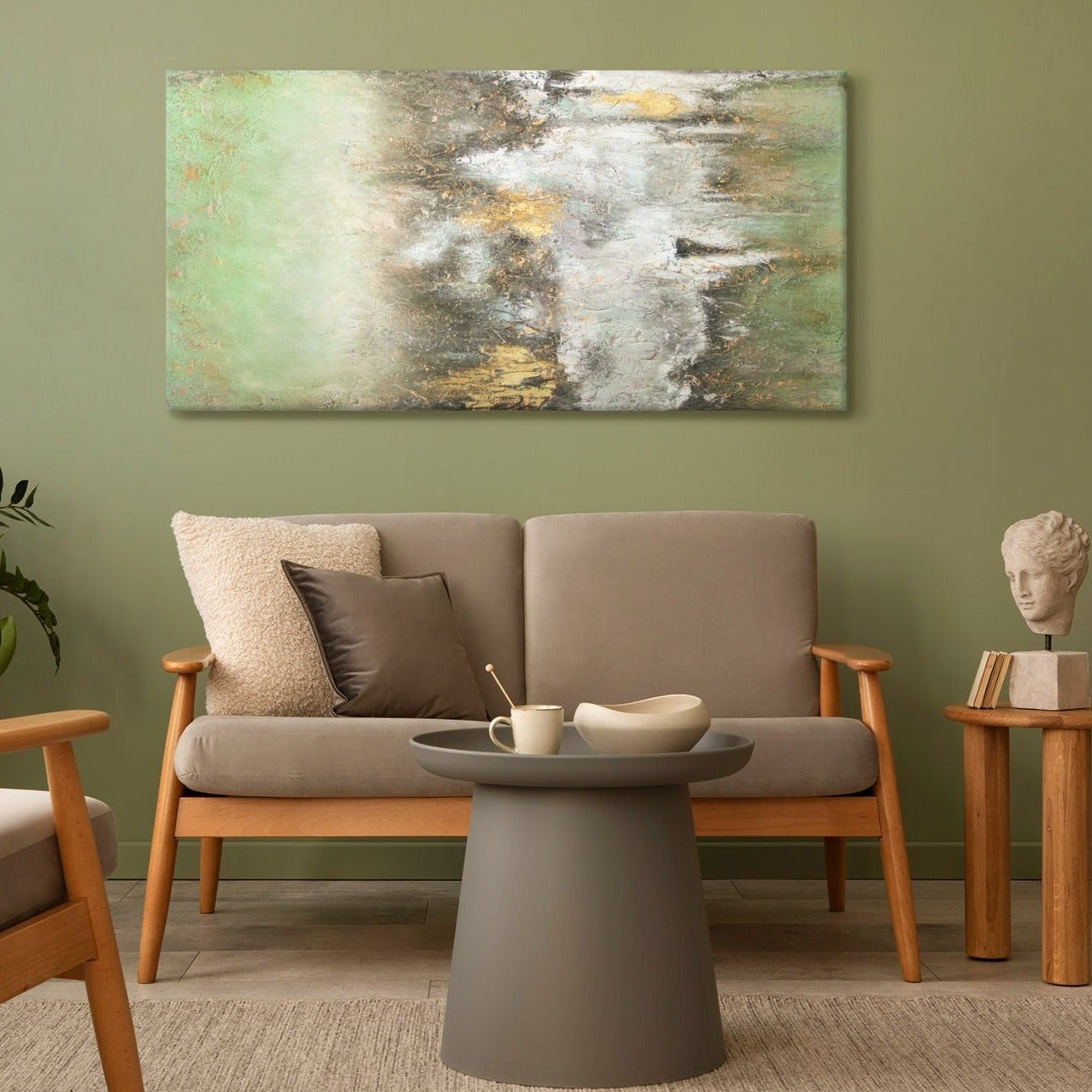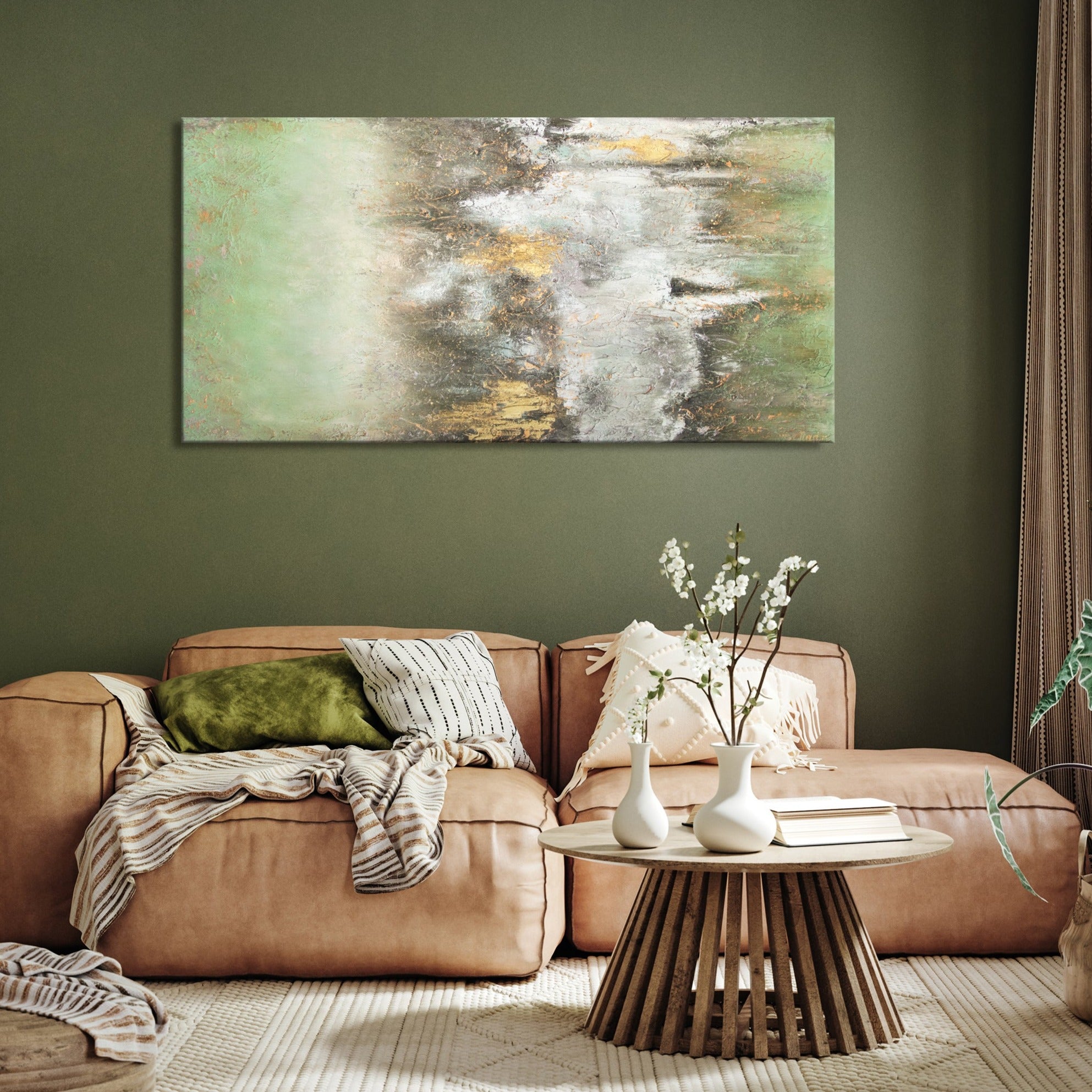 Aporta un aire fresco y moderno a tu hogar con este cuadro abstracto pintado a mano. La armoniosa combinación de tonos verdes y dorados transmite elegancia y serenidad en cualquier estancia. Cada detalle de esta obra ha sido elaborado de forma artesanal, convirtiéndola en una pieza única e irrepetible. Disfruta del envío gratuito directamente a tu domicilio.