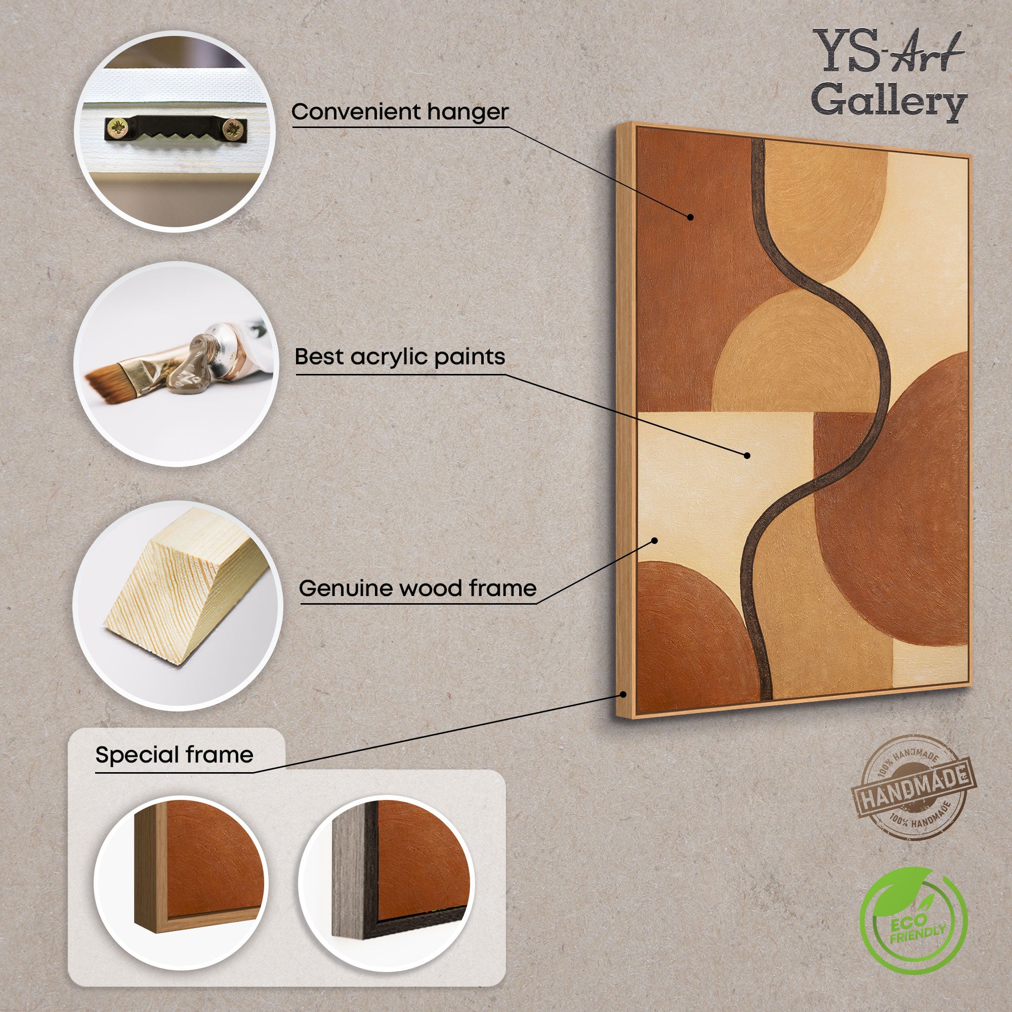 - Pintura acrílica pintada a mano en cálidos tonos tierra