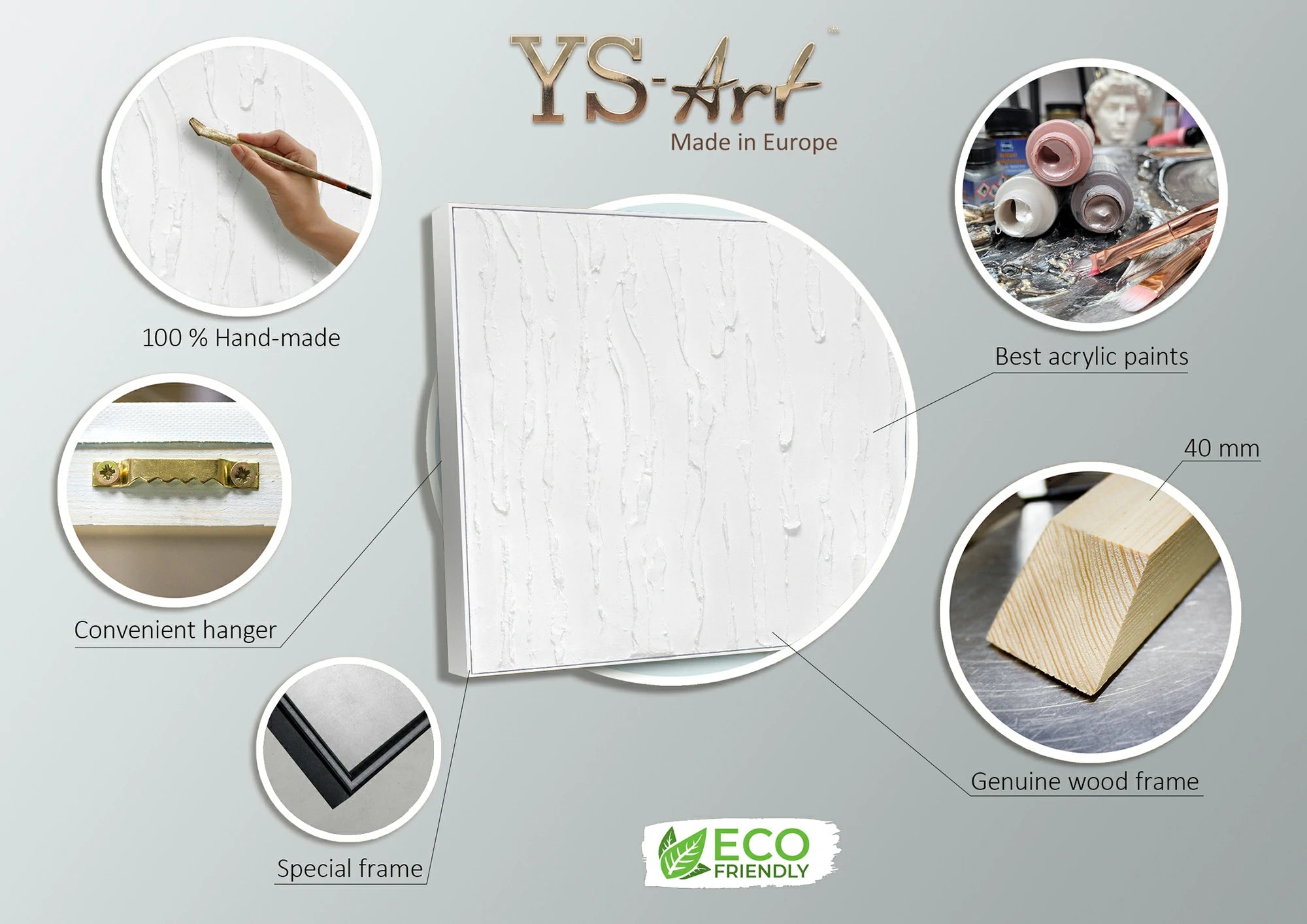 - Materiales: Acrílico, lienzo, bastidor de madera natural