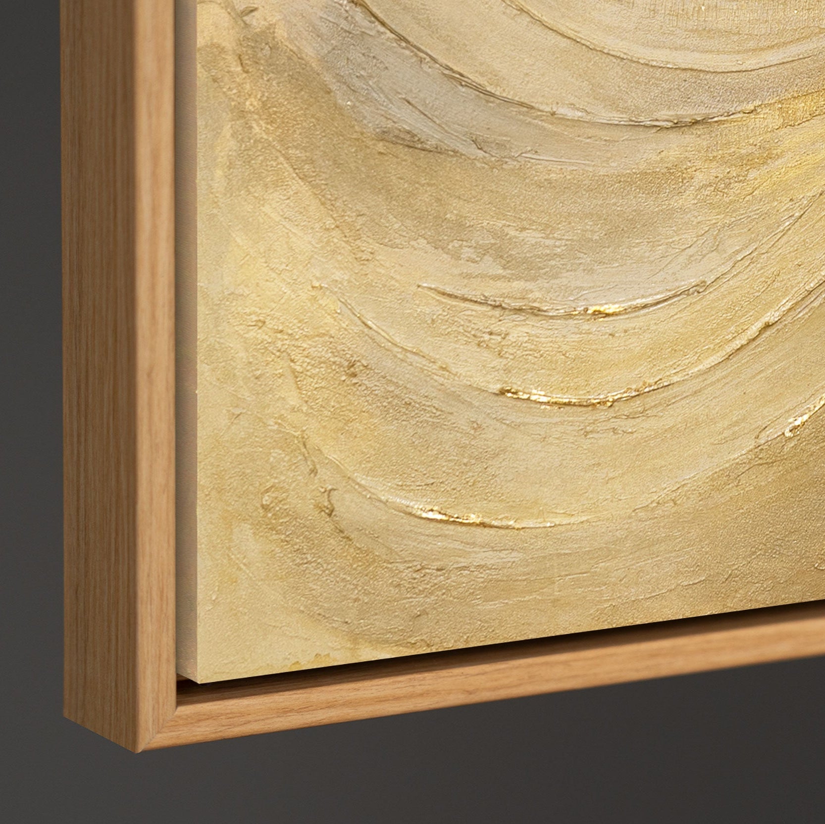 Esta pintura abstracta acrílica es un punto focal estiloso para espacios modernos de vivienda y trabajo. Con su elegante acabado dorado, aporta a cualquier interior un toque de lujo y profundidad. Pintada a mano y única, combina expresión artística con elegancia atemporal.