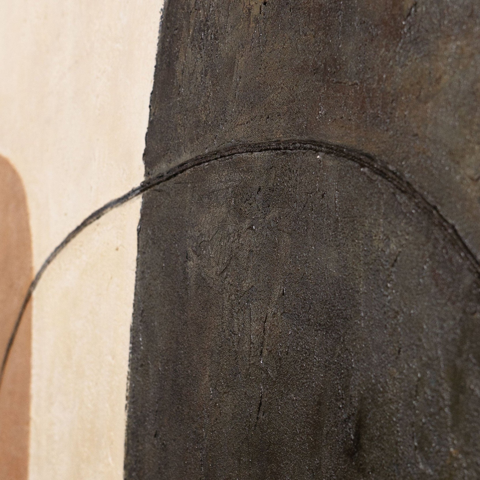 Aporta calma y equilibrio a tu hogar con esta pintura abstracta pintada a mano. La armoniosa combinación de suaves tonos de beige y marrón, acentuados por un profundo gris, otorgan a la obra una elegancia minimalista. Las formas superpuestas simbolizan los contrastes y, al mismo tiempo, la unidad, dando a la pintura una profundidad única.