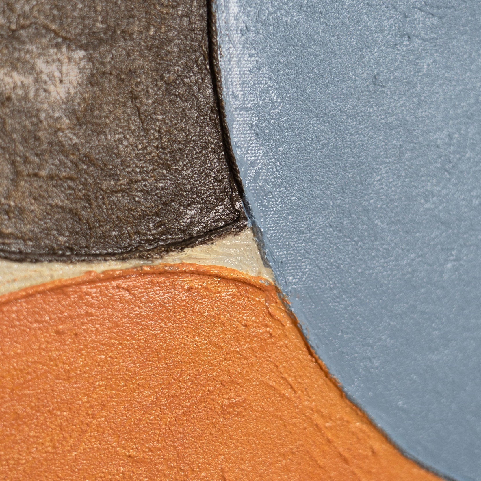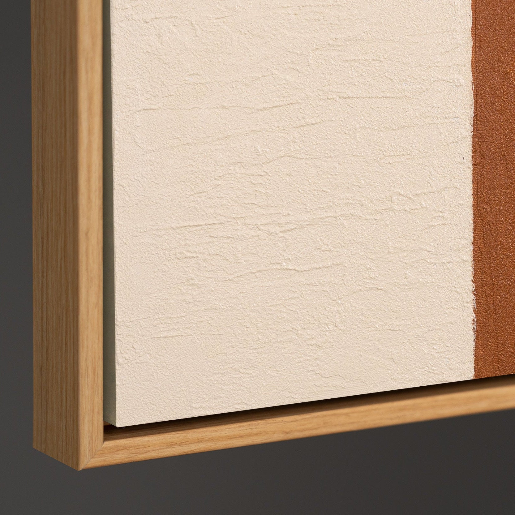 El cuadro pintado a mano sobre lienzo se presenta enmarcado y es ideal como decoración moderna para salones, comedores o elegantes despachos. La discreta paleta de colores permite múltiples combinaciones y contribuye a crear un interior equilibrado y contemporáneo.
