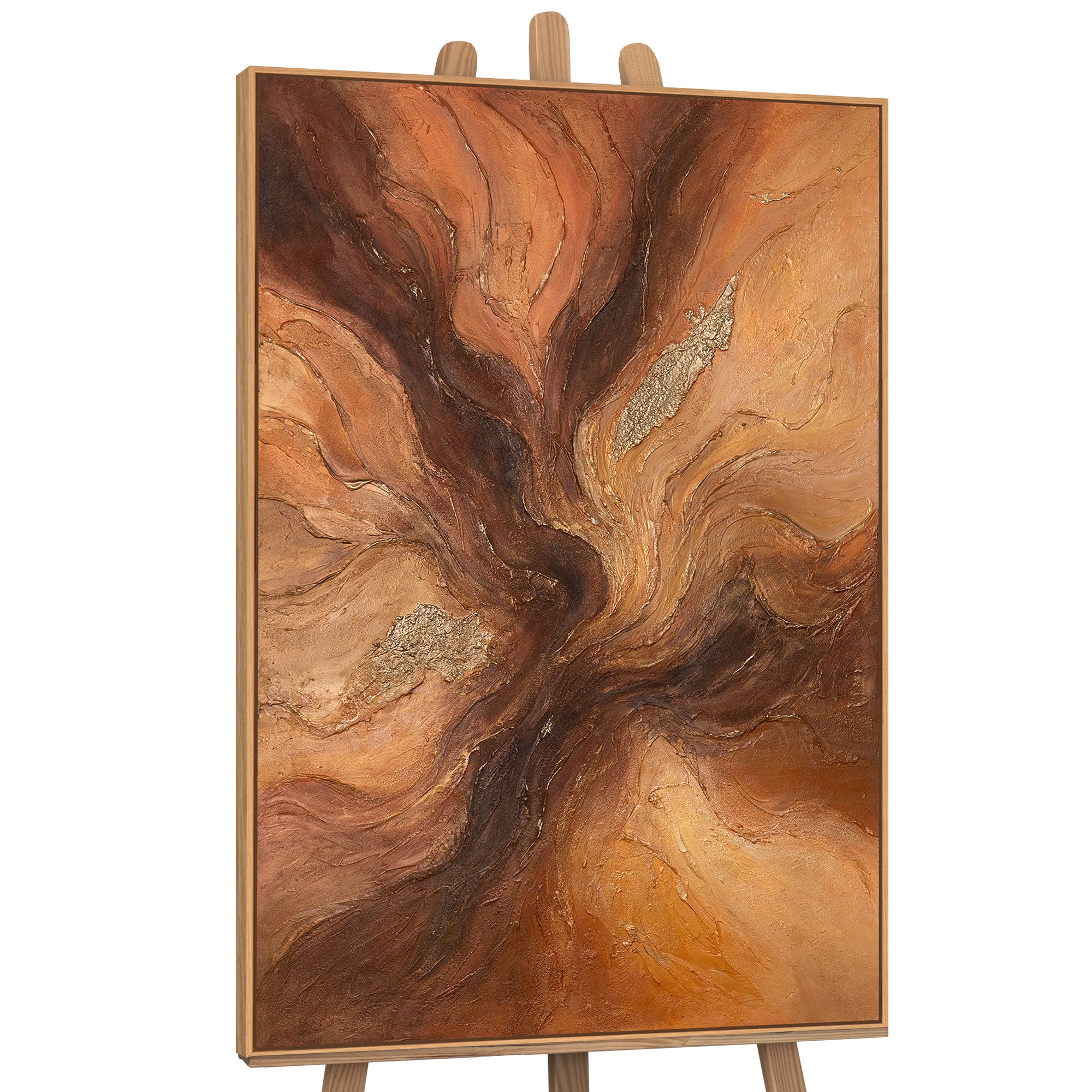 «Arroyos de Ámbar» es una pintura acrílica pintada a mano que crea una atmósfera especial con sus formas fluidas y cálidos tonos tierra. Tonos de marrón, cobre y oro se funden en una composición dinámica que irradia profundidad y vitalidad. La textura en relieve enfatiza el movimiento de las líneas, convirtiendo la obra en un punto focal impactante.