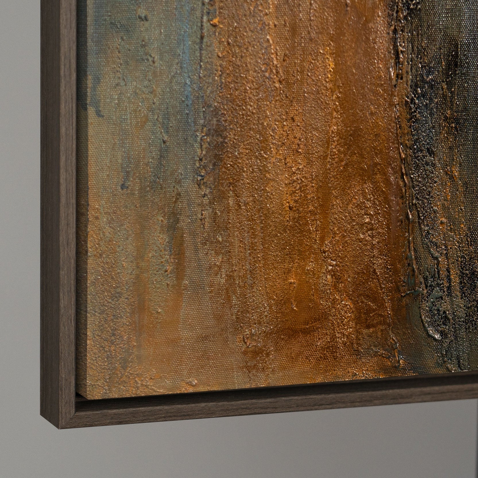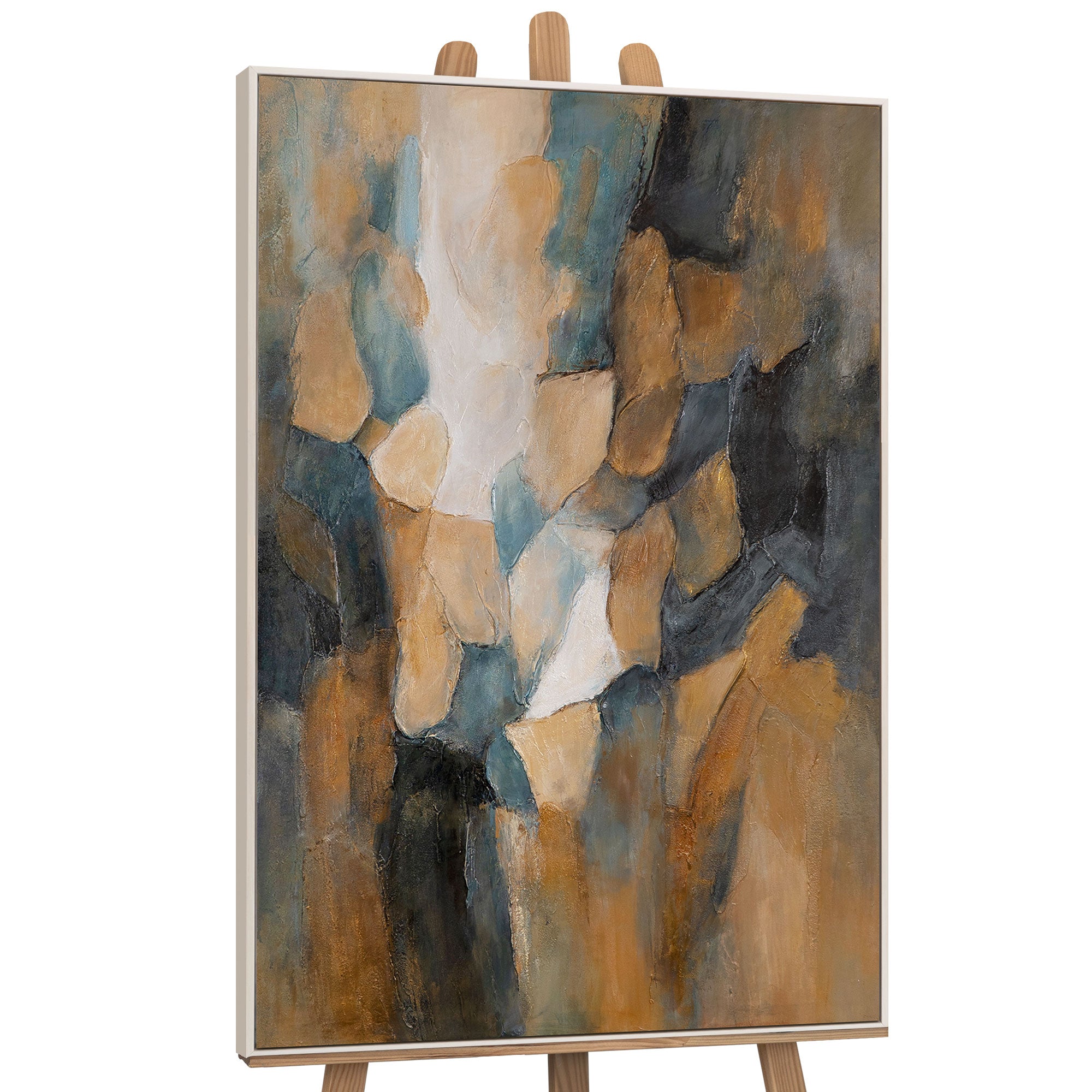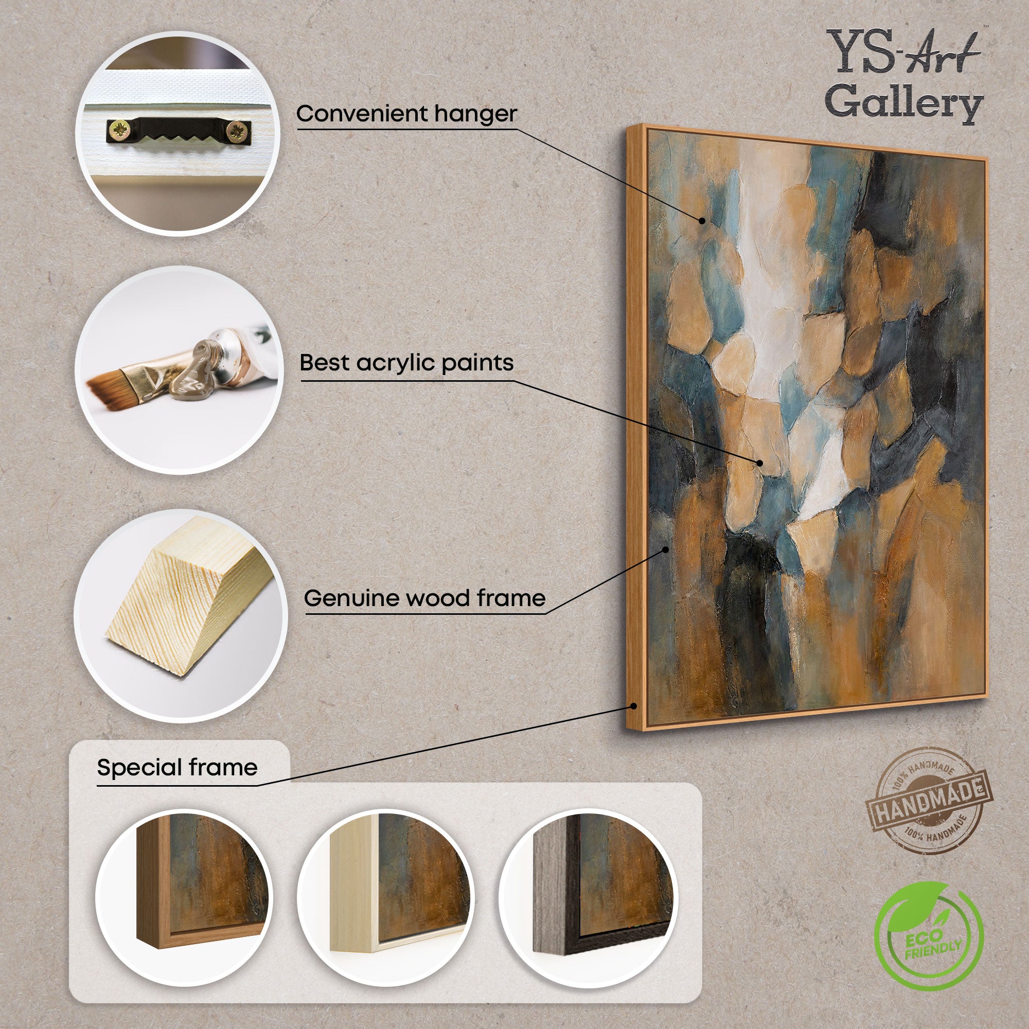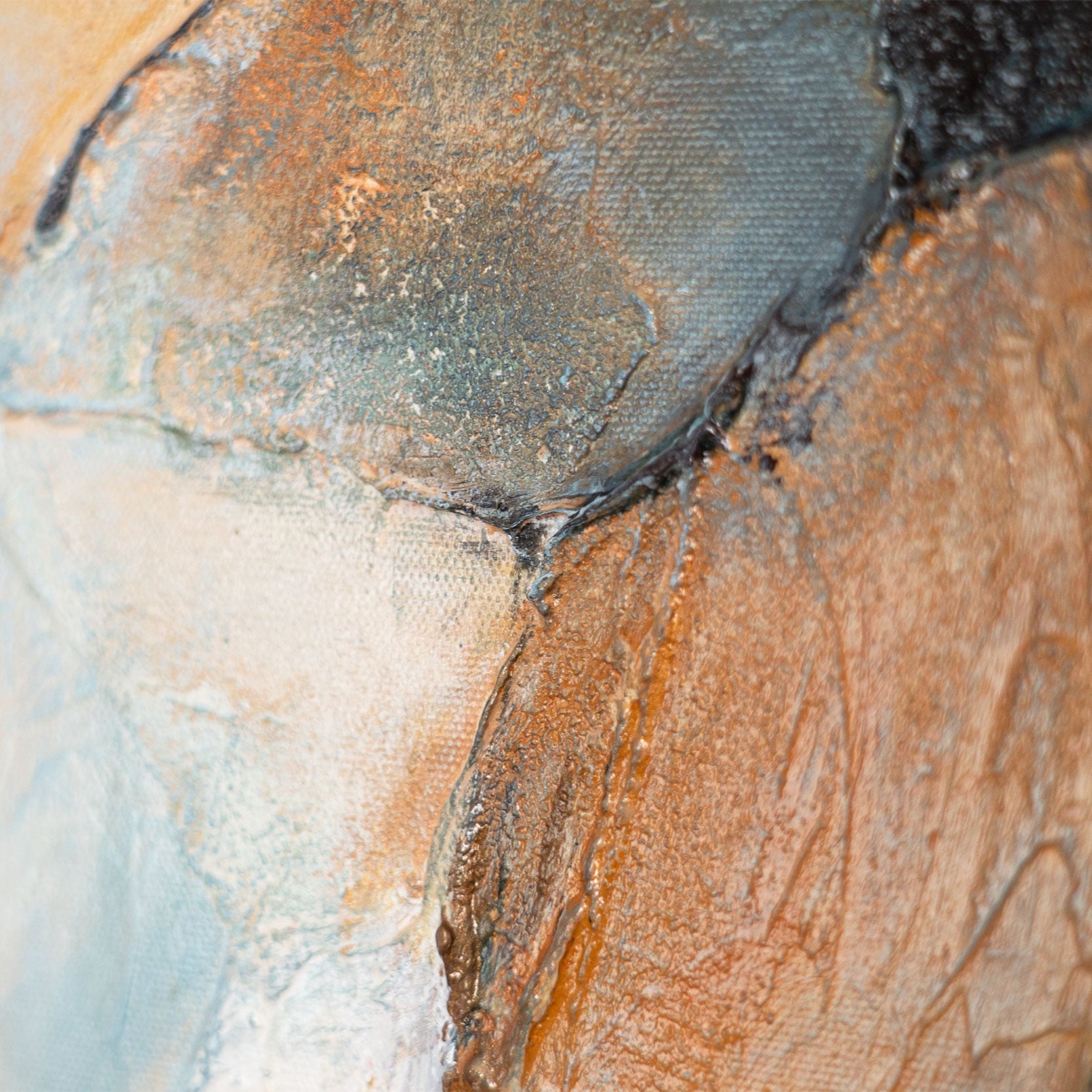 «Paleta del Atardecer» es una pintura acrílica pintada a mano que cautiva con su rica textura y armoniosa combinación de cálidos tonos marrones, ocres y azules. El juego de luces y sombras crea profundidad y movimiento, mientras que la superficie con relieve revela una textura fascinante y vibrante.