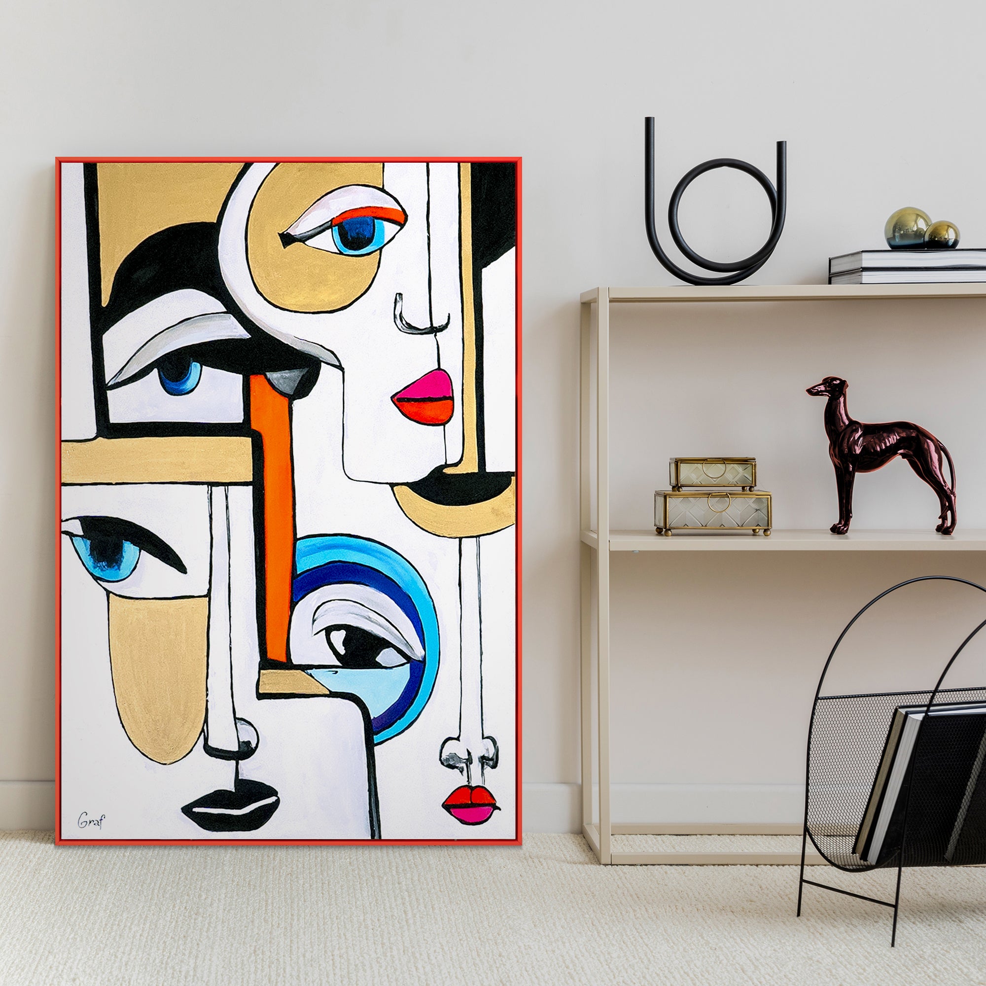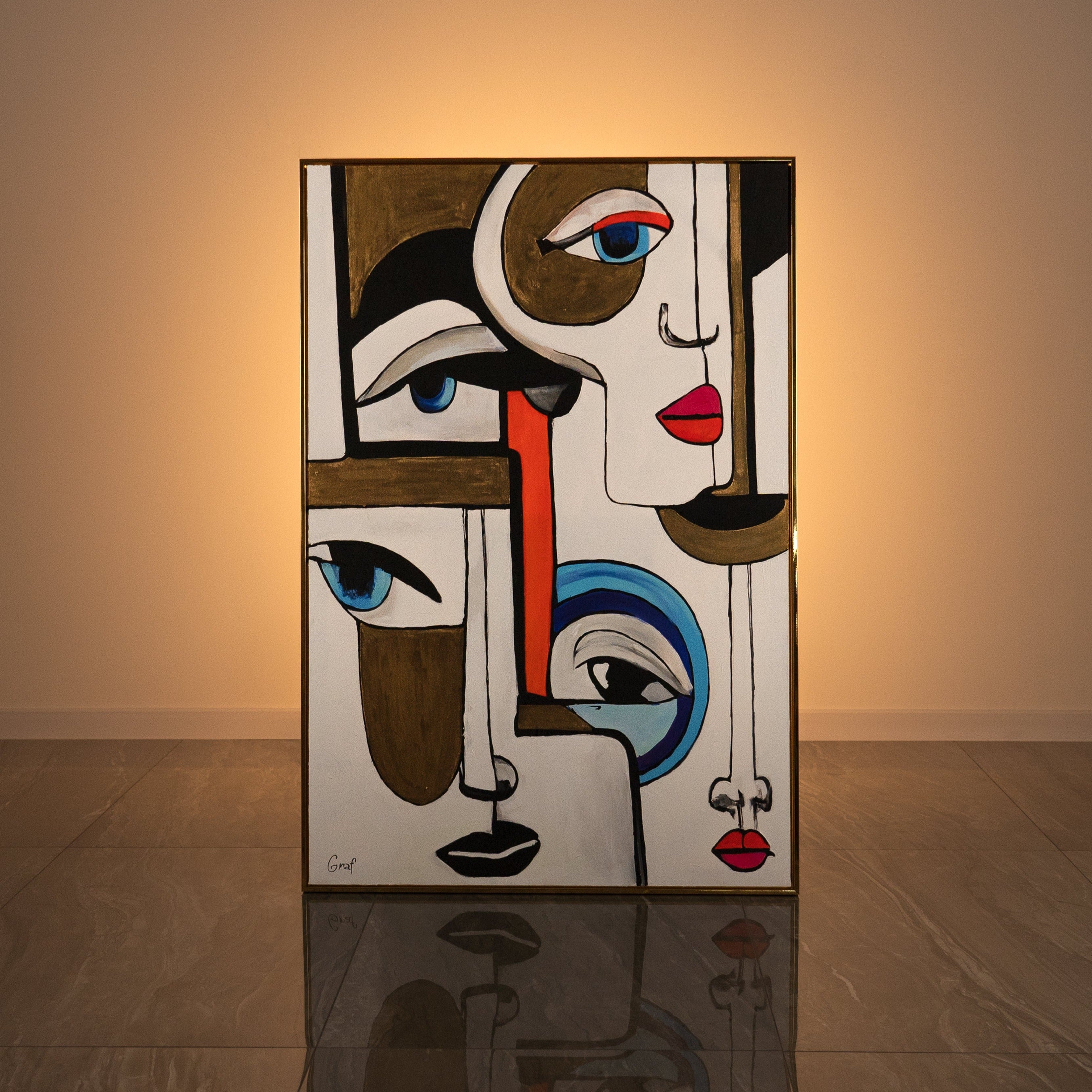 • Cuadro pintado a mano con marco "Juego de la Geometría" – Arte abstracto para decoración moderna