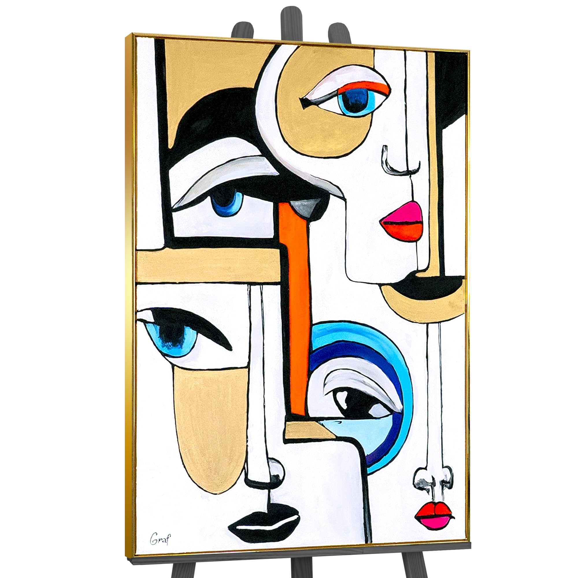 Cuadro pintado a mano con marco "Juego de la Geometría" – Arte abstracto para decoración moderna
