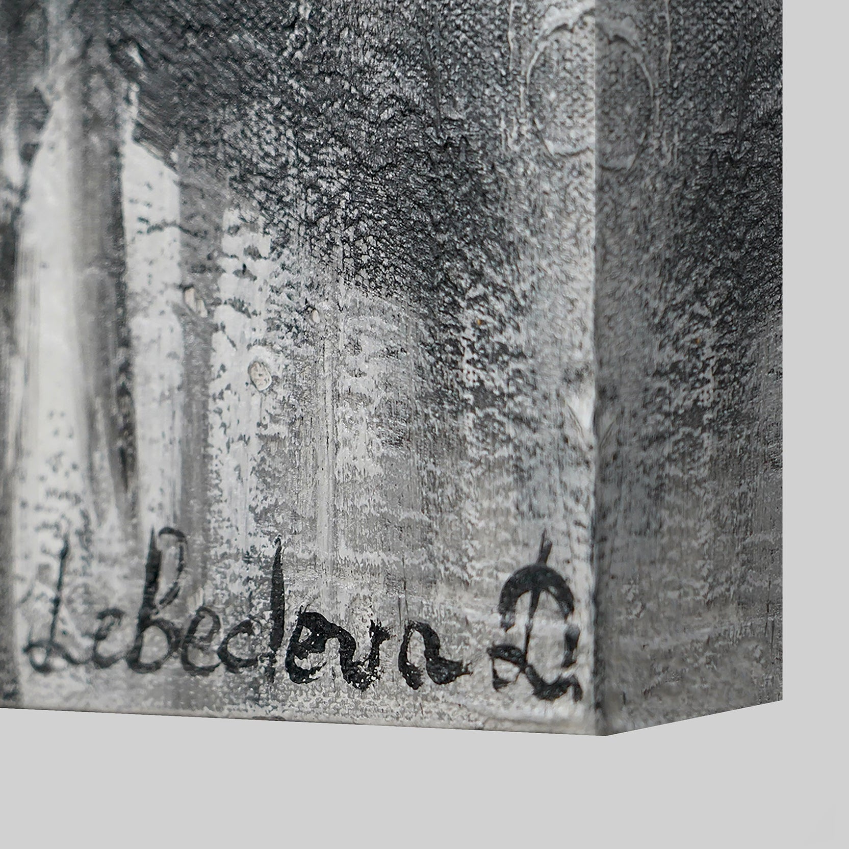 Aporta elegancia y estilo contemporáneo a tu hogar con esta impresionante pintura en formato vertical. La figura enigmática de una mujer vestida de negro con sombrero, sobre un fondo en tonos de negro, blanco y dorado, atrae todas las miradas y añade un toque de sofisticación a cualquier espacio.