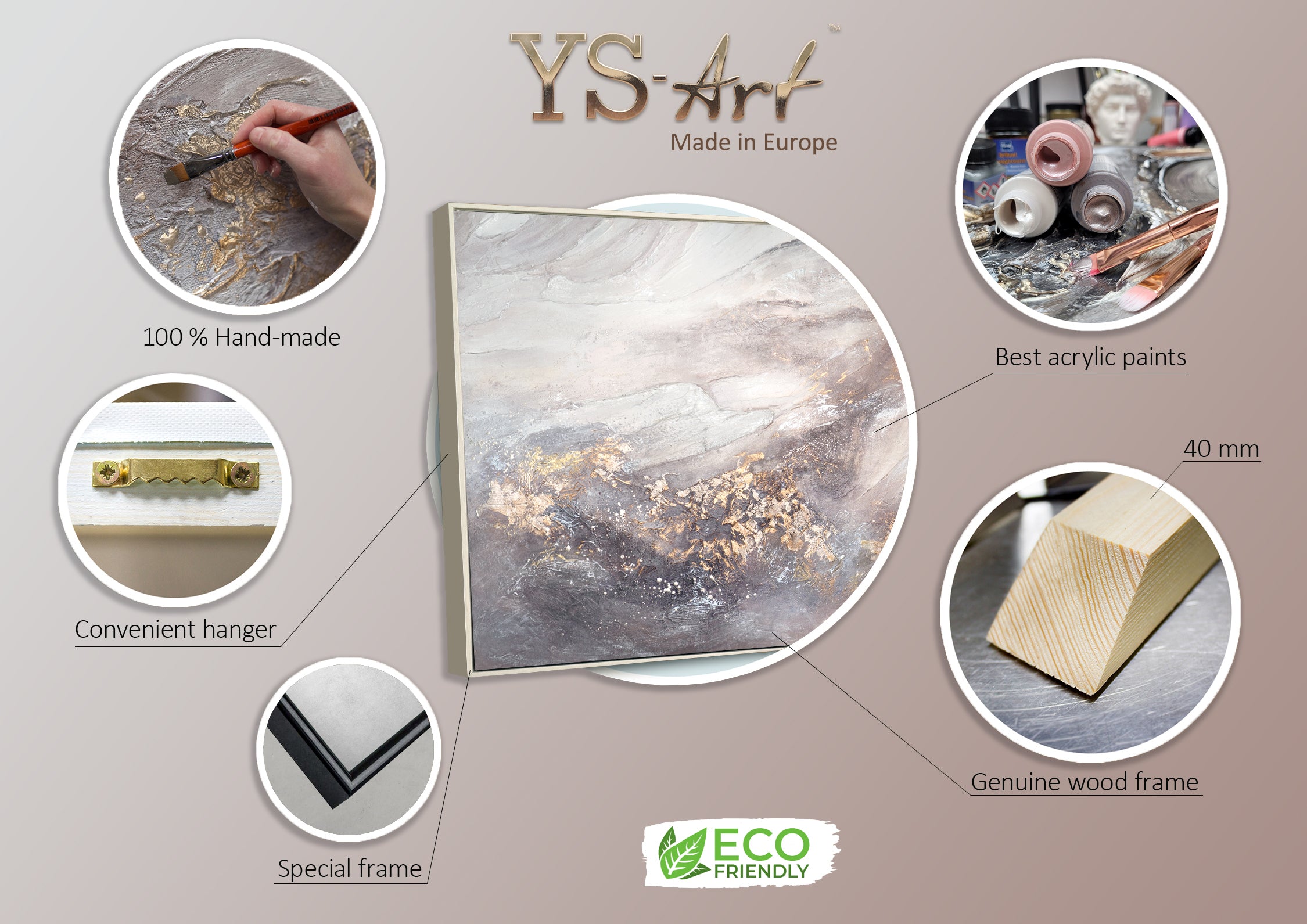Für unsere Gemälde benutzen wir ausschließlich nur hochwertige Materialien, die den internationalen Standards entsprechen. Jedes Gemälde von uns kann auf Wunsch in einer anderen Größe gemalt werden.