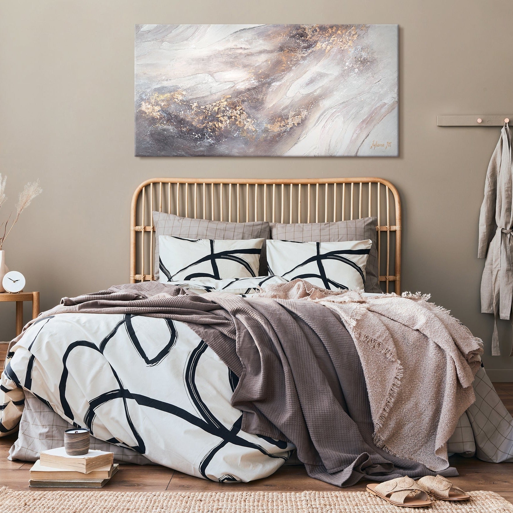 - Materialien: Acryl, Leinwand, Keilrahmen aus Naturholz.