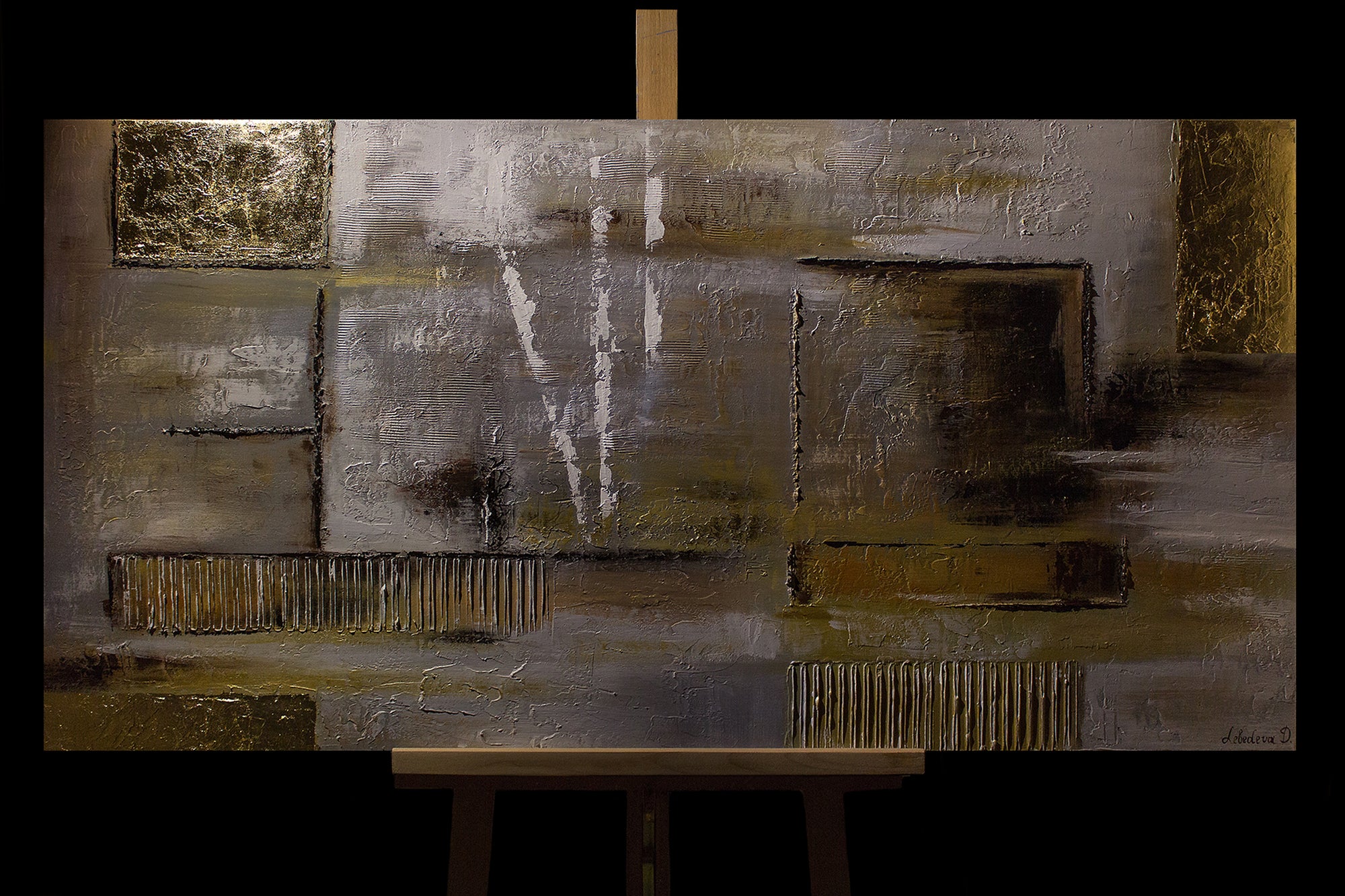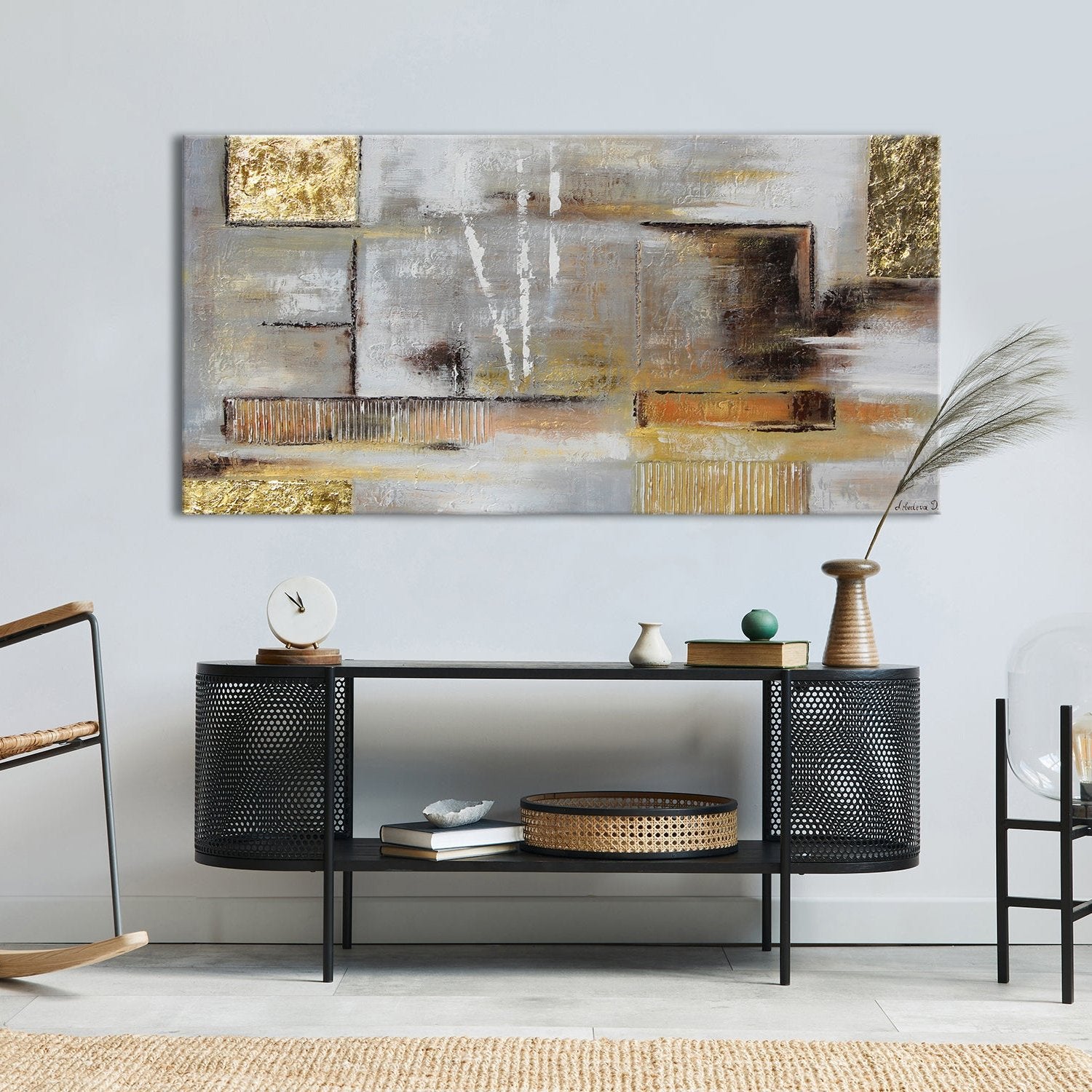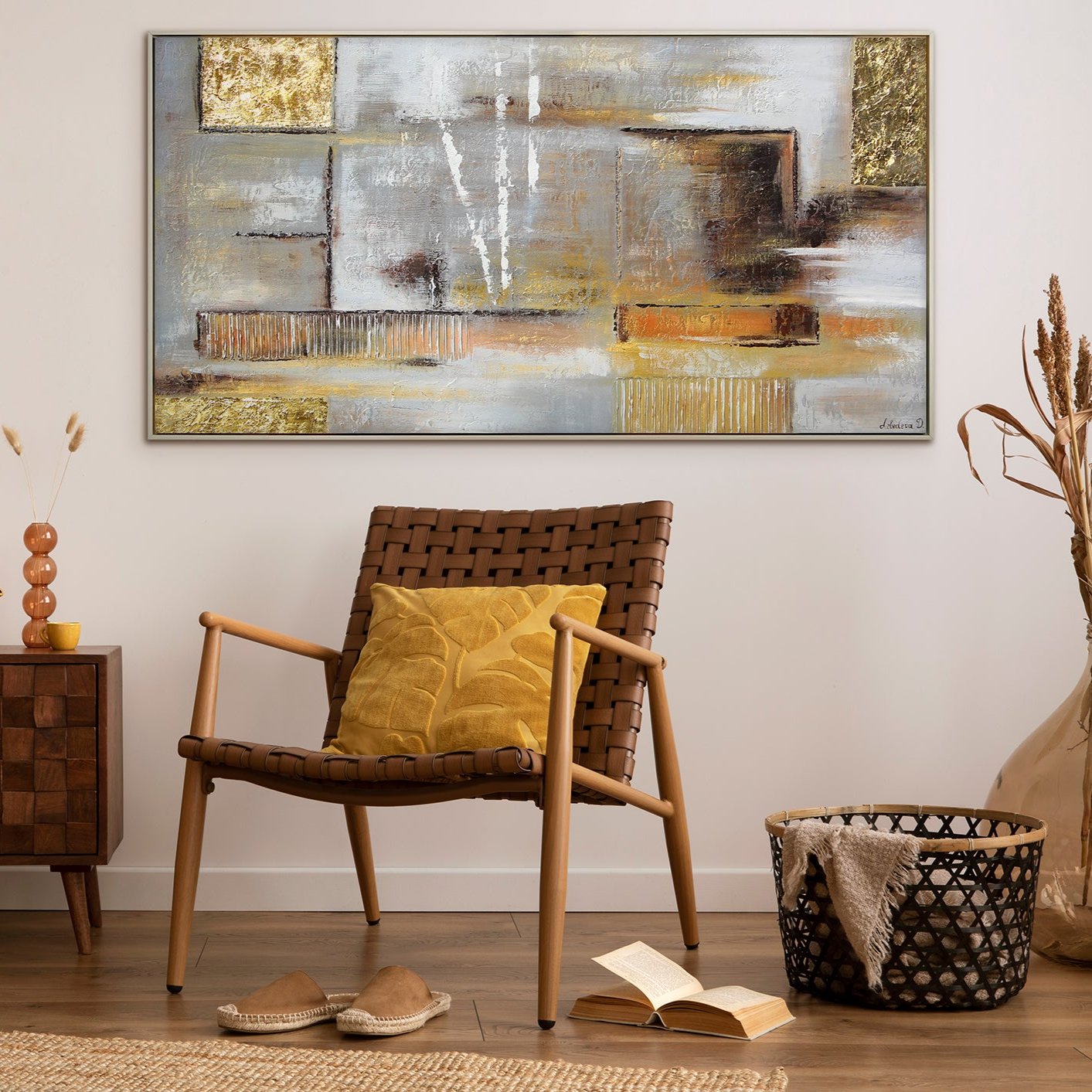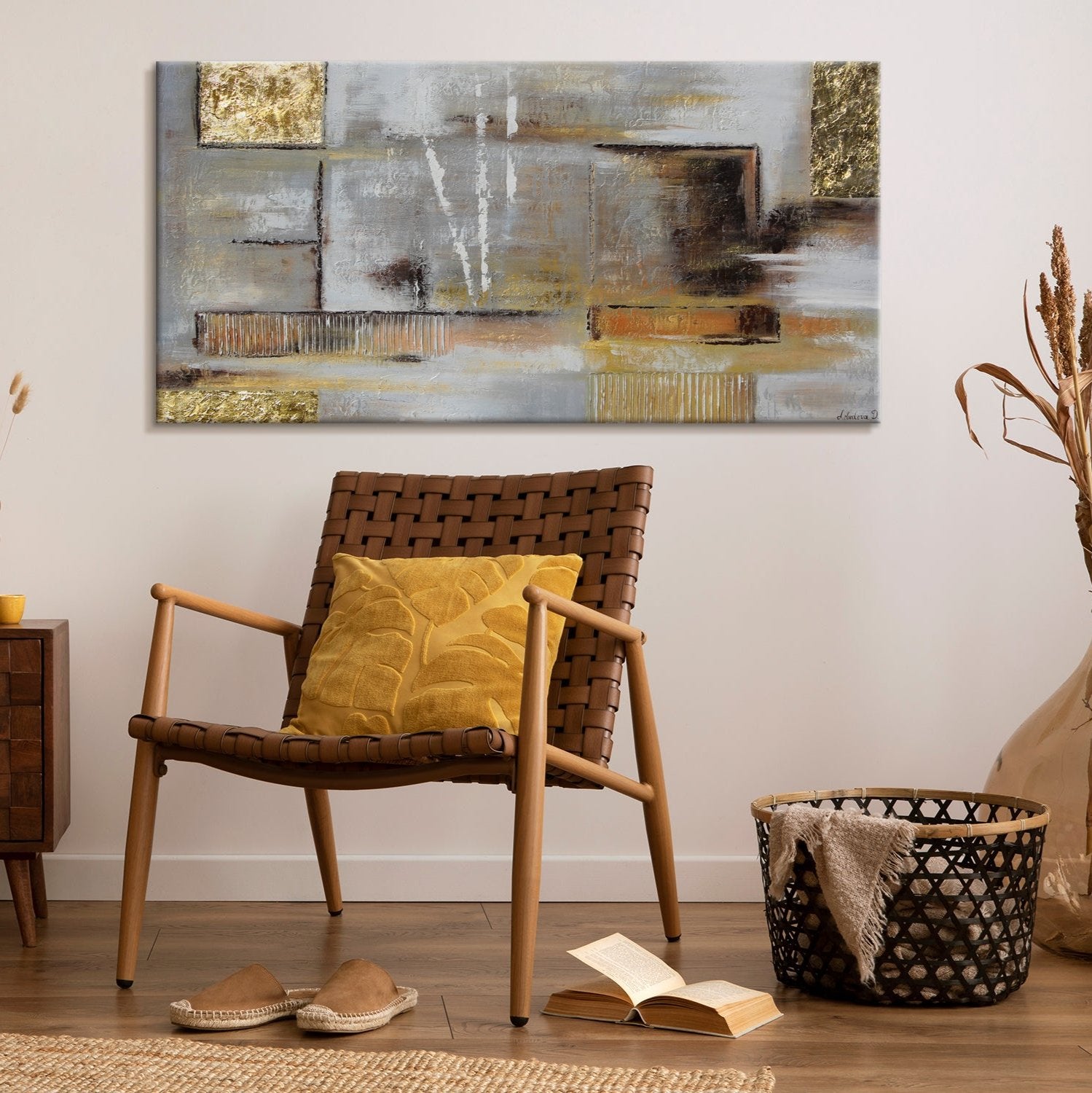 • Cuadro abstracto con detalles dorados – Decoración de pared moderna