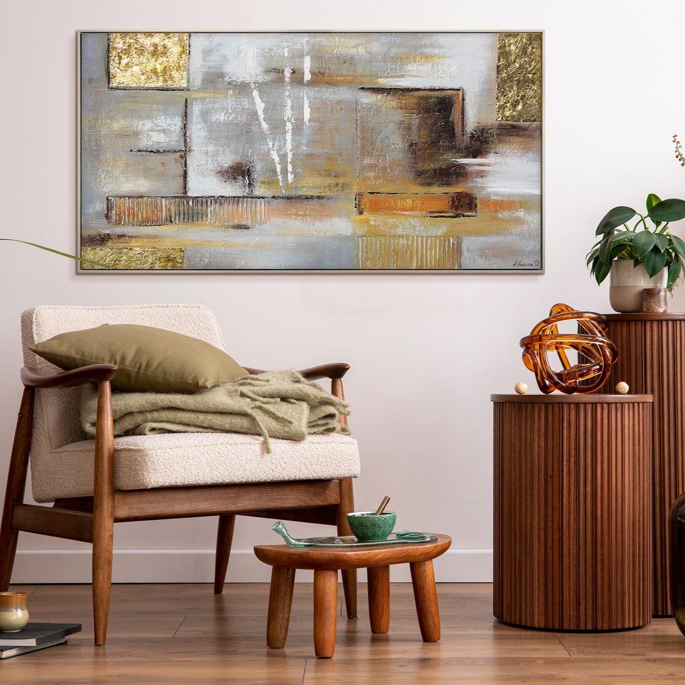 Cuadro abstracto con detalles dorados – Decoración de pared moderna