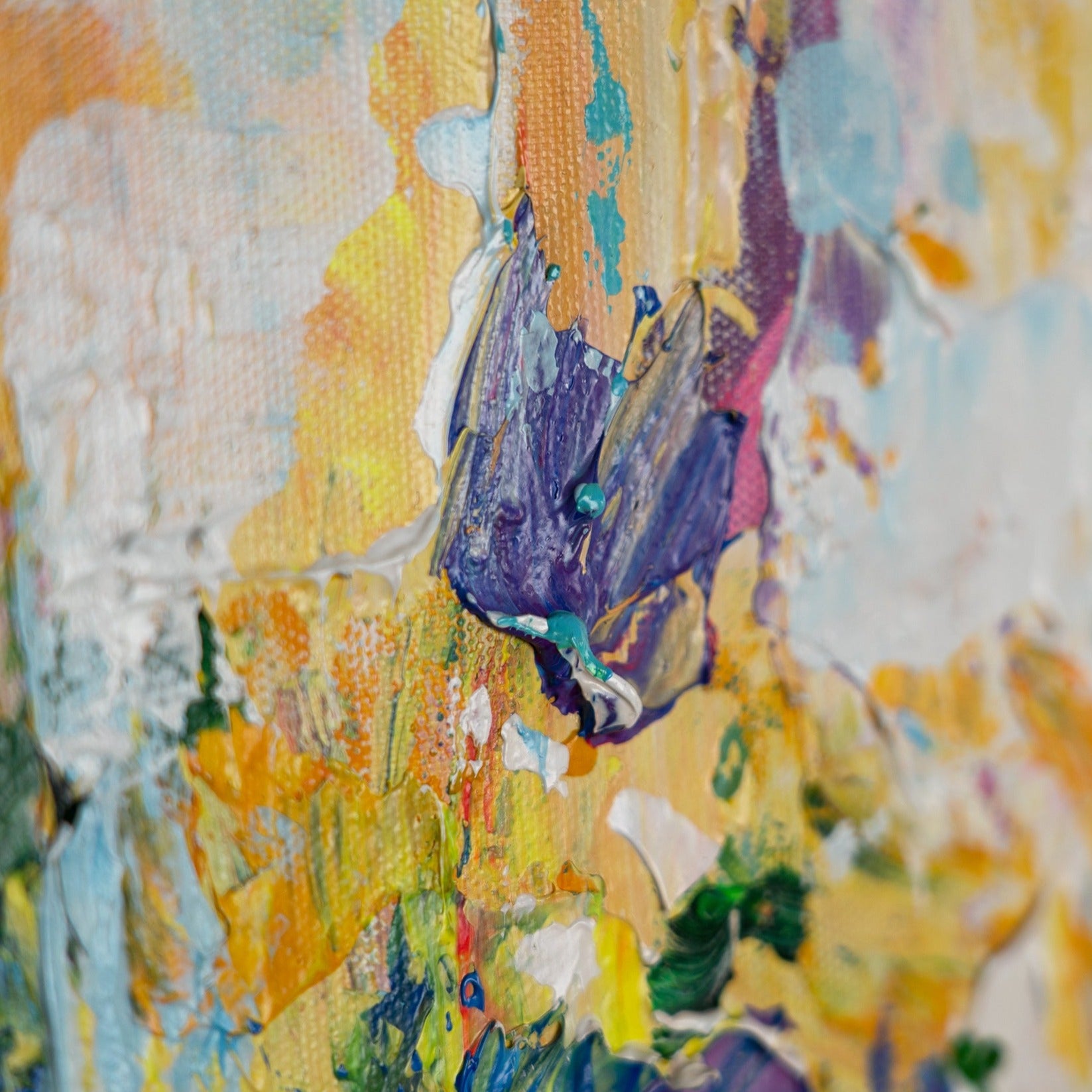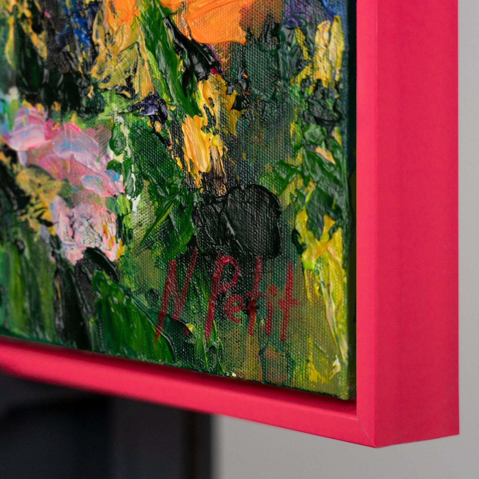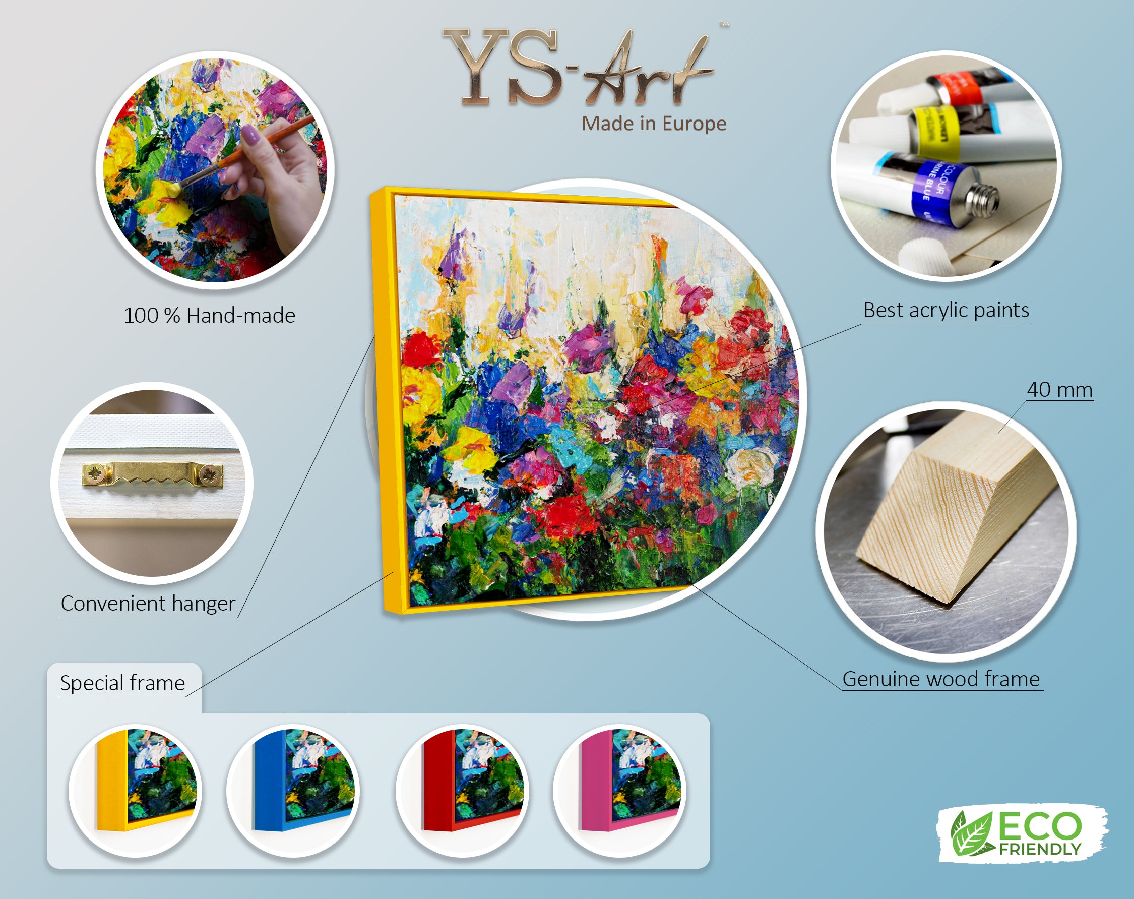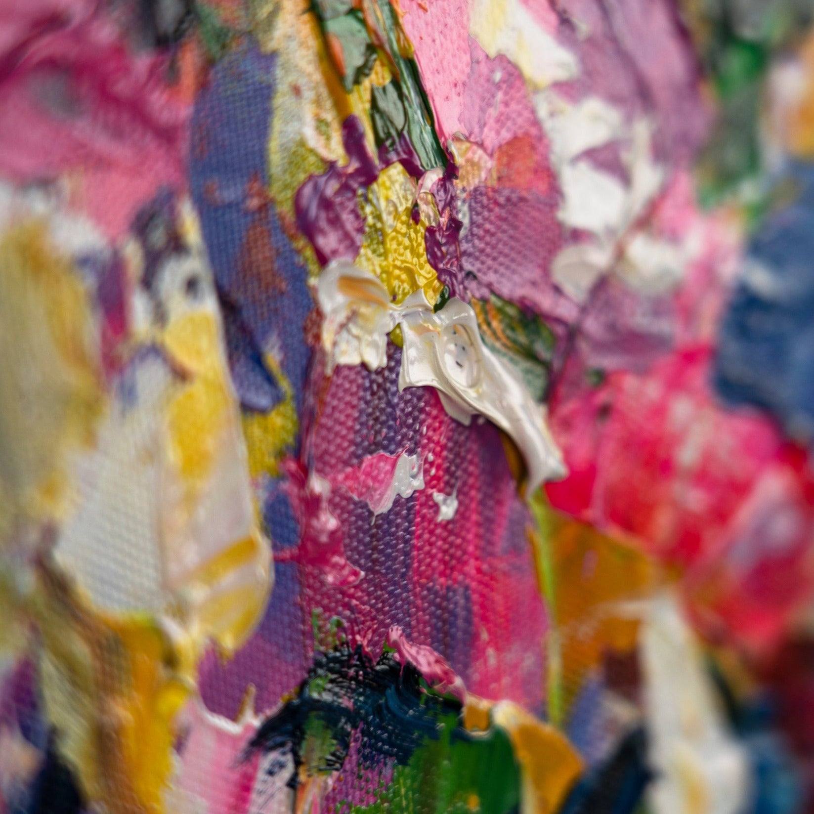 Disfrute de esta hermosa obra de arte sobre lienzo con un motivo floral vibrante. Esta pieza completamente hecha a mano destaca por su textura detallada y su paleta de colores vivos. Cada flor ha sido cuidadosamente pintada con acrílico, creando una experiencia única y texturizada que traerá la sensación de un jardín floreciente a su hogar. El marco adecuado completa la obra, integrándose armónicamente en su decoración.