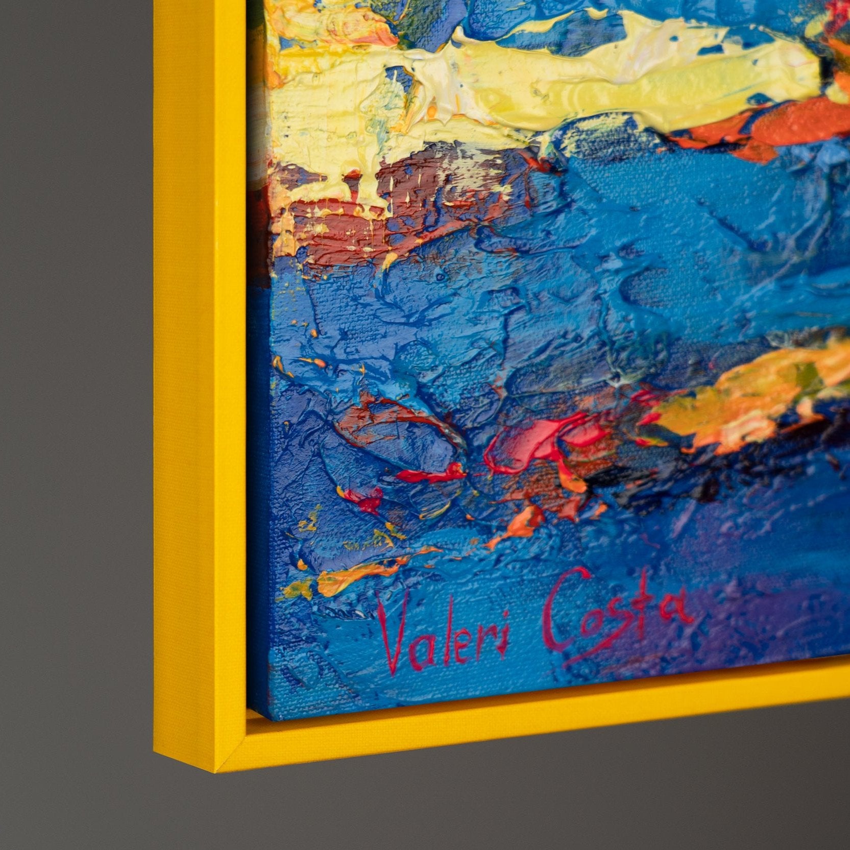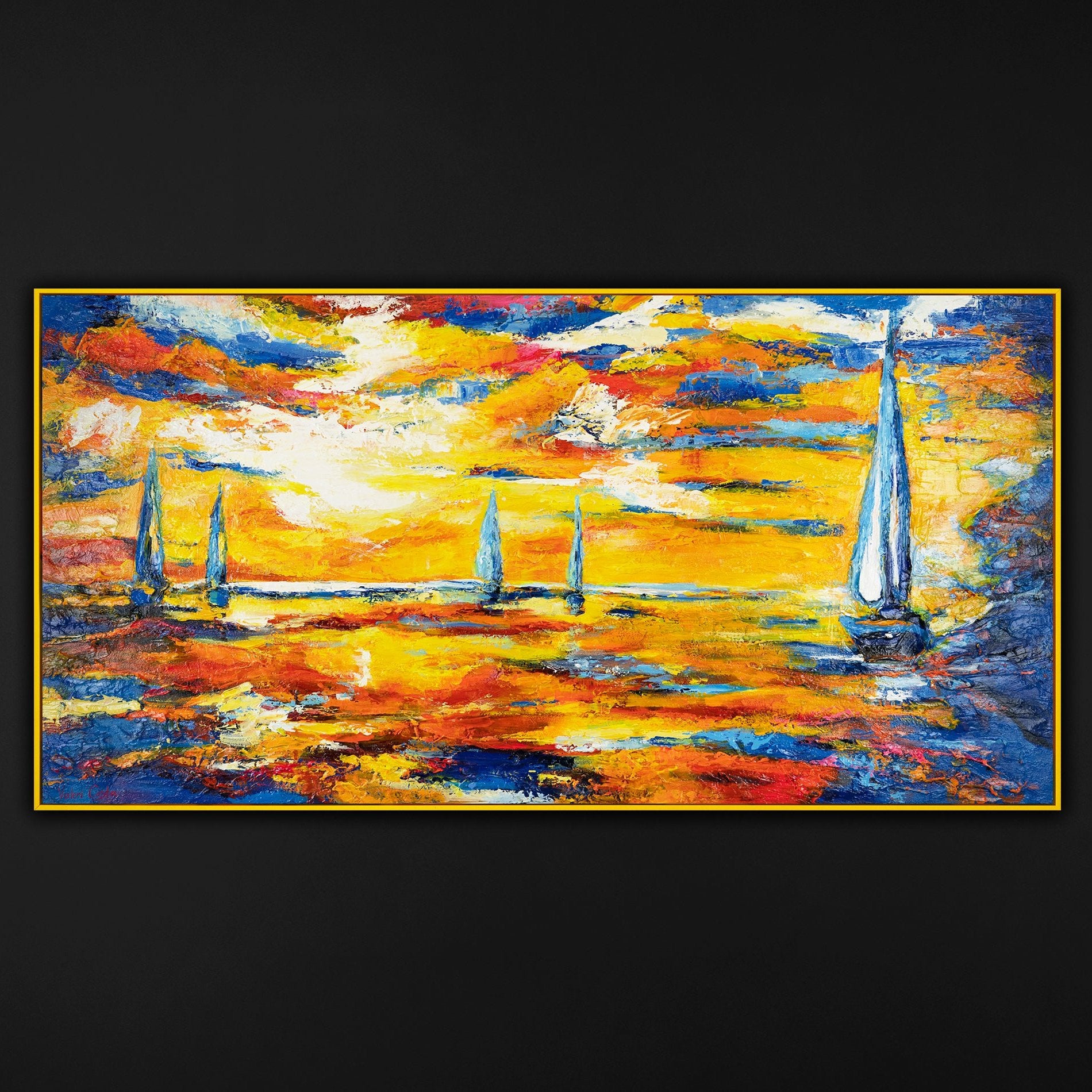 Esta pintura acrílica hecha a mano captura la belleza dinámica del mar en un estilo abstracto lleno de vida y color. Los tonos vibrantes y las pinceladas expresivas reflejan la energía y el movimiento de las olas y del cielo, creando una atmósfera llena de luz y emoción.