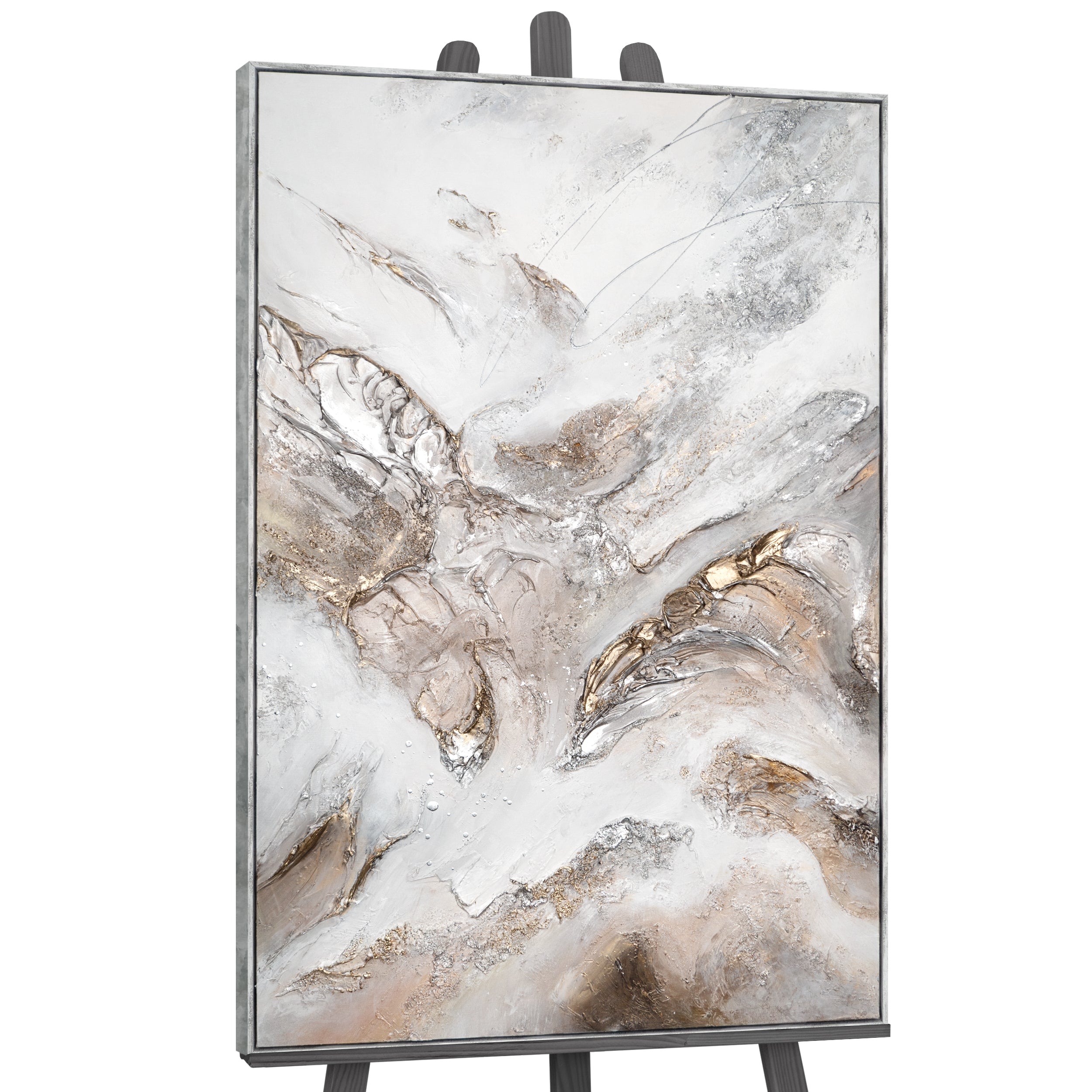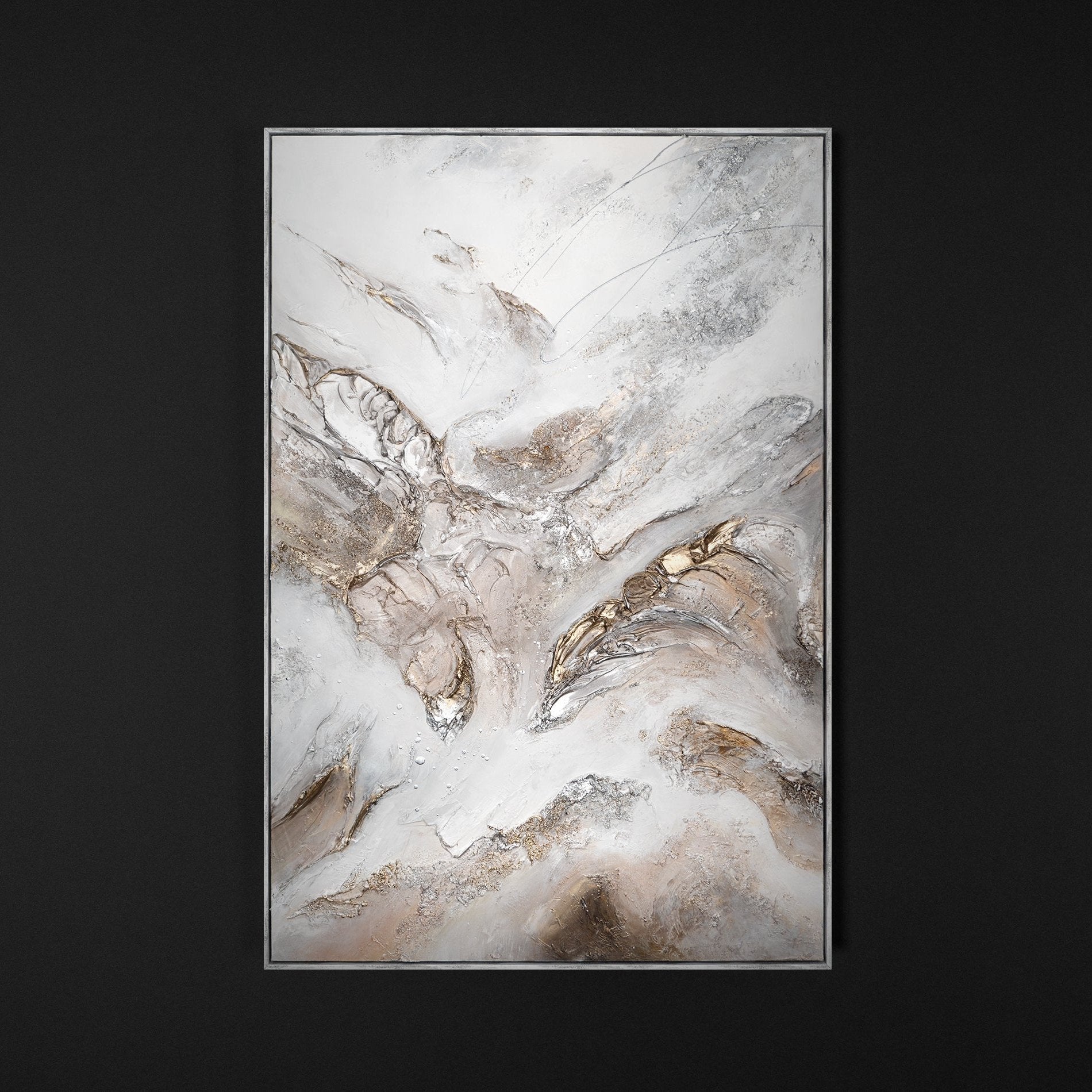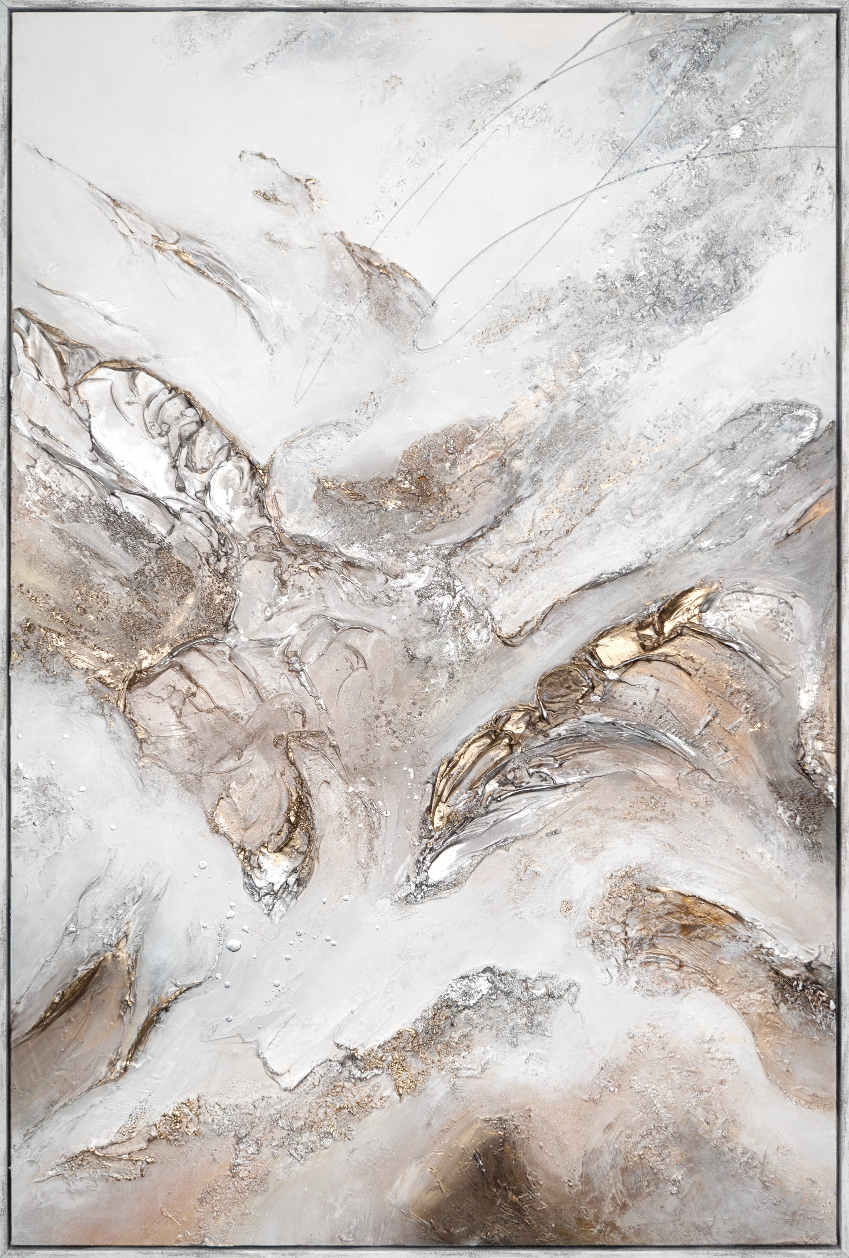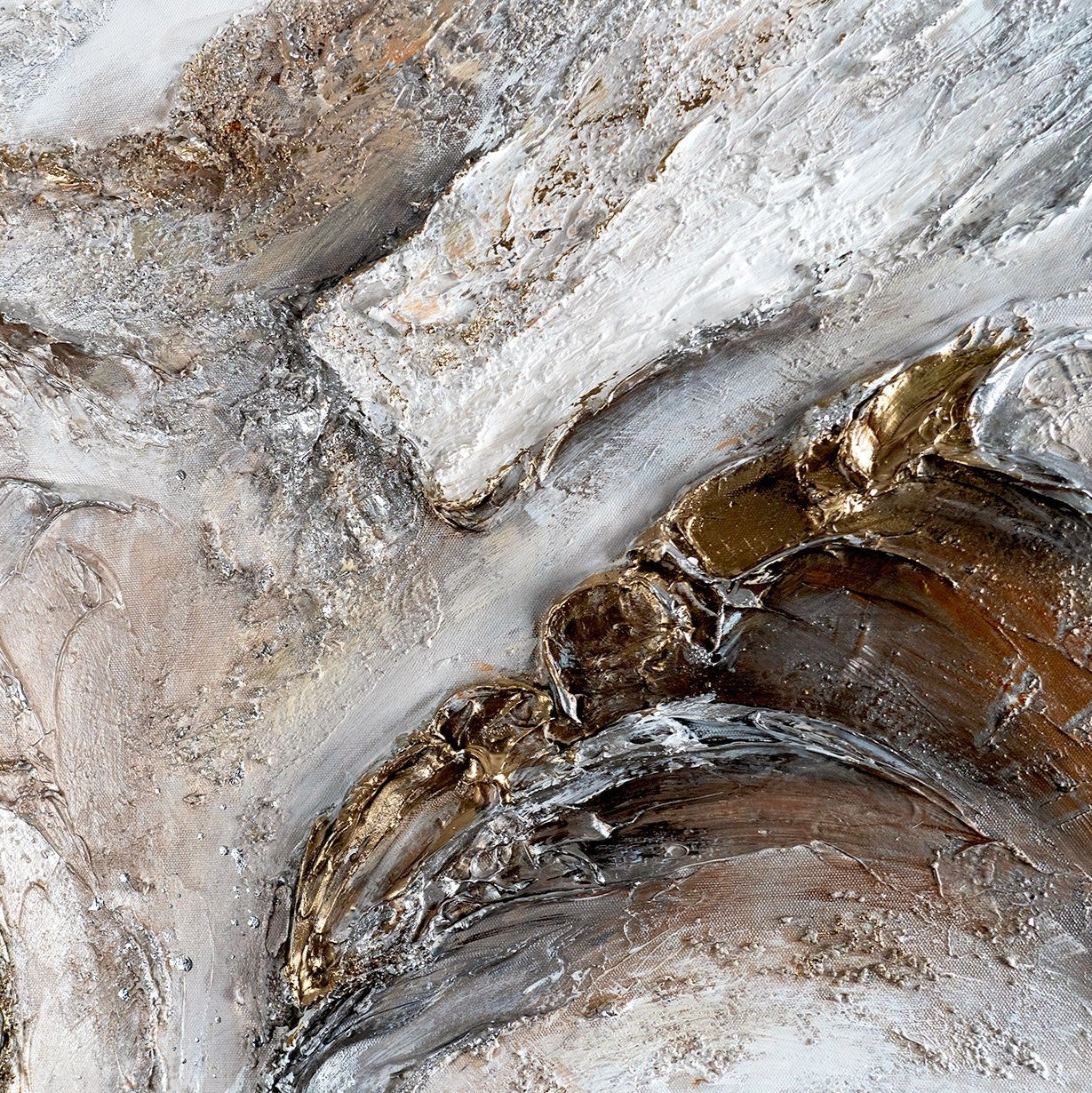 • Strukturdetails in Gold und Grau auf der Leinwand