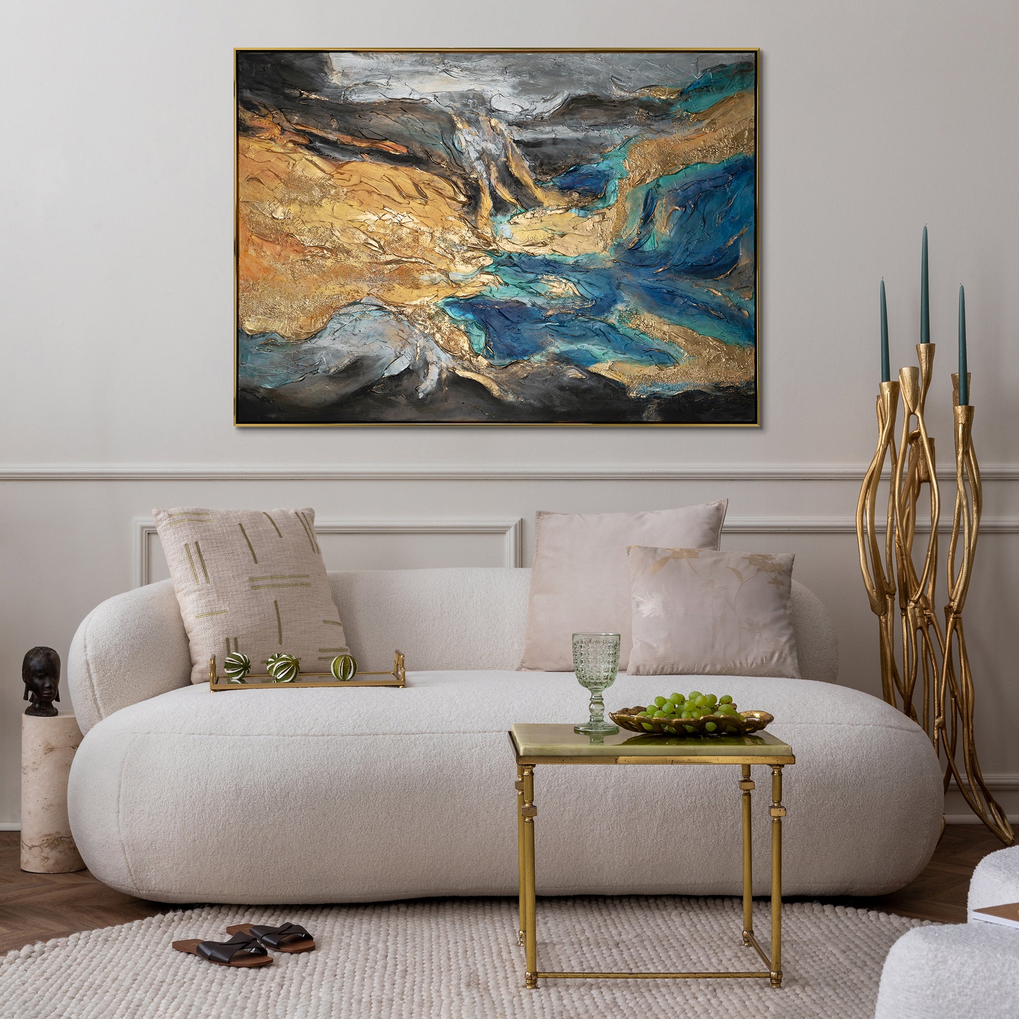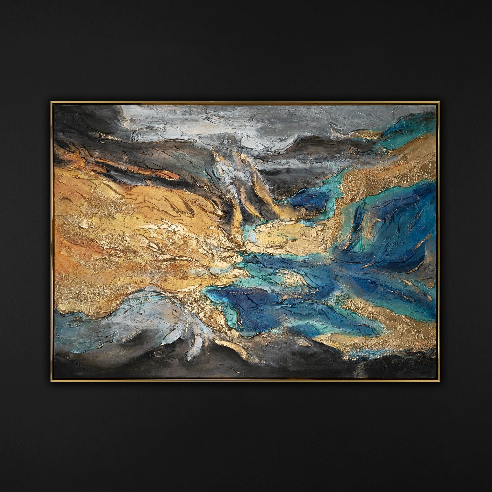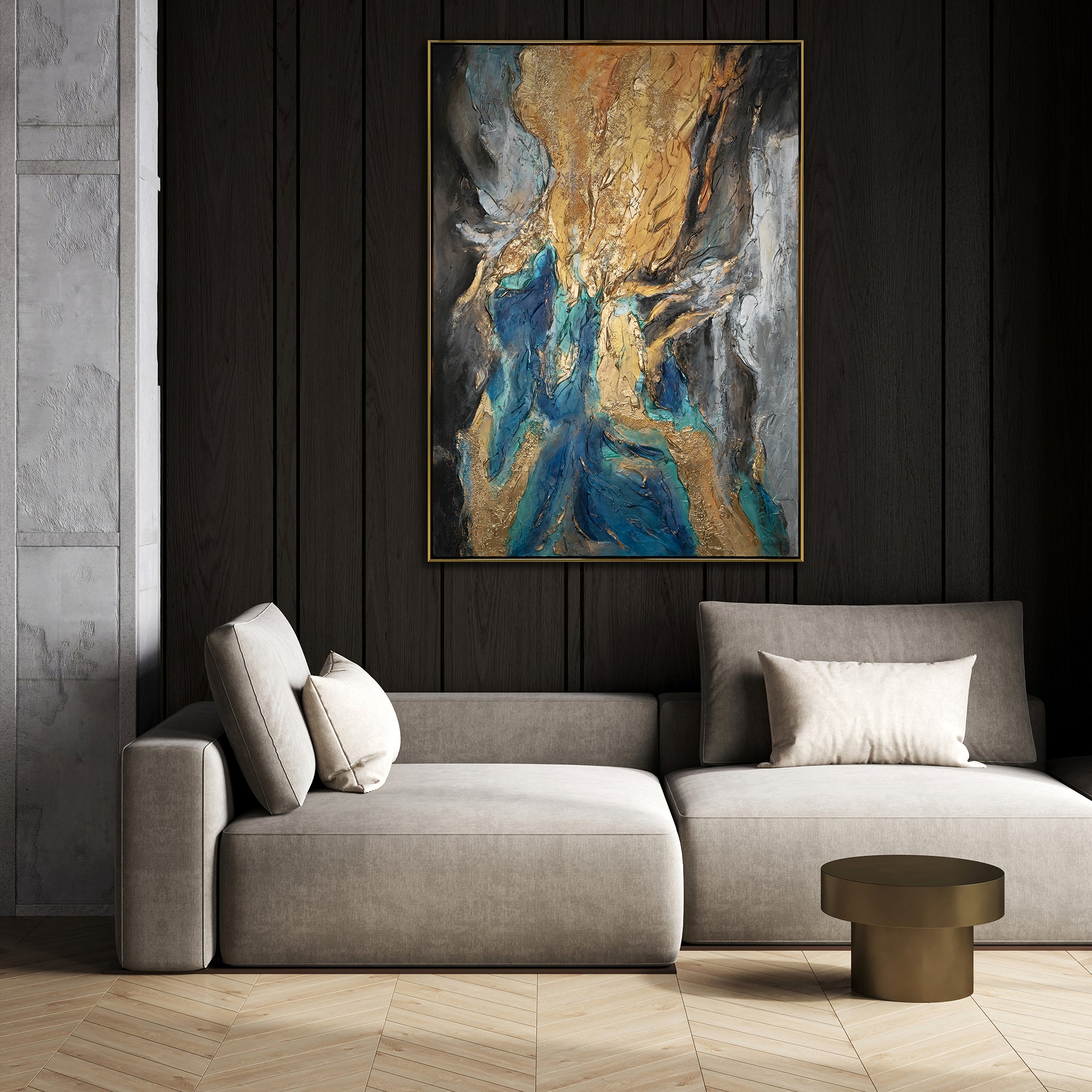 Abstraktes Gemälde mit Goldakzenten mit Rahmen Abstrakte Symphonie