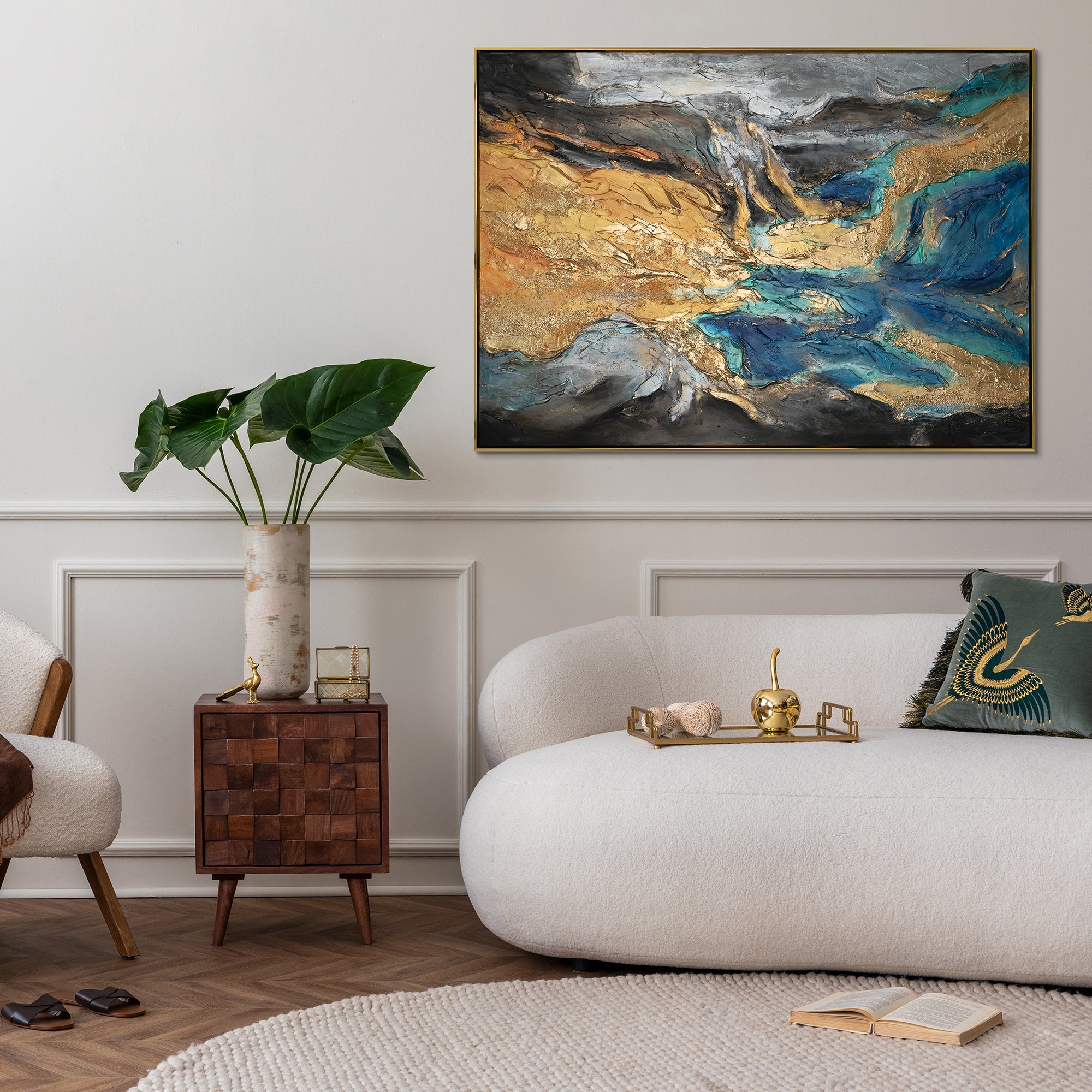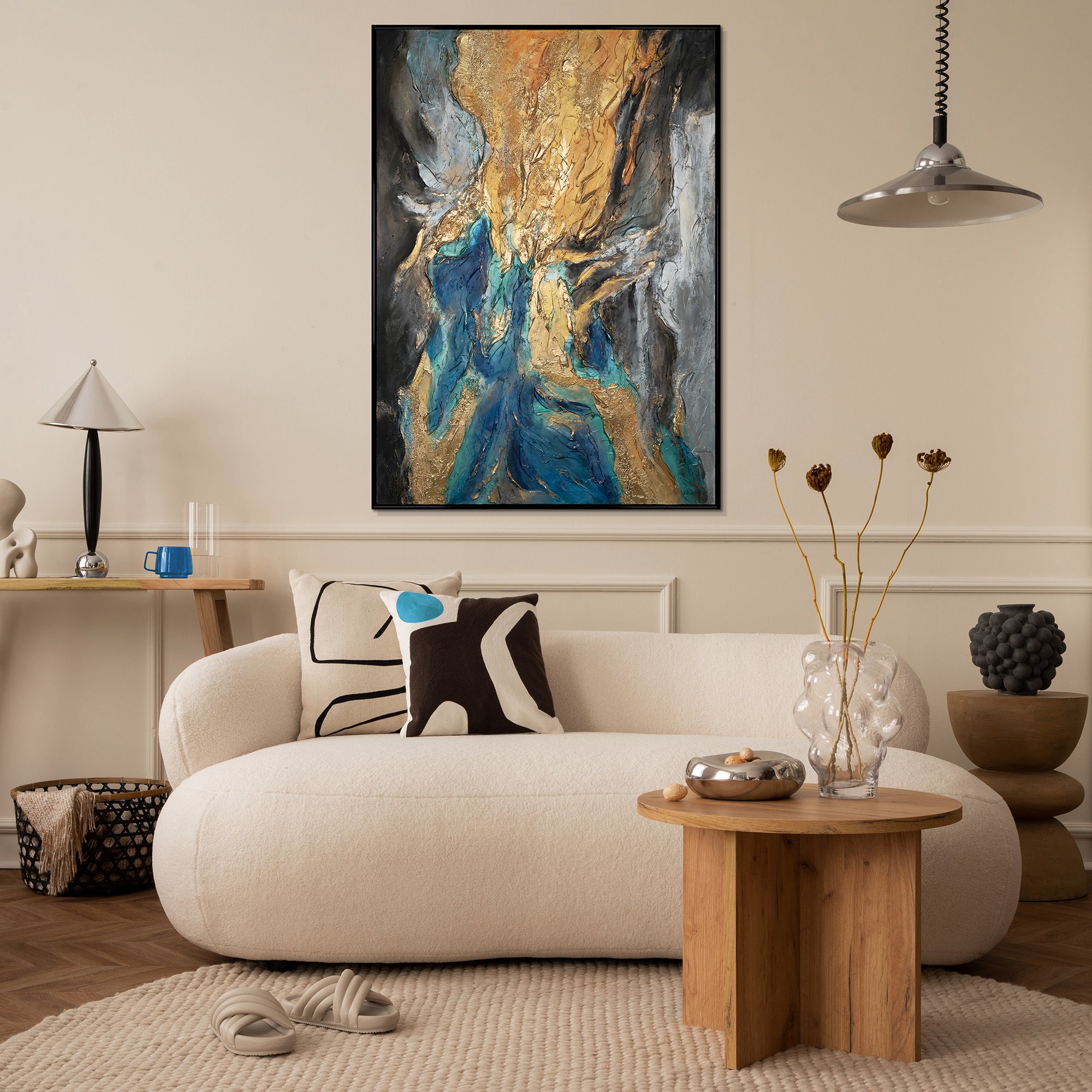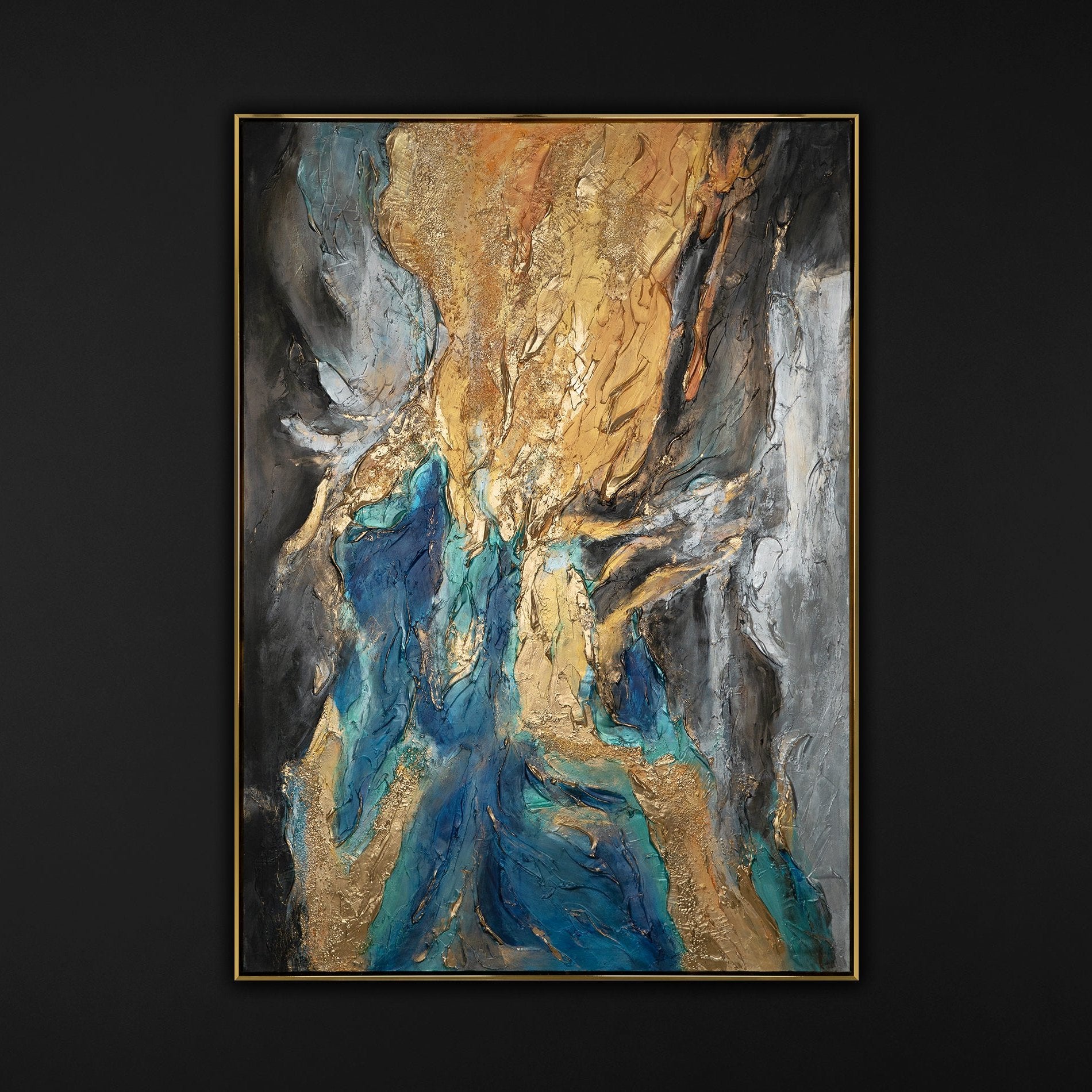 Abstraktes Gemälde mit Goldakzenten mit Rahmen Abstrakte Symphonie