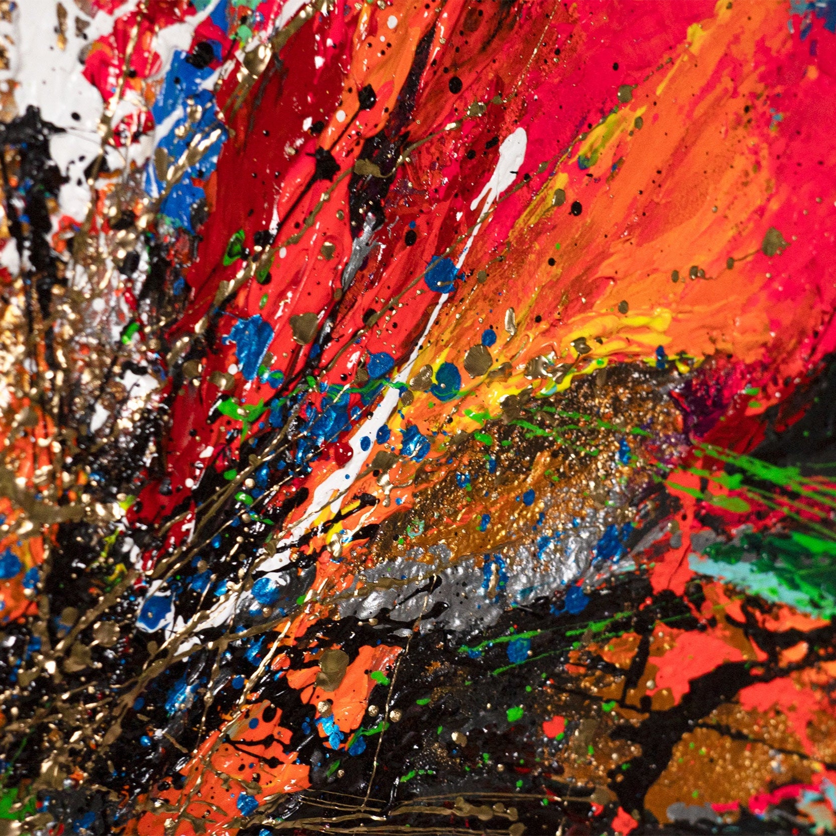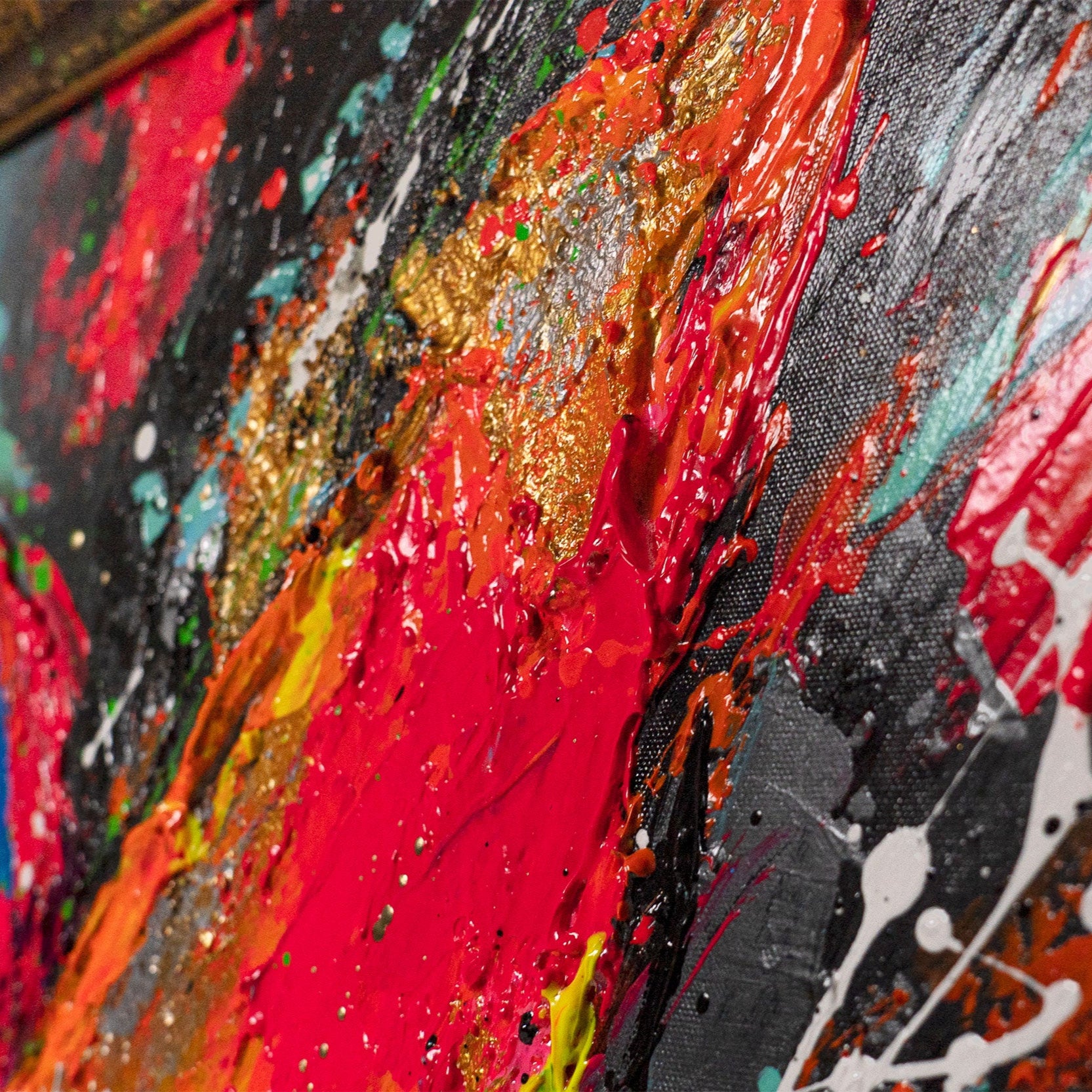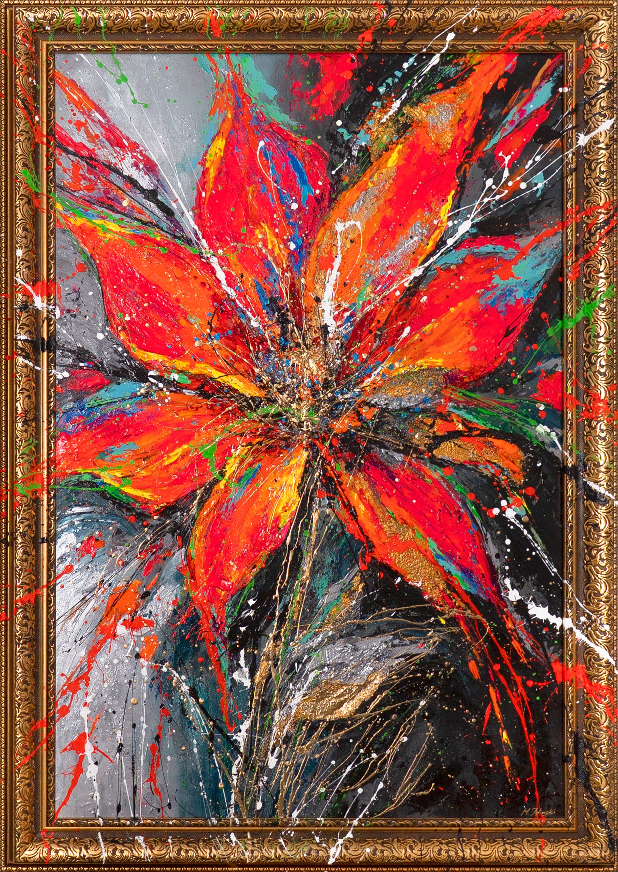 Farbexplosion auf Leinwand – Modernes Gemälde mit Rahmen "Kraft der Blüte"