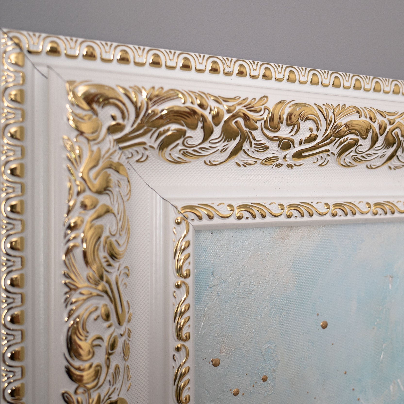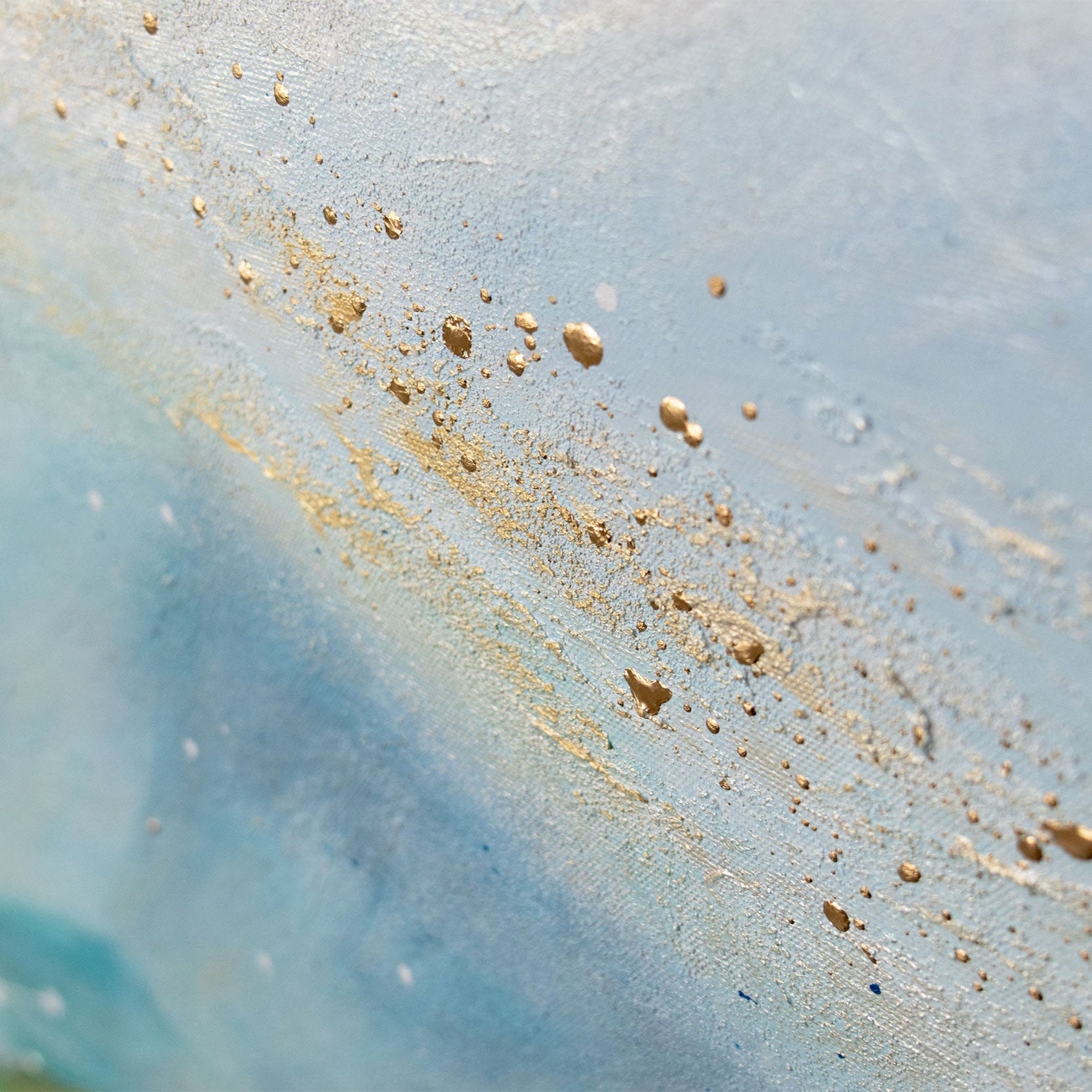 „Sanftes Licht“ ist ein poetisches abstraktes Landschaftsbild, das mit sanften Blau- und Goldtönen Ruhe und Harmonie ausstrahlt. Die dynamische Maltechnik fängt die Bewegung von Himmel und Erde ein und erschafft ein Gefühl von Weite und Gelassenheit.
