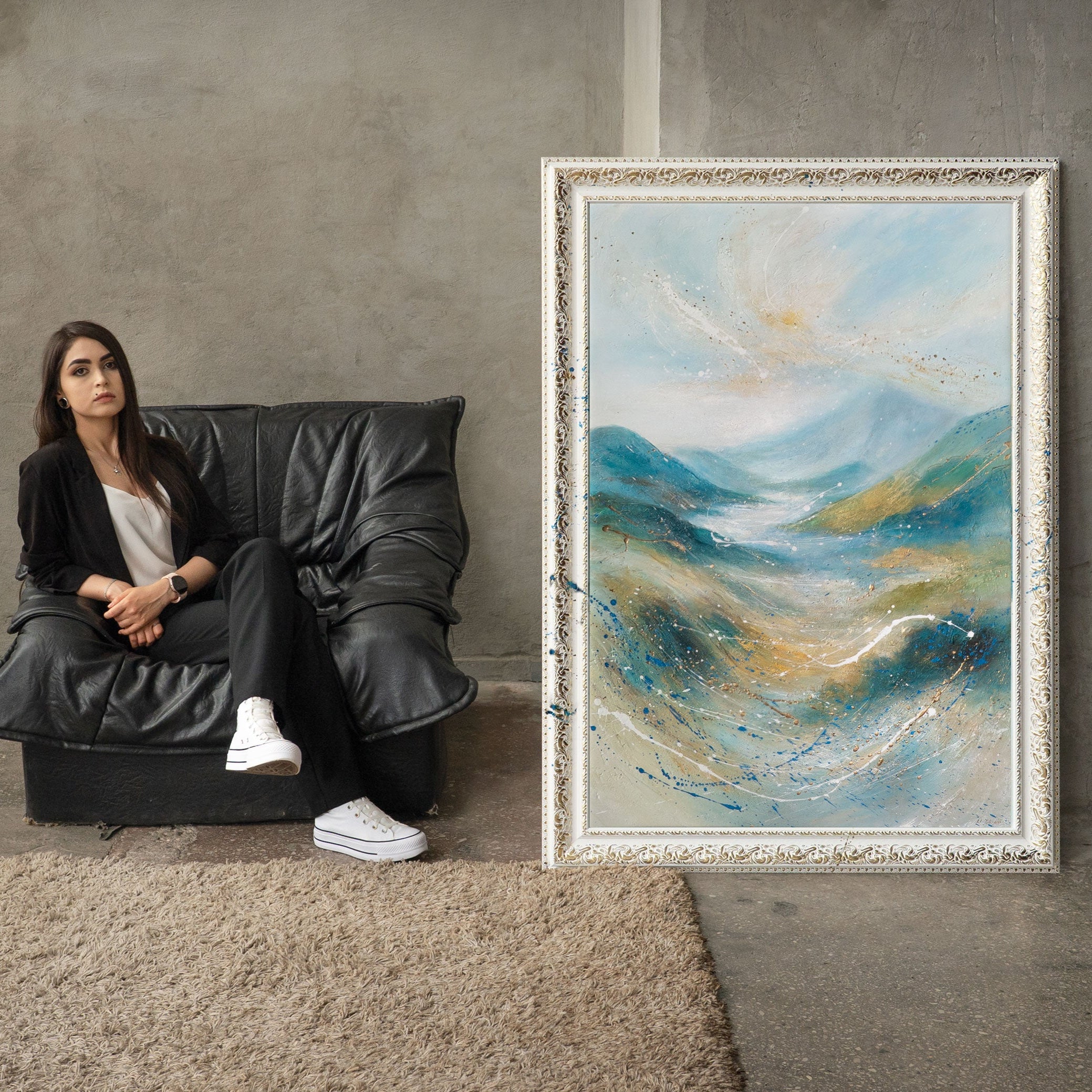 • Handgemalte Abstrakte Landschaft „Sanftes Licht“ – Moderne Wandbilder Natur
