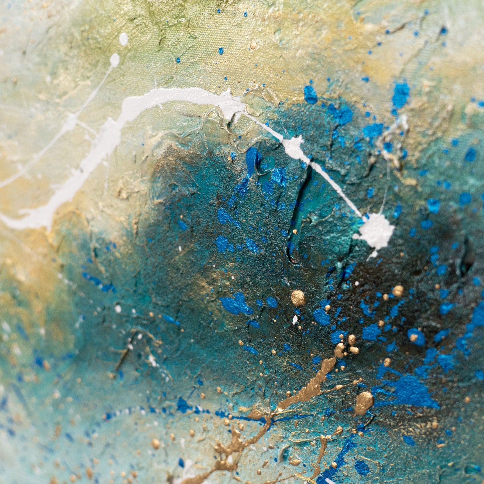 Dieses Kunstwerk verbindet moderne Abstraktion mit natürlicher Schönheit – die ideale Wahl für Liebhaber von moderne wandbildern, die eine besondere wanddeko wohnzimmer oder ein beruhigendes natur gemälde suchen.