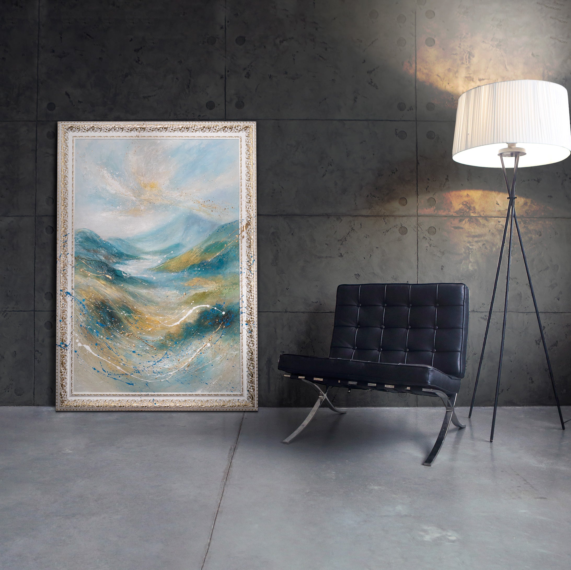 Handgemalte Abstrakte Landschaft „Sanftes Licht“ – Moderne Wandbilder Natur