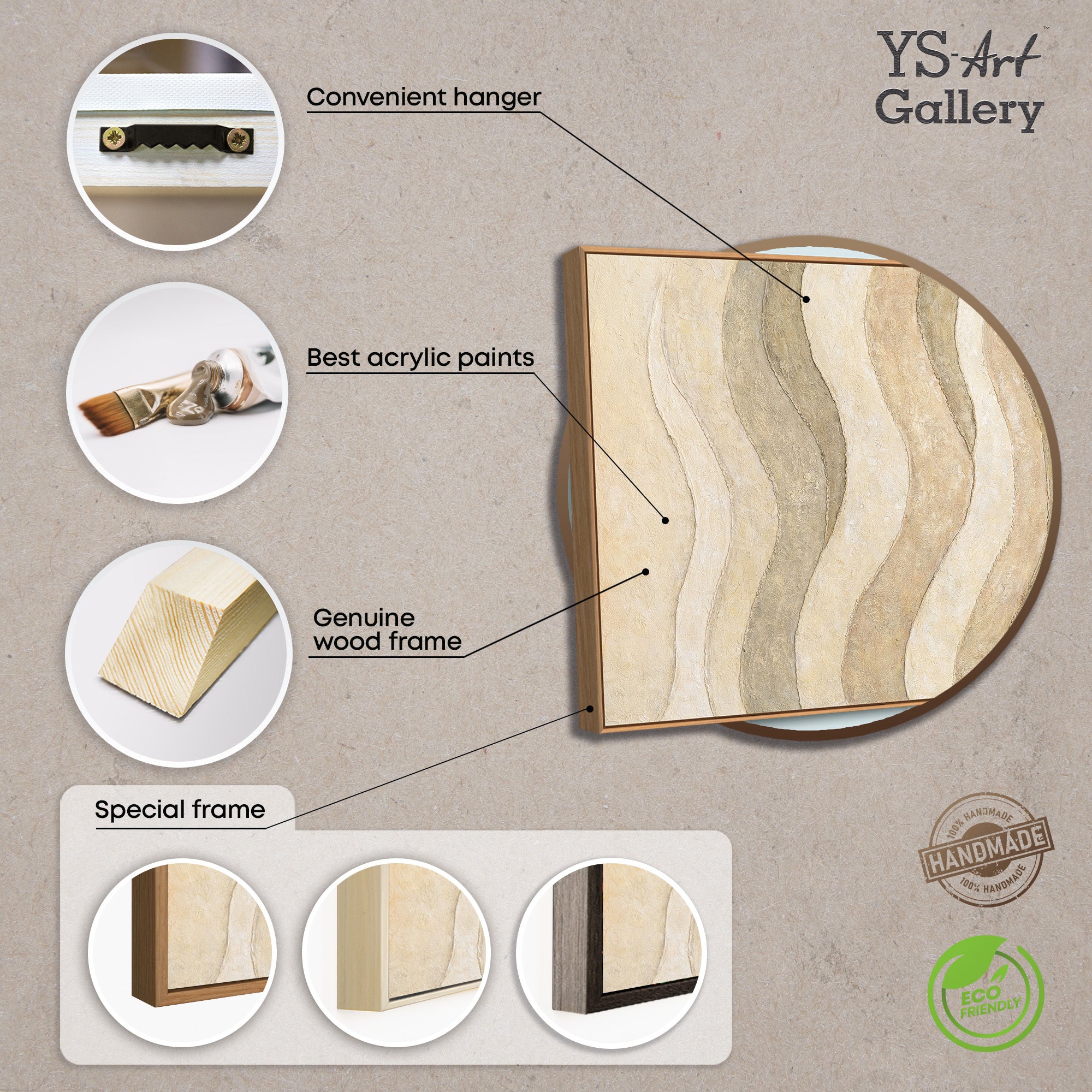 „Schatten und Sand“ vereint Wärme, Ruhe und natürliche Bewegung in einem kunstvollen Spiel aus Linien und Texturen. Die weichen, wellenförmigen Strukturen schaffen eine harmonische Wirkung – ideal für alle, die ein modernes Kunstwerk suchen, das zugleich Ausgeglichenheit und stilvolle Natürlichkeit ausstrahlt.