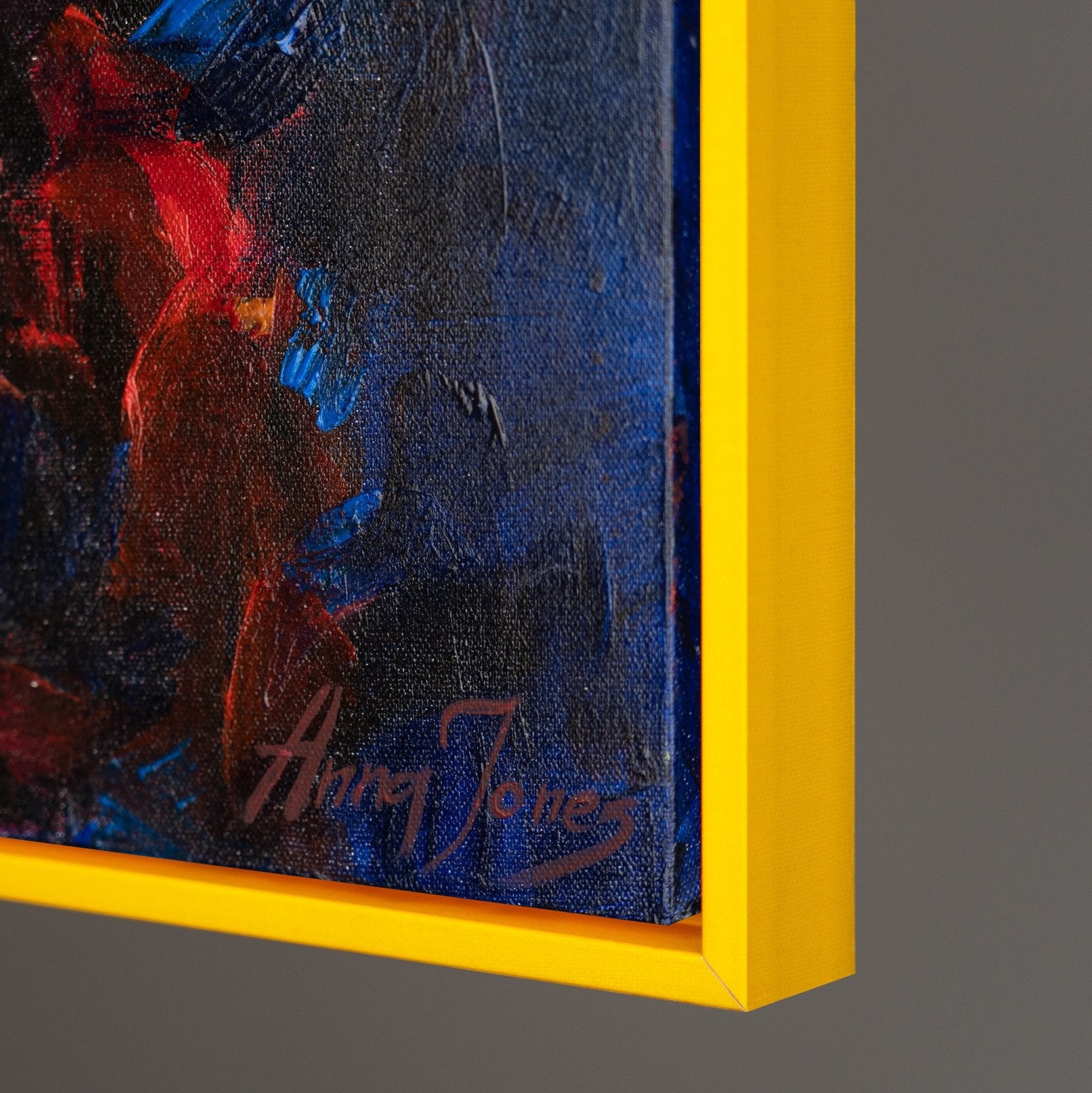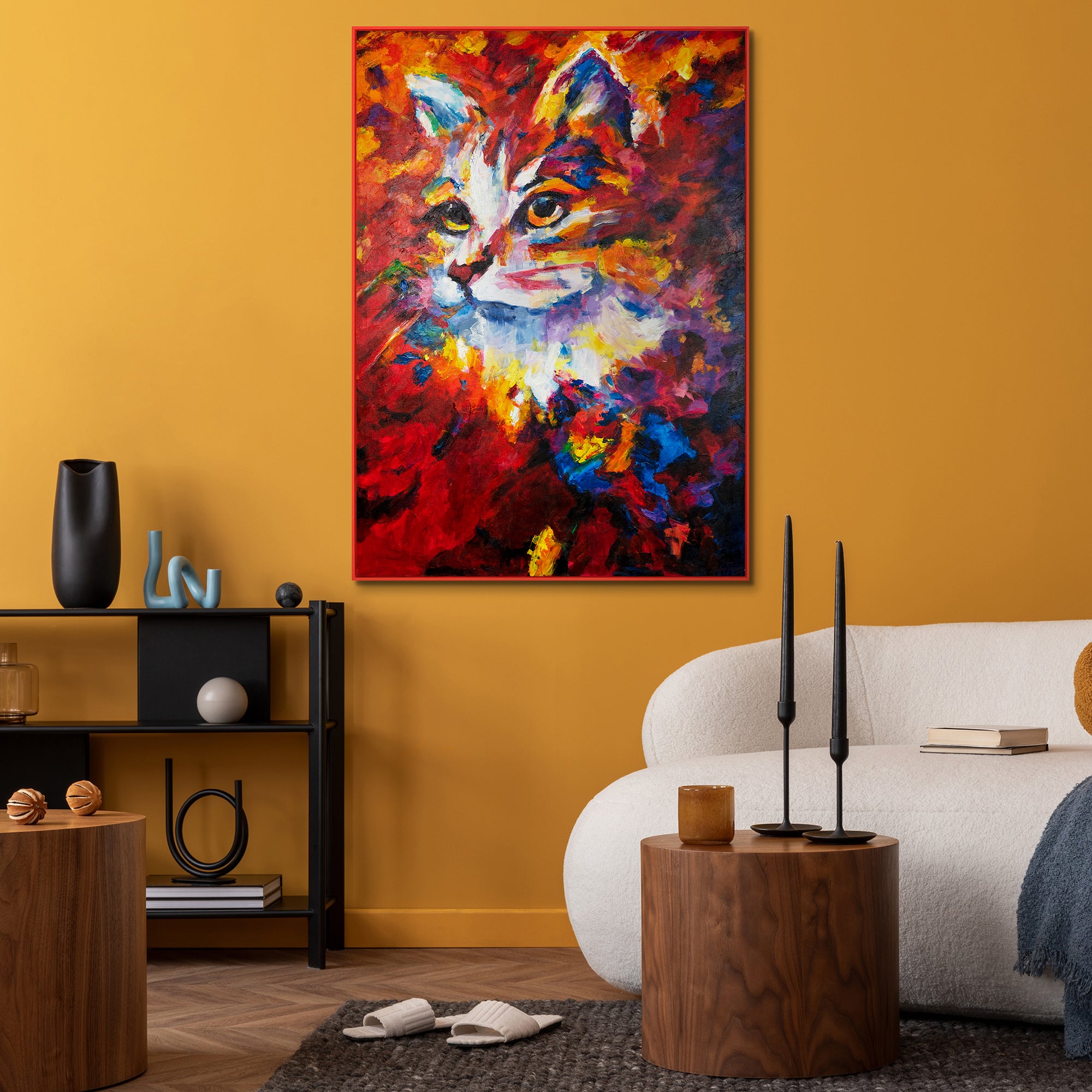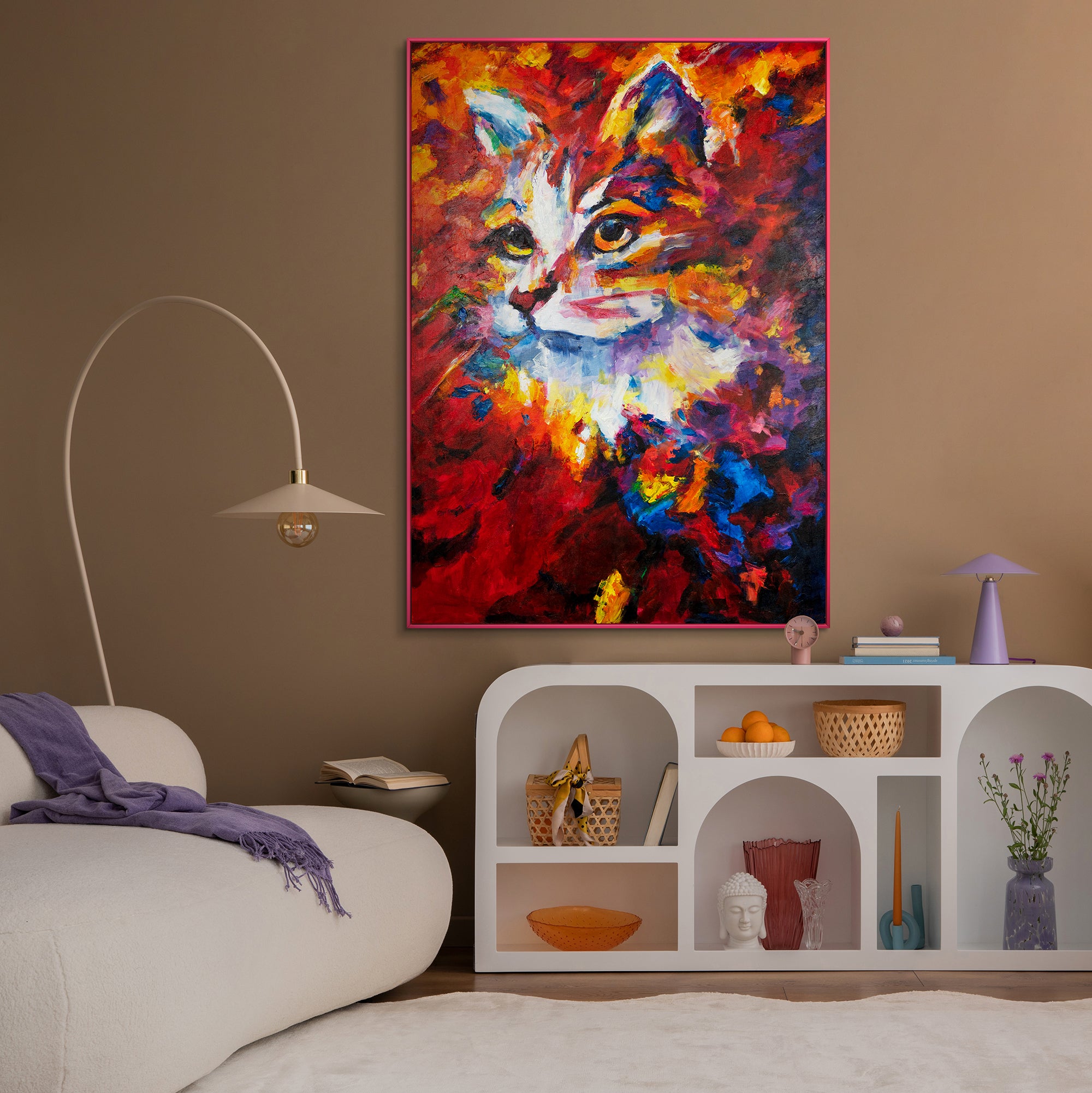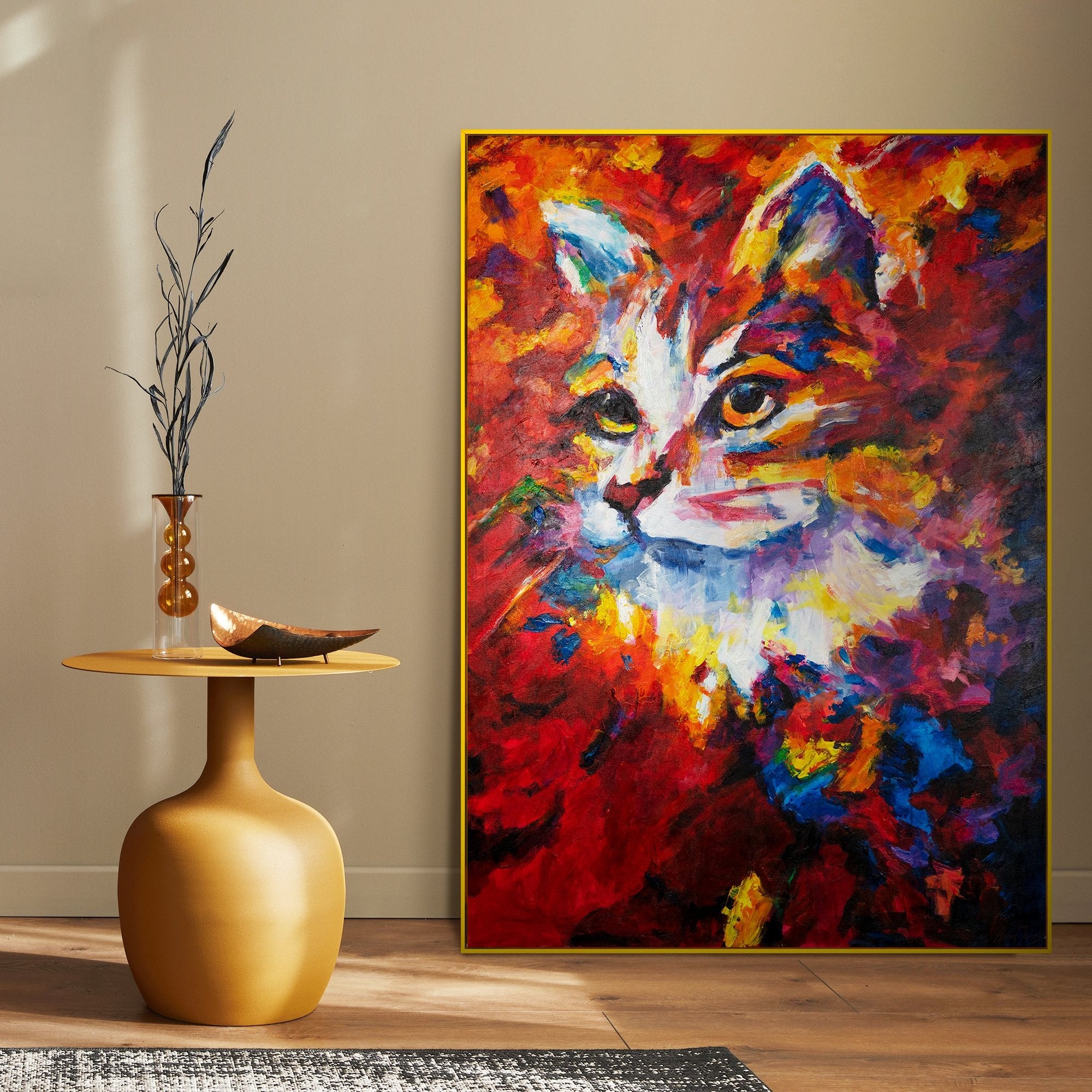 Diese handgemalte Leinwand bringt Farbe und Lebendigkeit in jeden Raum und ist perfekt für Tierliebhaber und moderne Wohnräume.