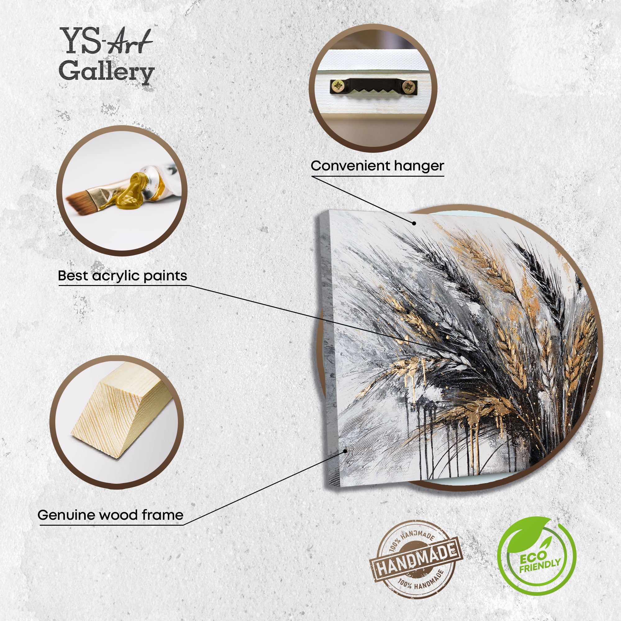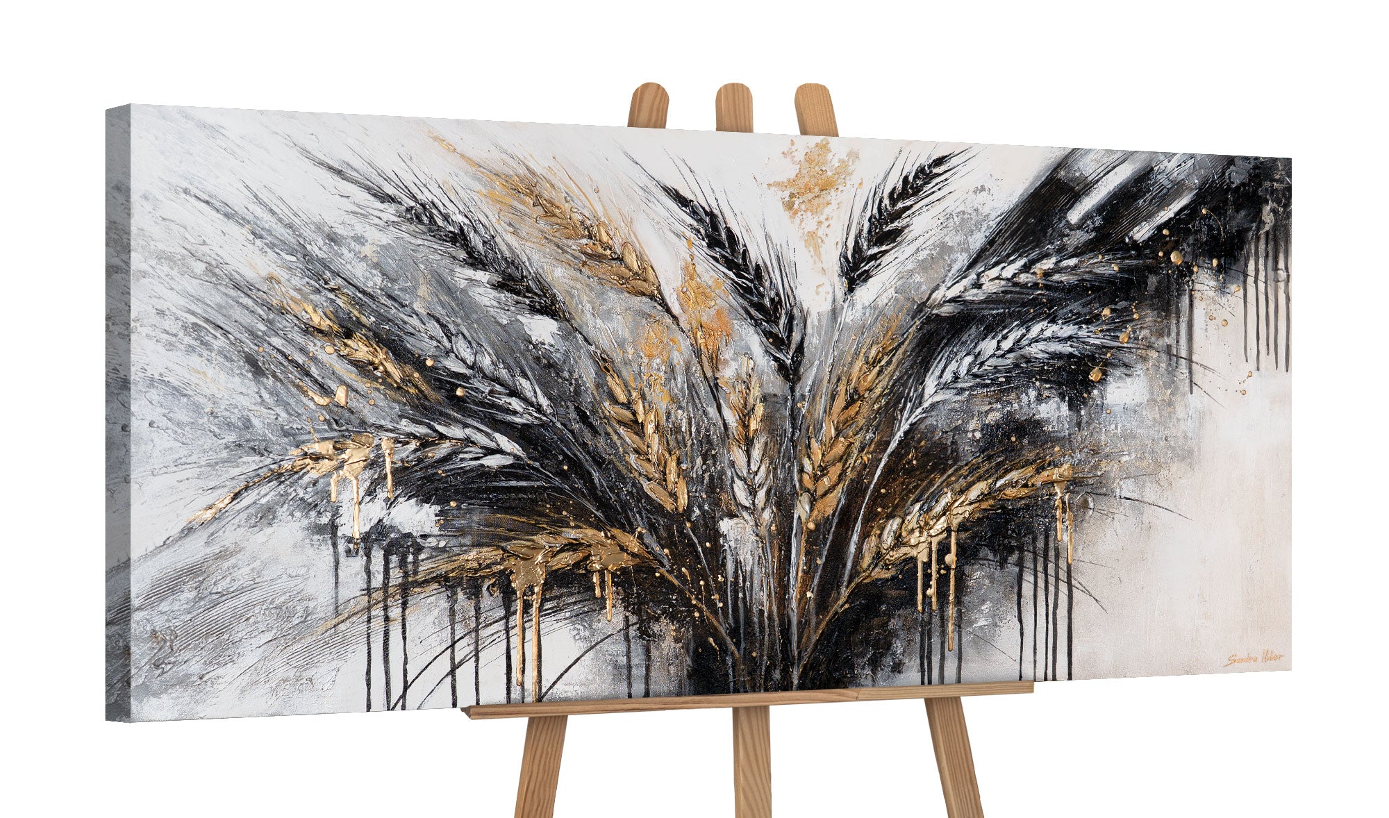 • Handgemaltes Acrylbild auf Leinwand mit Ährenmotiv in Gold "Stacheln" 115x50cm
