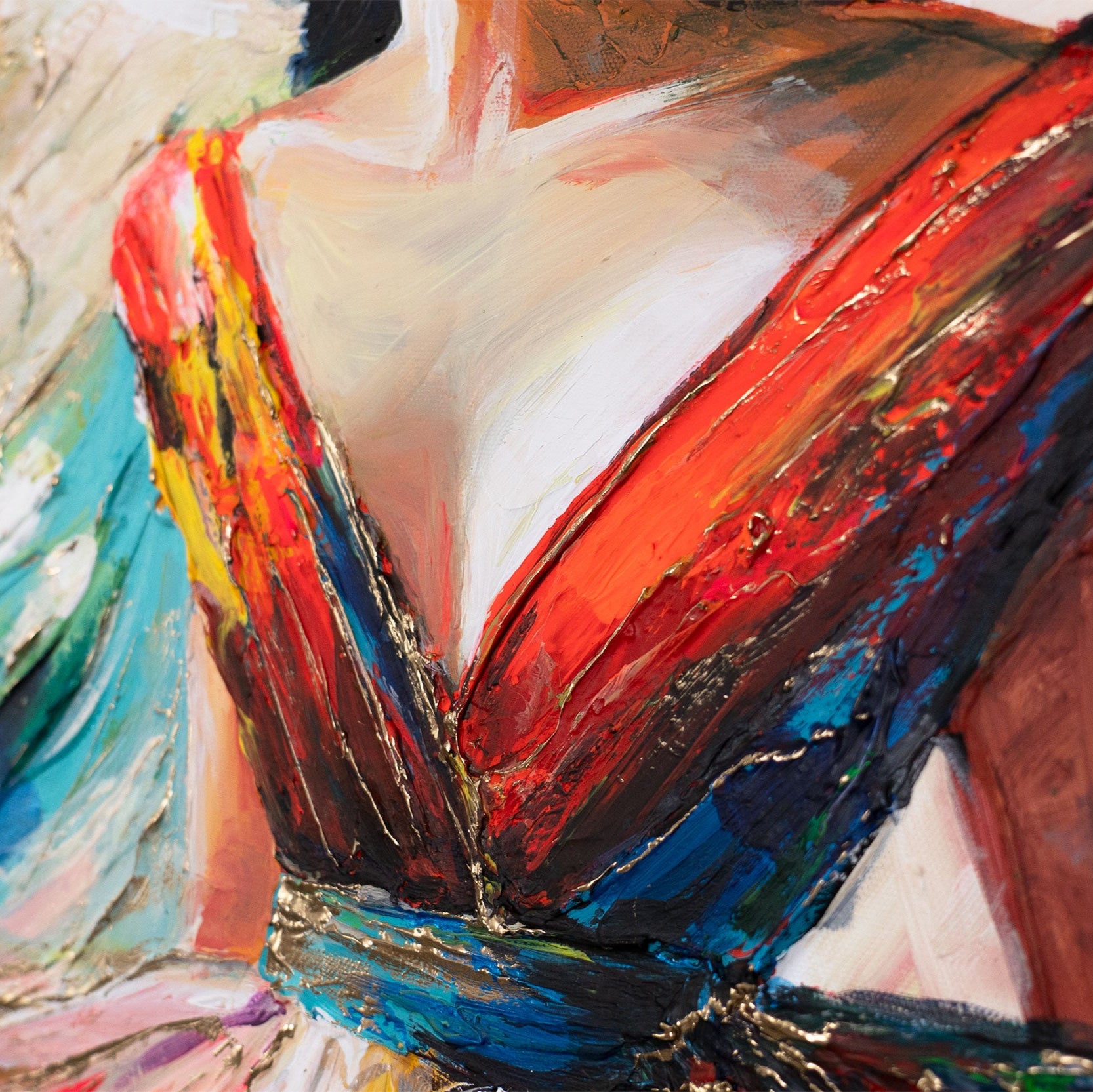 Dieses handgemalte Acrylbild ist ein eleganter Eyecatcher für moderne Interieurs. Ideal als Wandbild für Wohnzimmer, Ankleidezimmer oder Flur – für alle, die weibliche Anmut und Farbe in ihre Räume bringen möchten.