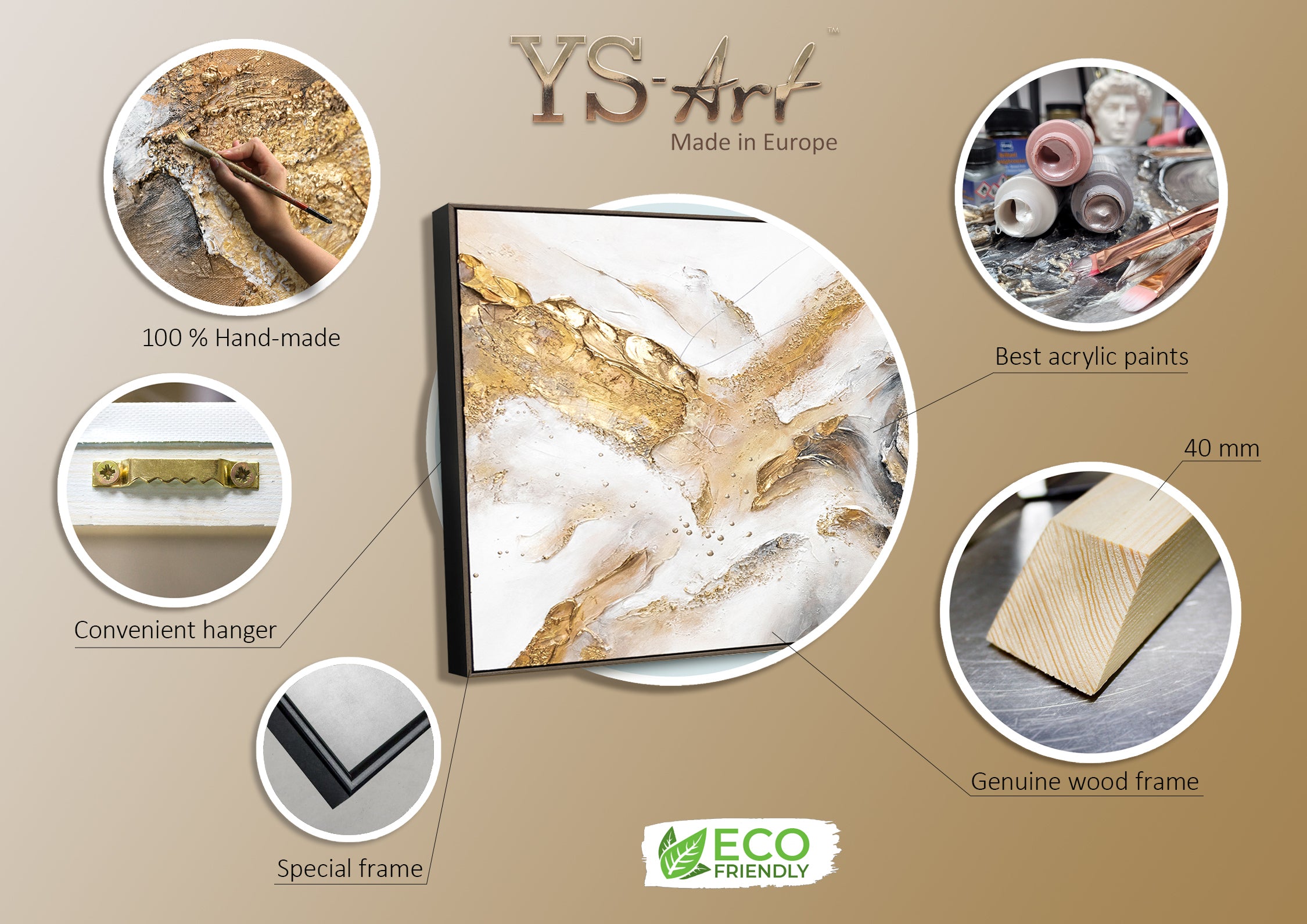 • Handgemaltes Acrylbild Gold Beige im Wohnzimmer moderne Kunst