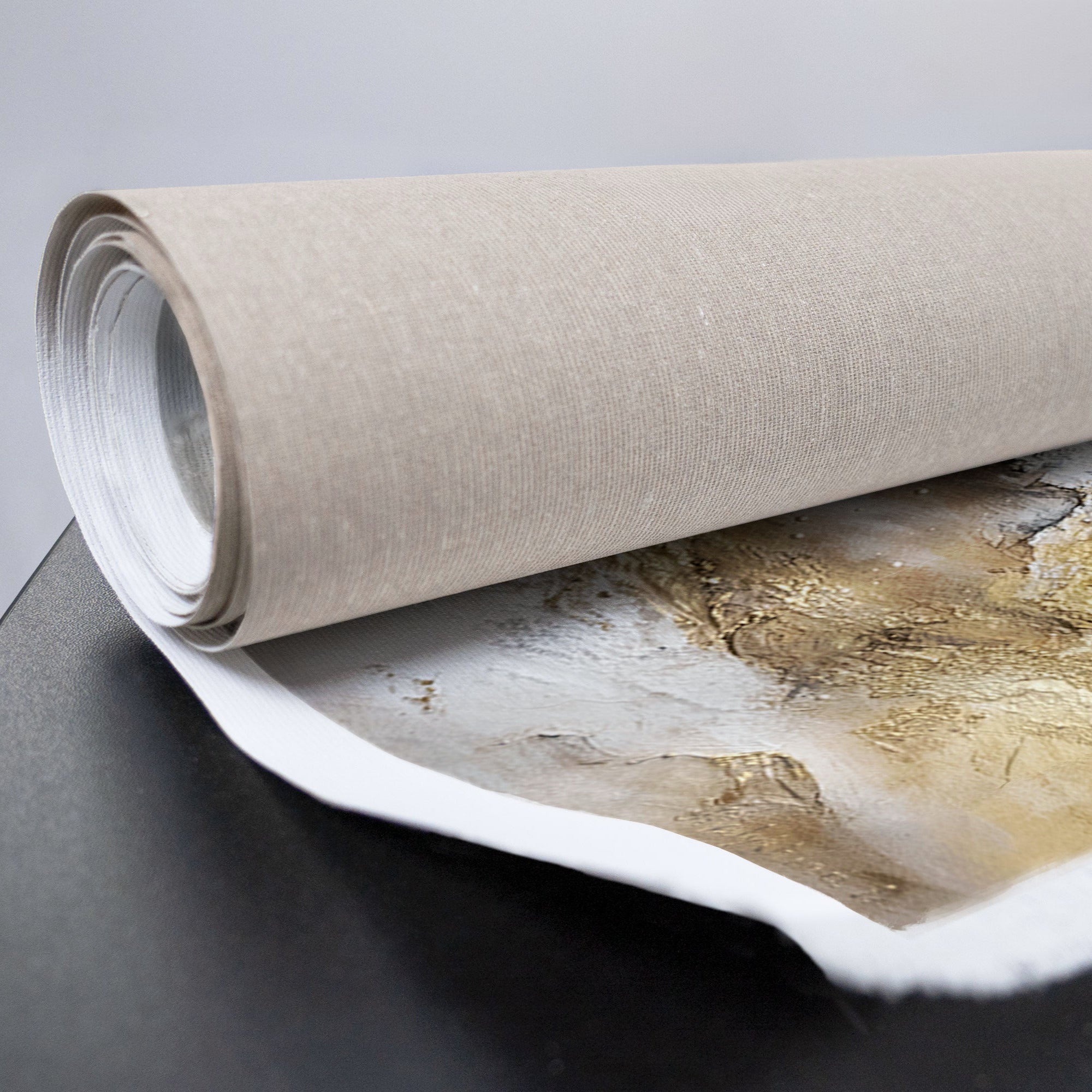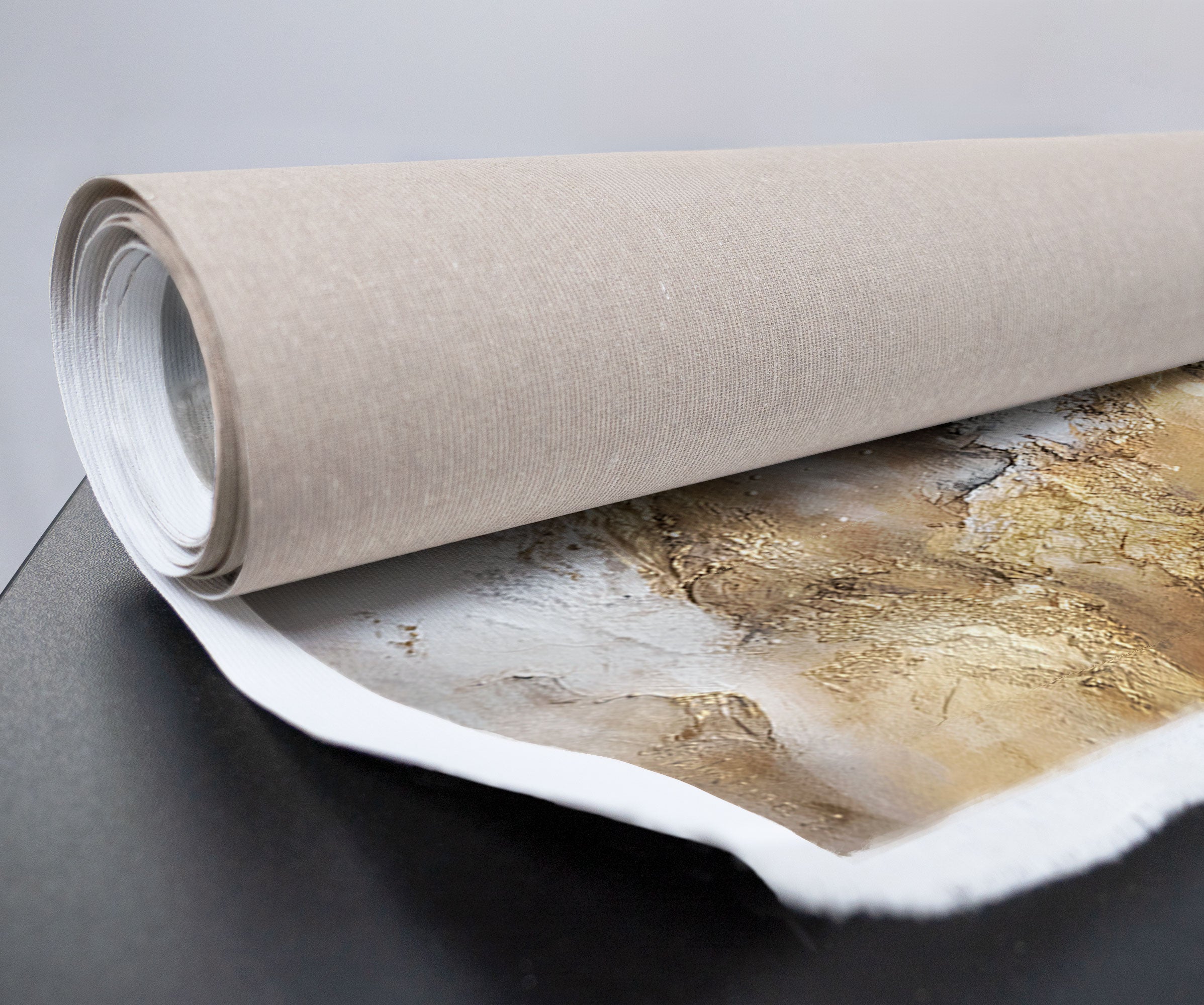 • Aufgerollte Leinwand Acrylbild Gold Beige Strukturmalerei