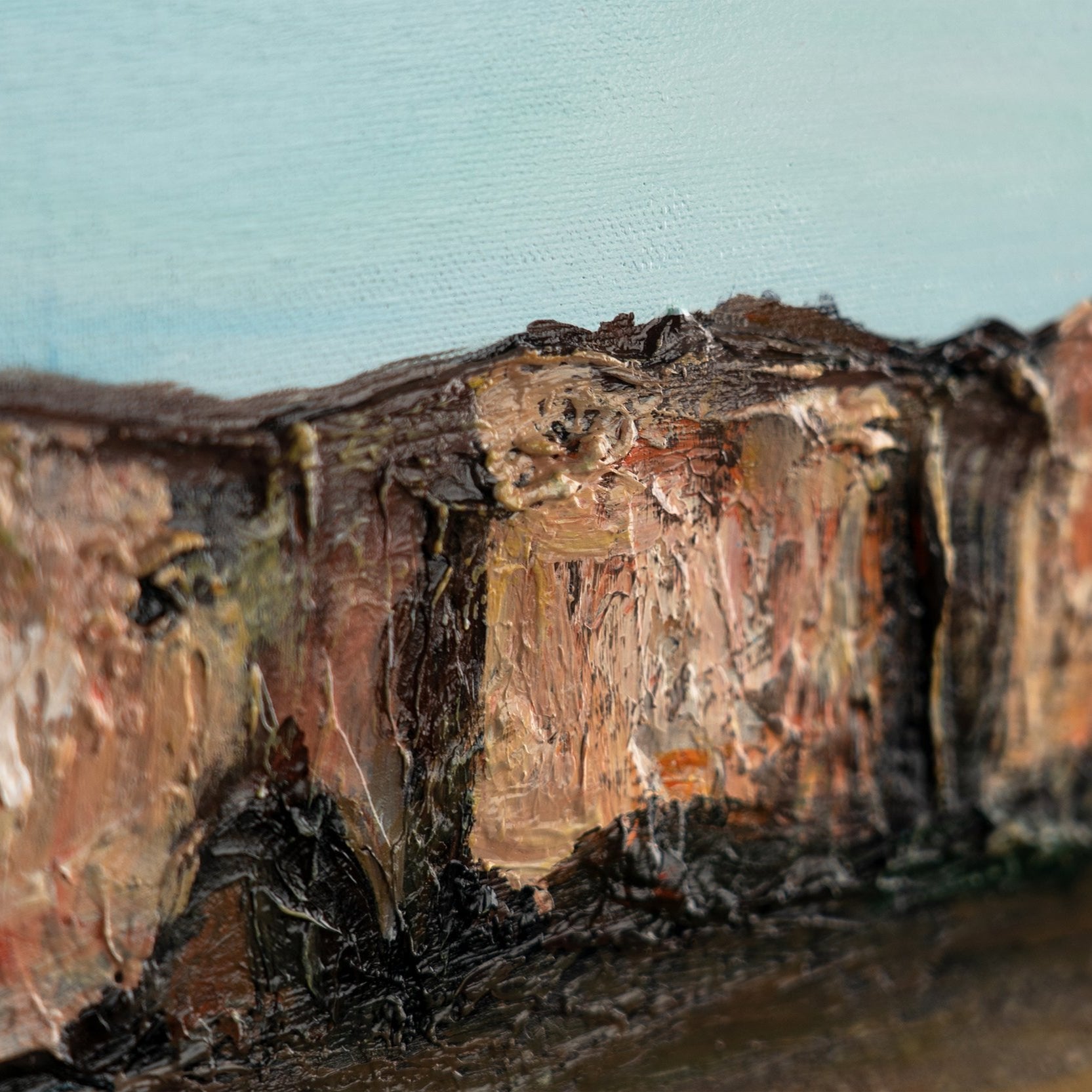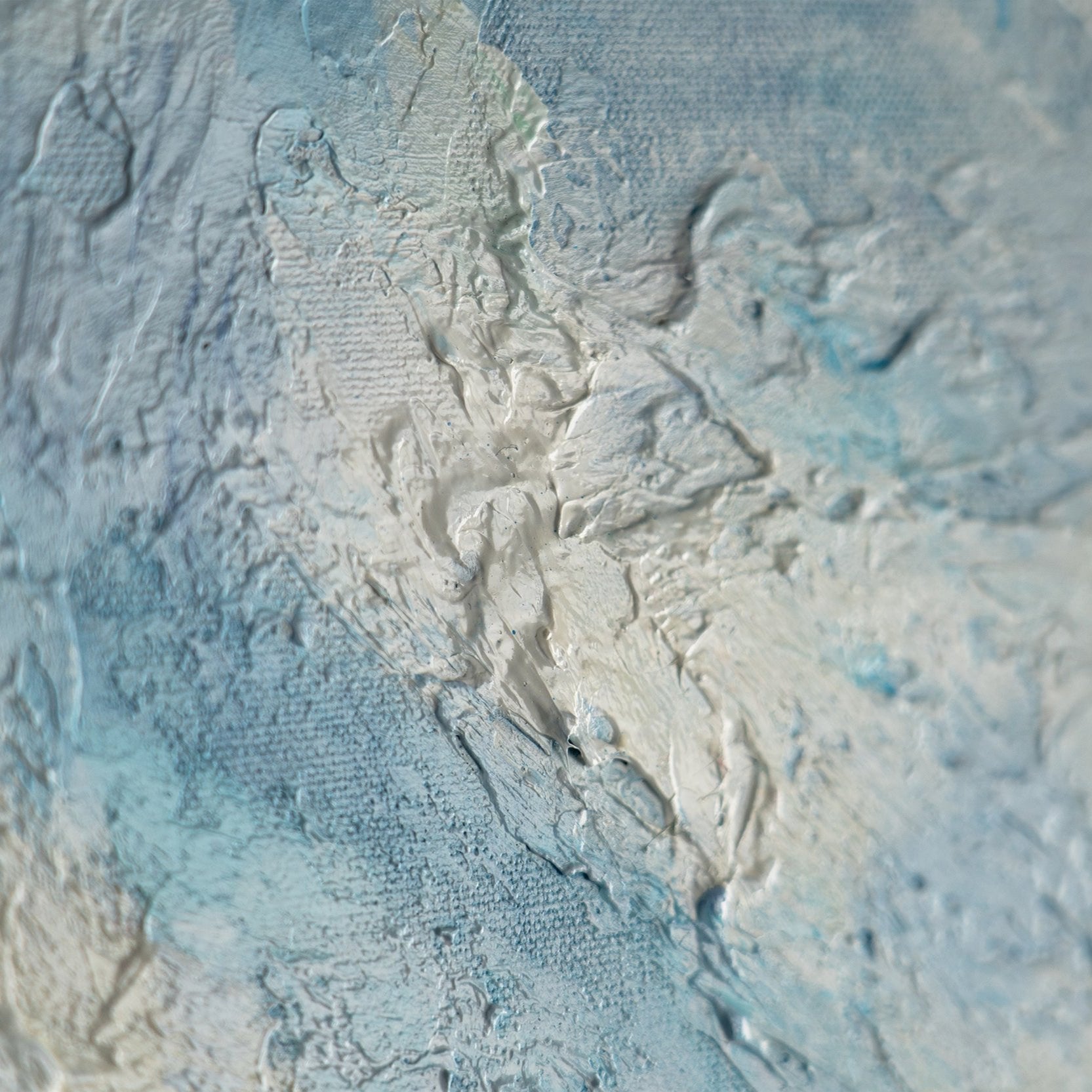 Mit seinen leuchtenden Blautönen und dezenten Erdtönen fügt sich dieses Kunstwerk perfekt in moderne Wohnräume ein. Es ist die ideale Wahl, um Ihrem Zuhause eine künstlerische und zugleich beruhigende Note zu verleihen.