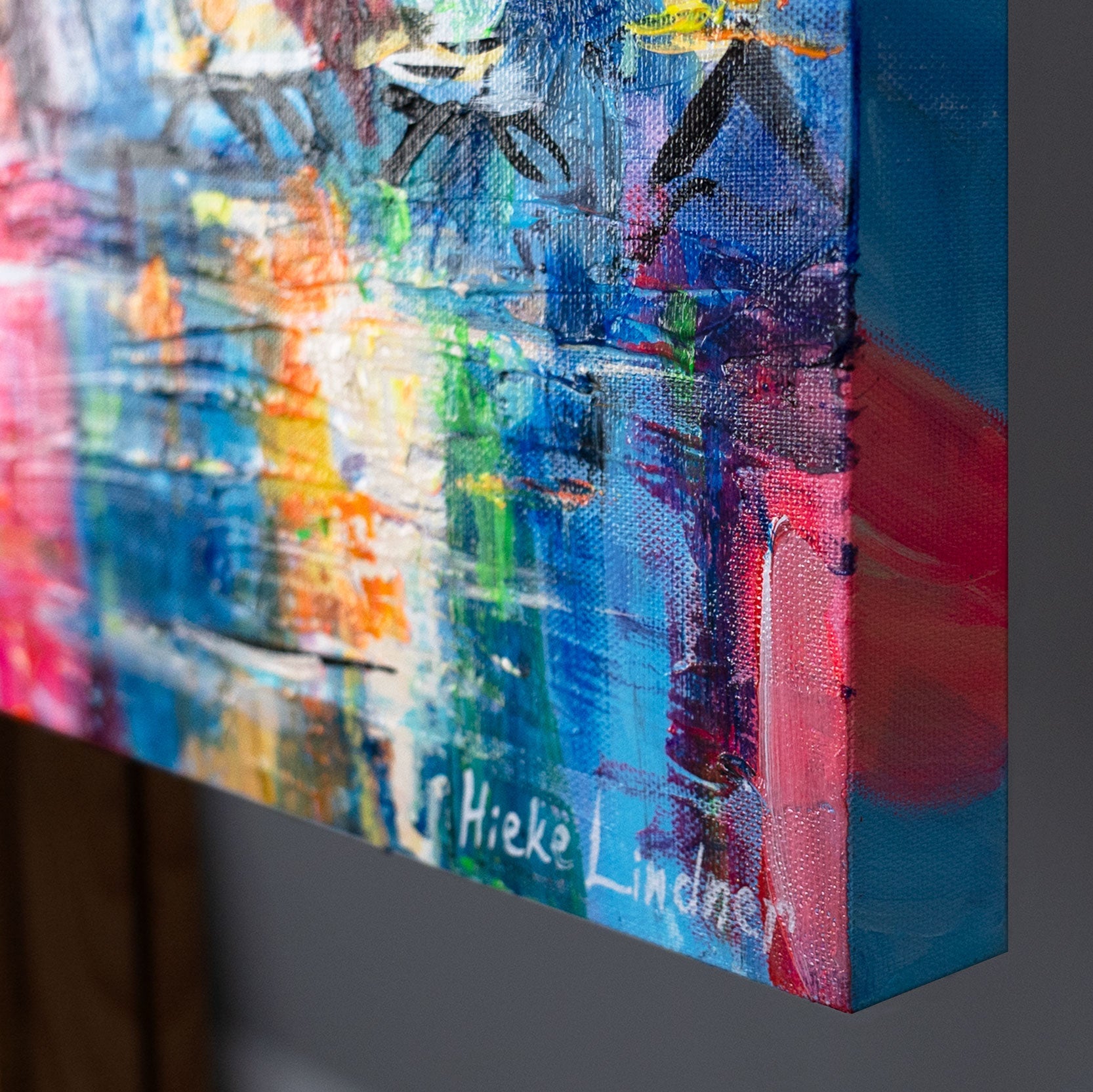 • bild signatur, seitenansicht leinwand