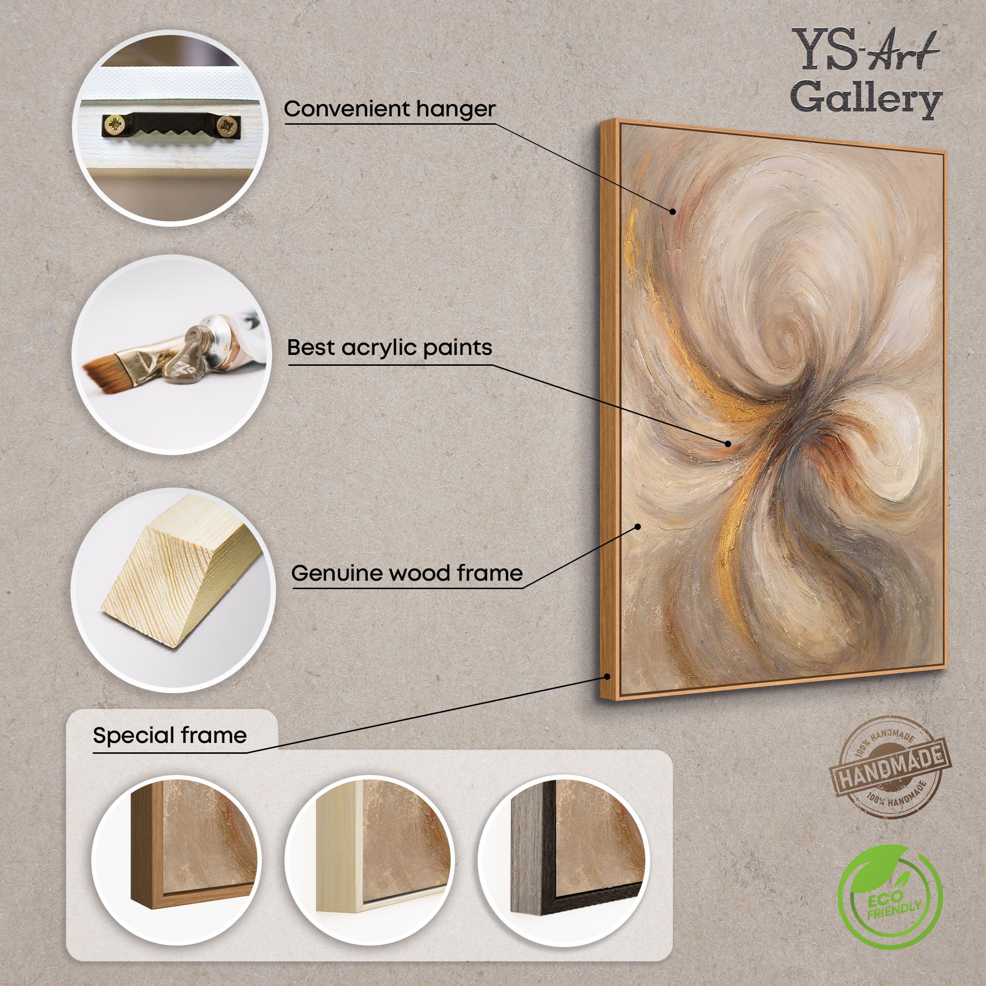 “Energía de la Corriente” es una pintura acrílica pintada a mano que captura la fuerza y elegancia del movimiento con remolinos fluidos en tonos beige, gris y dorado. La composición recuerda las dinámicas corrientes que se entrelazan, creando una intensa tensión visual. La superficie texturizada permite que la luz juegue suavemente, añadiendo profundidad a la obra.