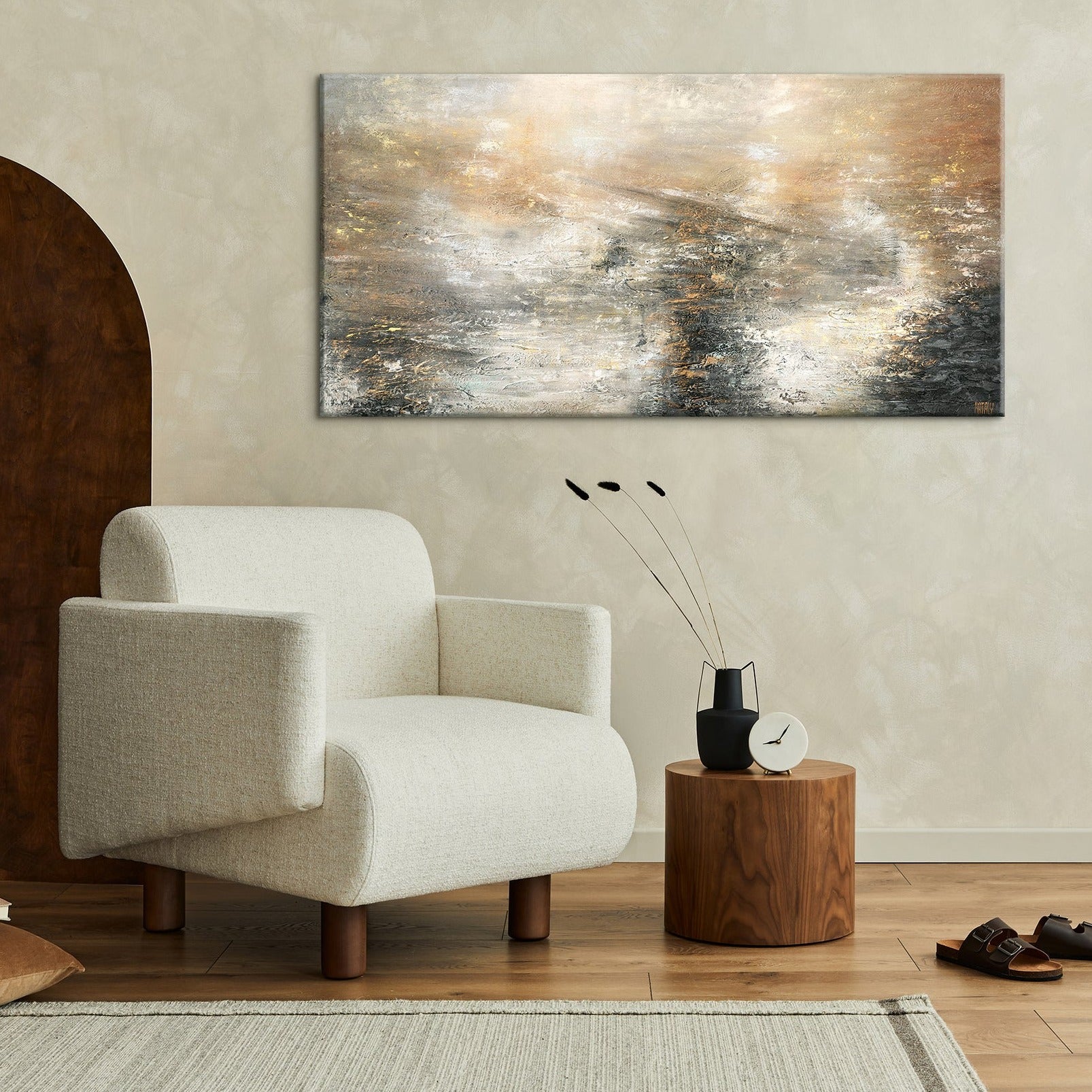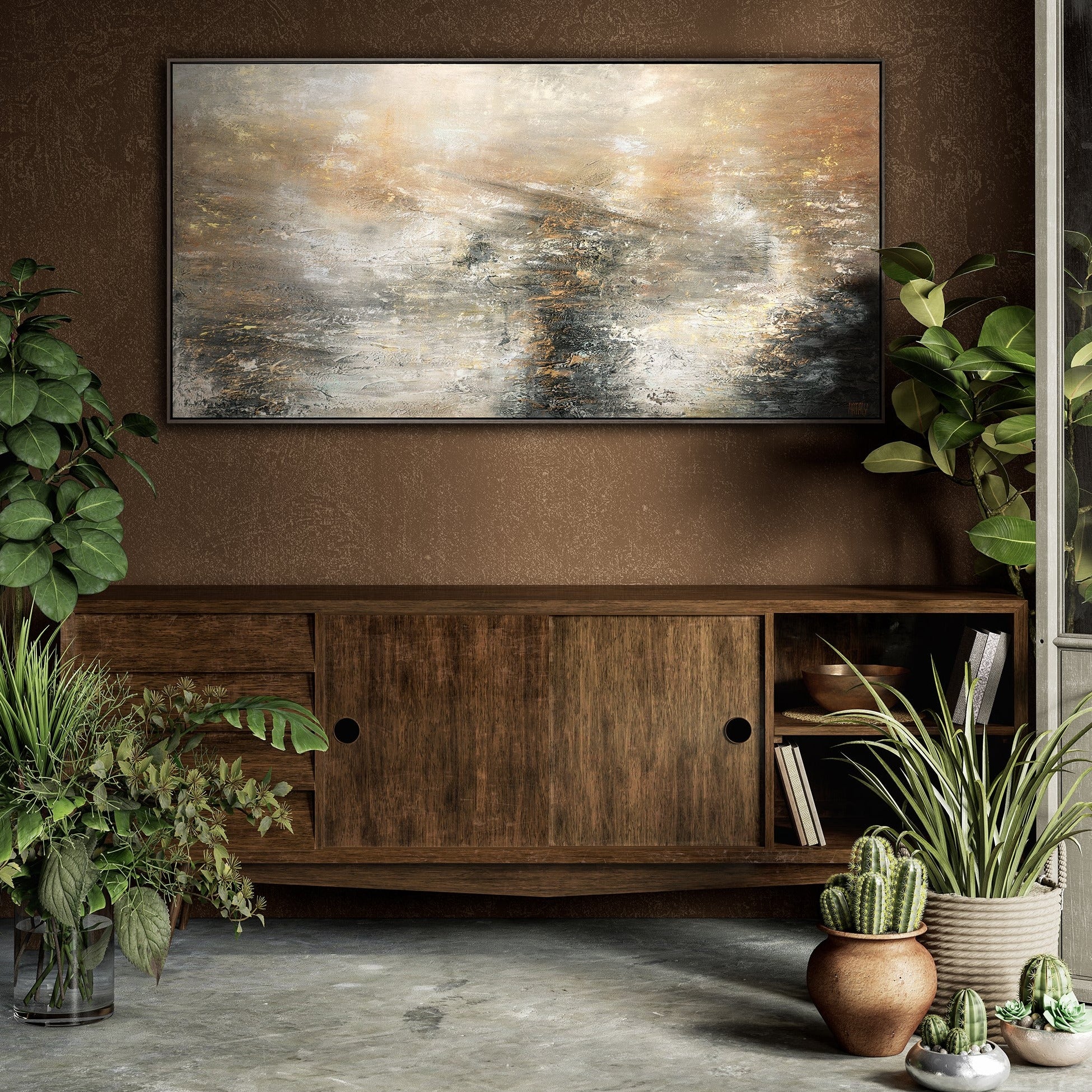 Aporte un toque especial a su hogar con esta pintura abstracta pintada a mano. La mezcla de tonos cálidos y fríos crea una atmósfera única que embellece cualquier estancia. Cada detalle de esta obra está realizado de manera completamente artesanal, lo que la convierte en una pieza irrepetible. Disfrute además del envío gratuito directamente a su domicilio.