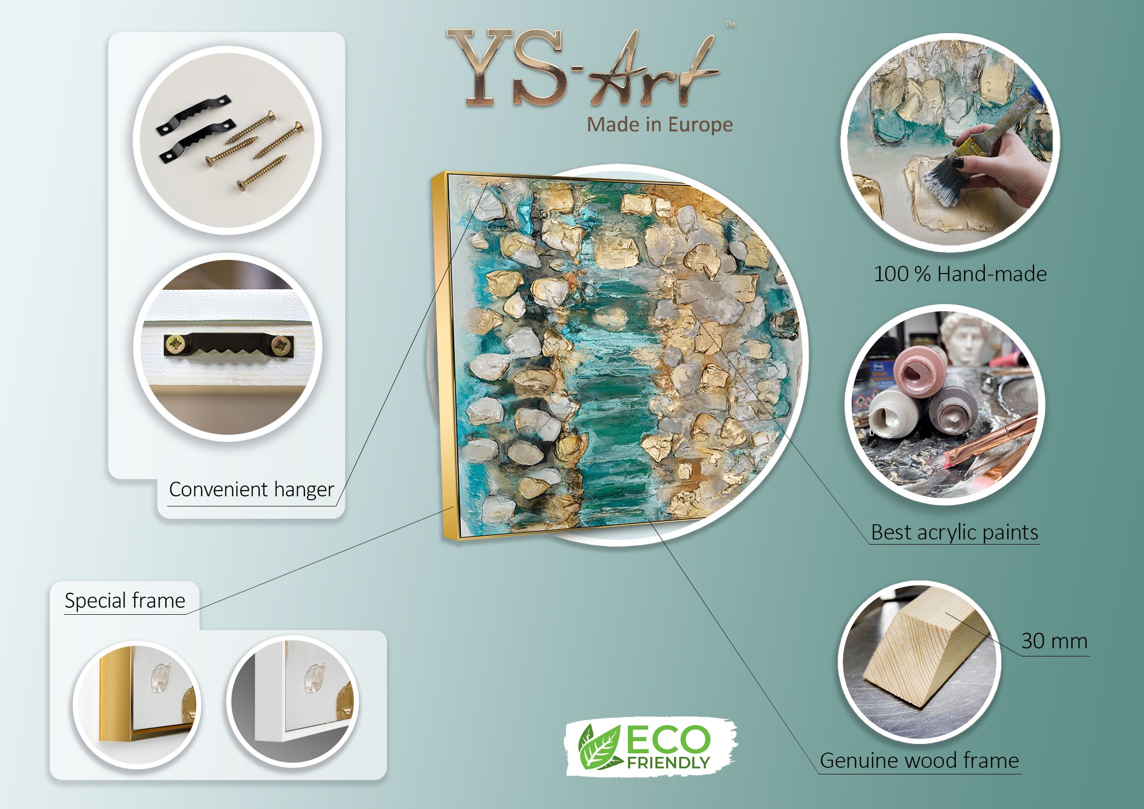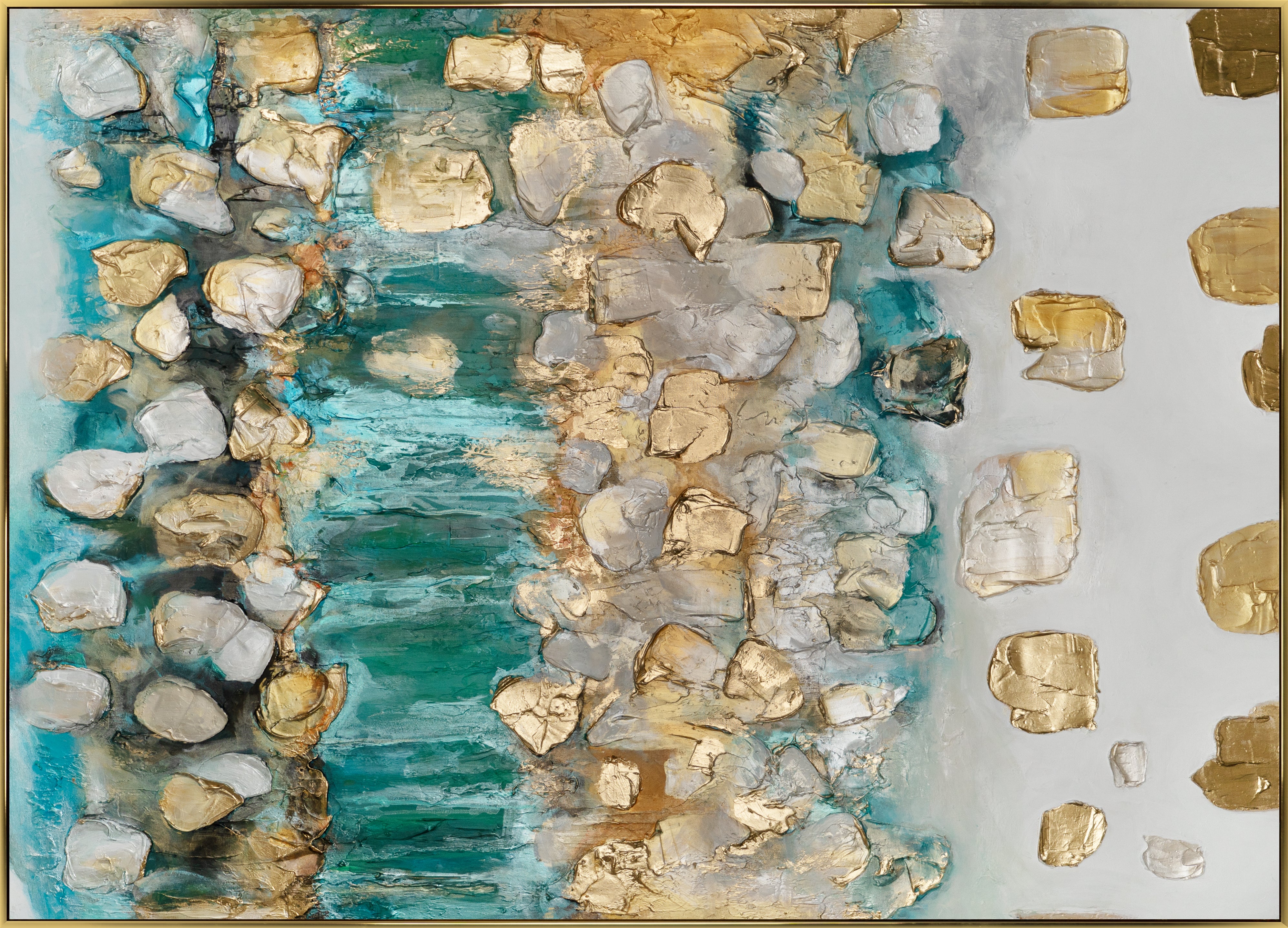 • Abstrakte Kunst, Moderne Malerei, Texturierte Kunst, Acrylbild, Wandkunst mit Rahmen, Originalkunstwerk, Künstlerische Wanddekoration, Handgemalte Leinwand, Hochwertige Wohnkultur, Zeitgenössische Wandkunst, Kunst für Wohnzimmer, Einzigartige Kunst, Kunstwerke für Innenräume, Acrylmalerei, Gold und Türkis Kunst