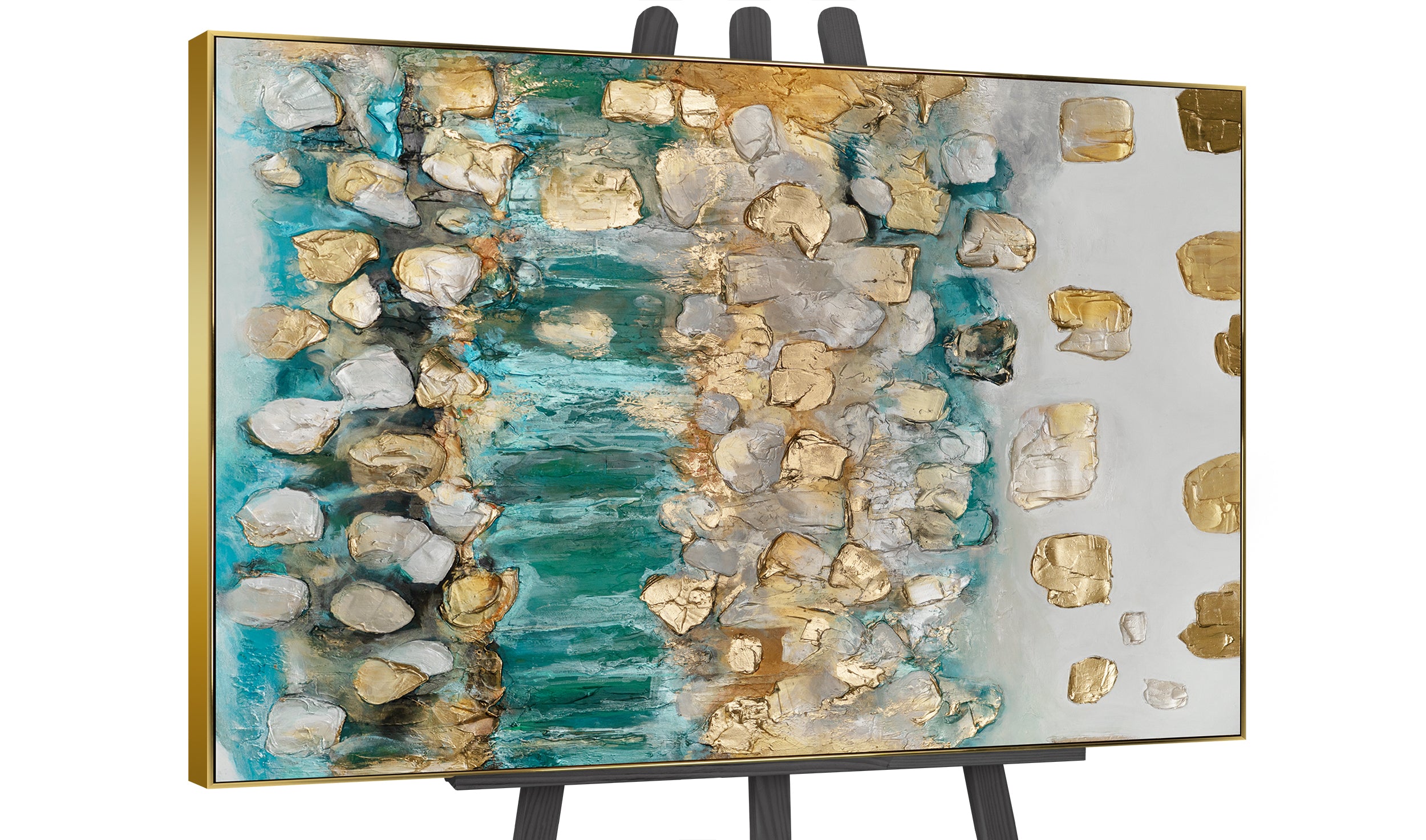 • Moderne Kunst, Abstrakte Leinwandkunst, Kunstwerk für Wohnzimmer, Gold und Türkis Wandkunst, Handgemalte Acrylmalerei, Einzigartige Wanddekoration, Künstlerische Wohnkultur, Originalgemälde, Texturierte Wandkunst, Zeitgenössische Kunst, Hochwertige Kunst mit Rahmen, Kunstwerke für Innenräume, Handgemalte Kunst, Acrylbild mit Rahmen, Exklusive Wohnraumkunst