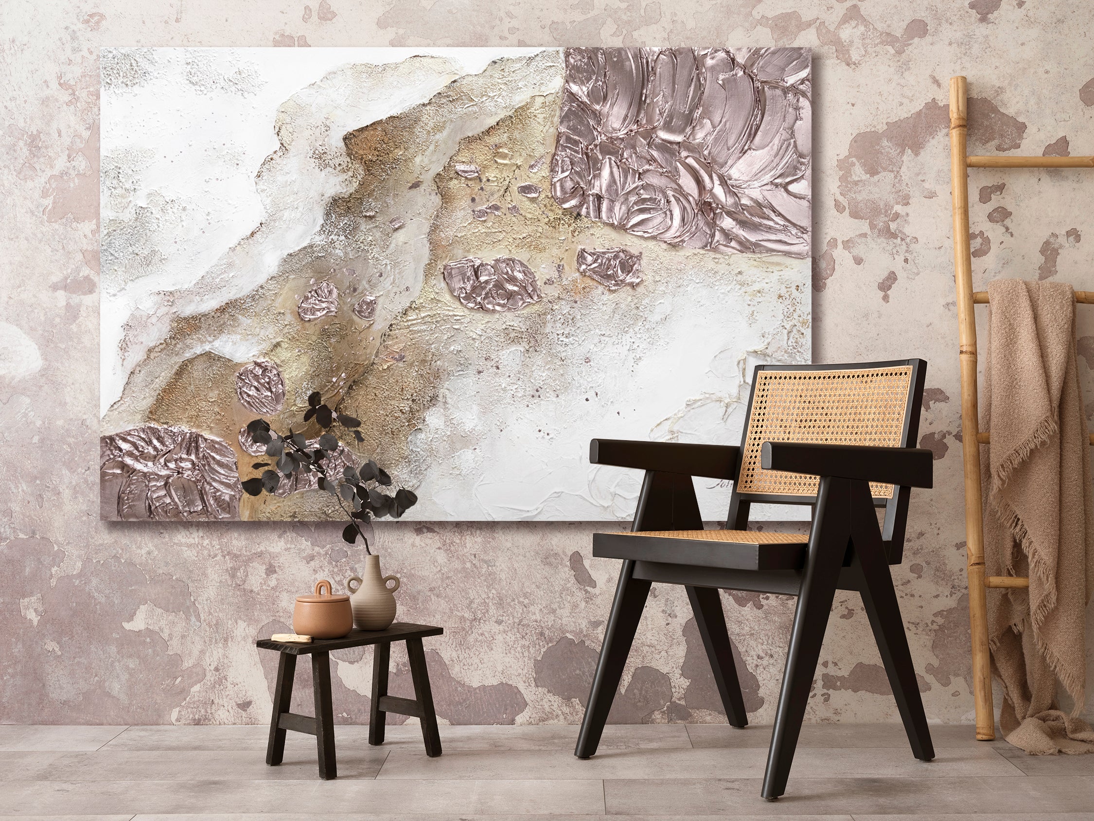 Equilibrio de colores, juego de texturas y trazos: todo esto está reunido en nuestra obra de arte. La pintura "Eternidad" de nuestra colección Trend será el acento único en su interior.