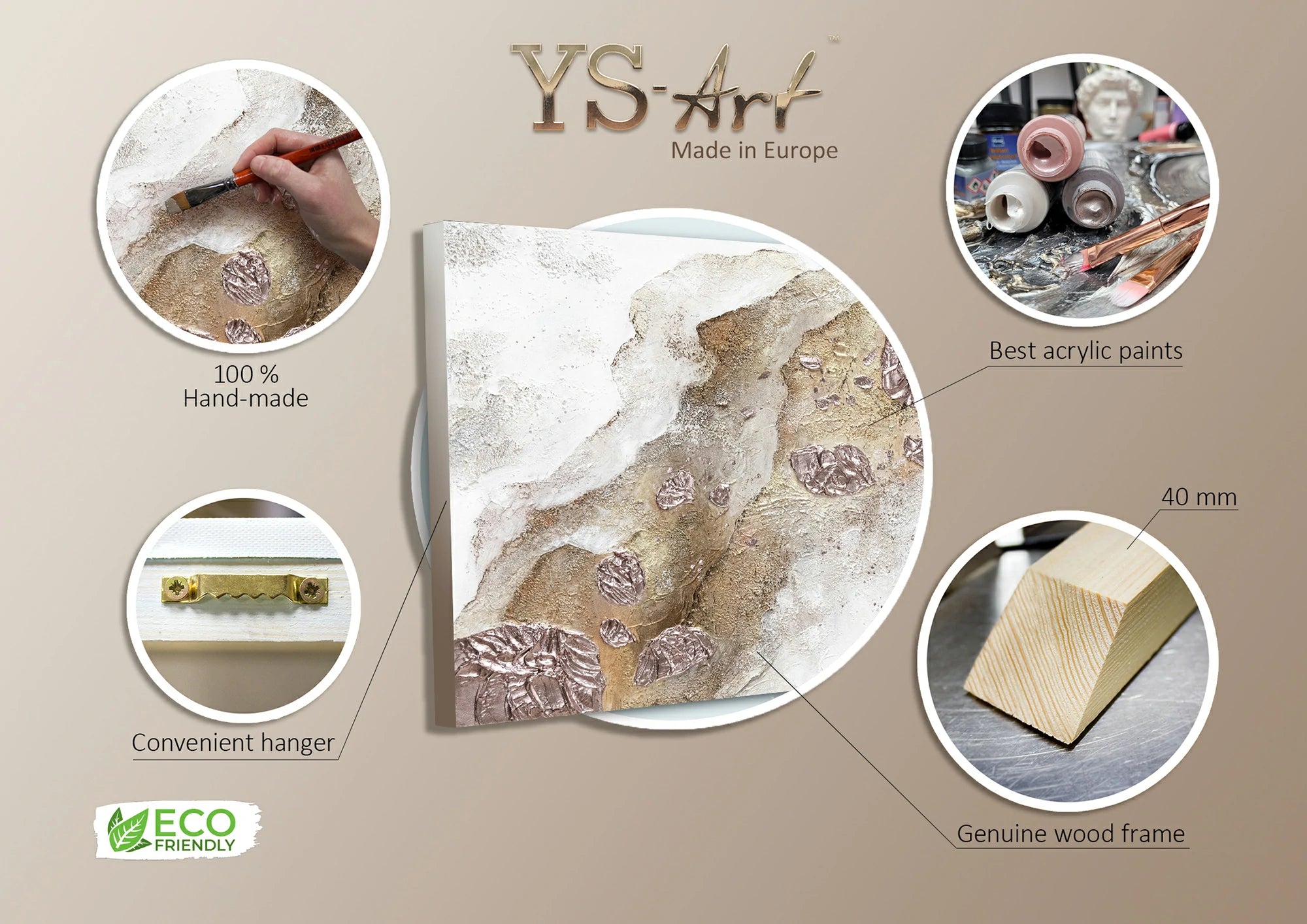 - Para nuestras coloridas pinturas acrílicas, utilizamos exclusivamente materiales de alta calidad que cumplen con los estándares internacionales. Cada pintura acrílica hecha a mano por nosotros puede ser realizada en un tamaño diferente según lo solicite.